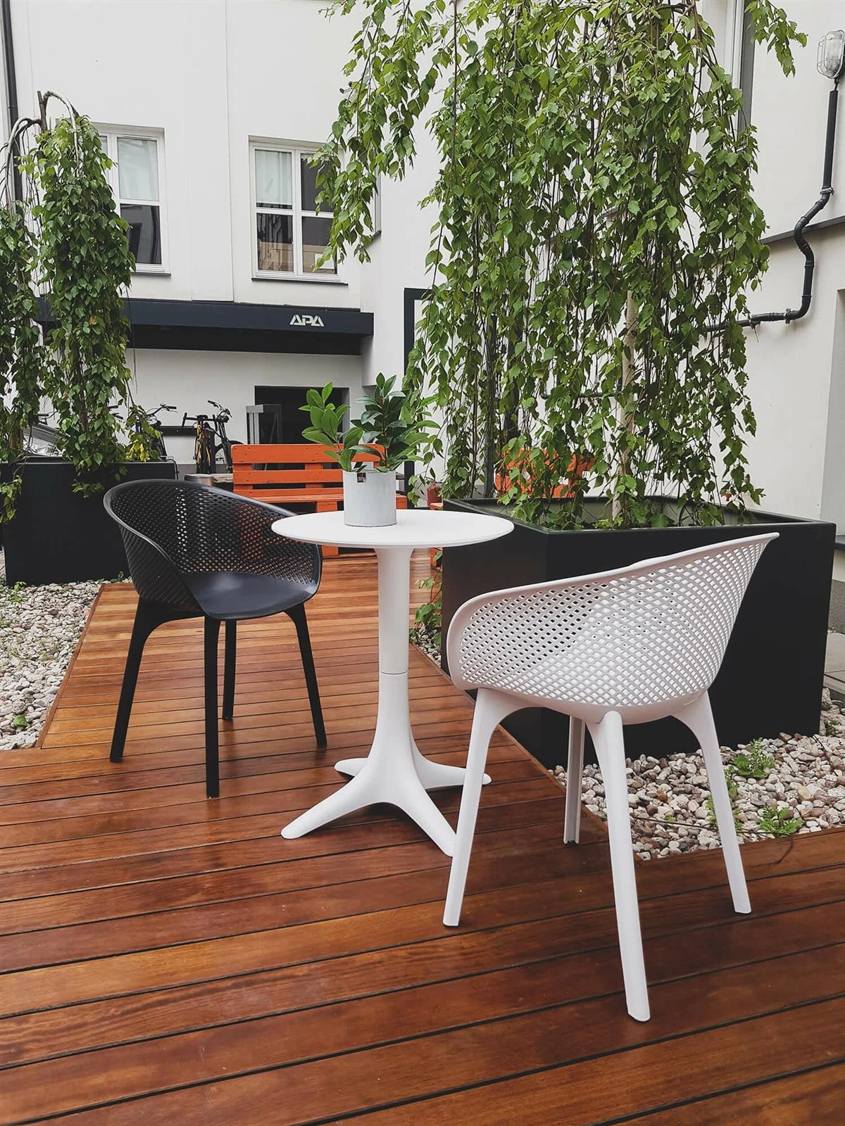Inwestycja w meble ogrodowe musi być niezwykle przemyślana. Przeznaczenie oraz miejsce w jakim będziemy użytkować krzesła, stoły i leżaki ma ogromne znaczenie. KRZESŁA DACUN to rozwiązanie uniwersalne. Fakt, że powstały z tworzywa gwarantuje, że są one w stu procentach odporne na warunki atmosferyczne. Nie musimy się martwić o odbarwienie się koloru, czy zniszczeń spowodowanych wilgocią i szkodnikami. Materiał zapewnia także łatwą pielęgnację na mokro, dzięki czemu krzesło będzie służyło w dobrym stanie przez długie lata. Dostępność w dwóch klasycznych kolorach - bieli i czerni, pozwoli Ci bez problemu dopasować je do innych mebli. Krzesła ogrodowe Dacun świetnie wyglądają ze stolikiem Bloom. Takie połączenie to idealny zestaw na balkon, ogród lub do ogródka restauracyjnego.