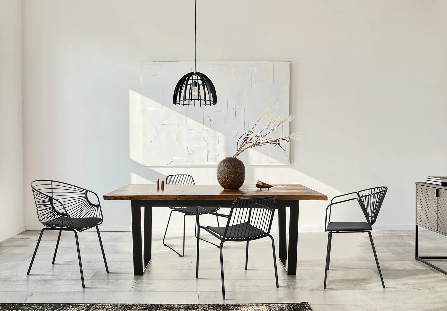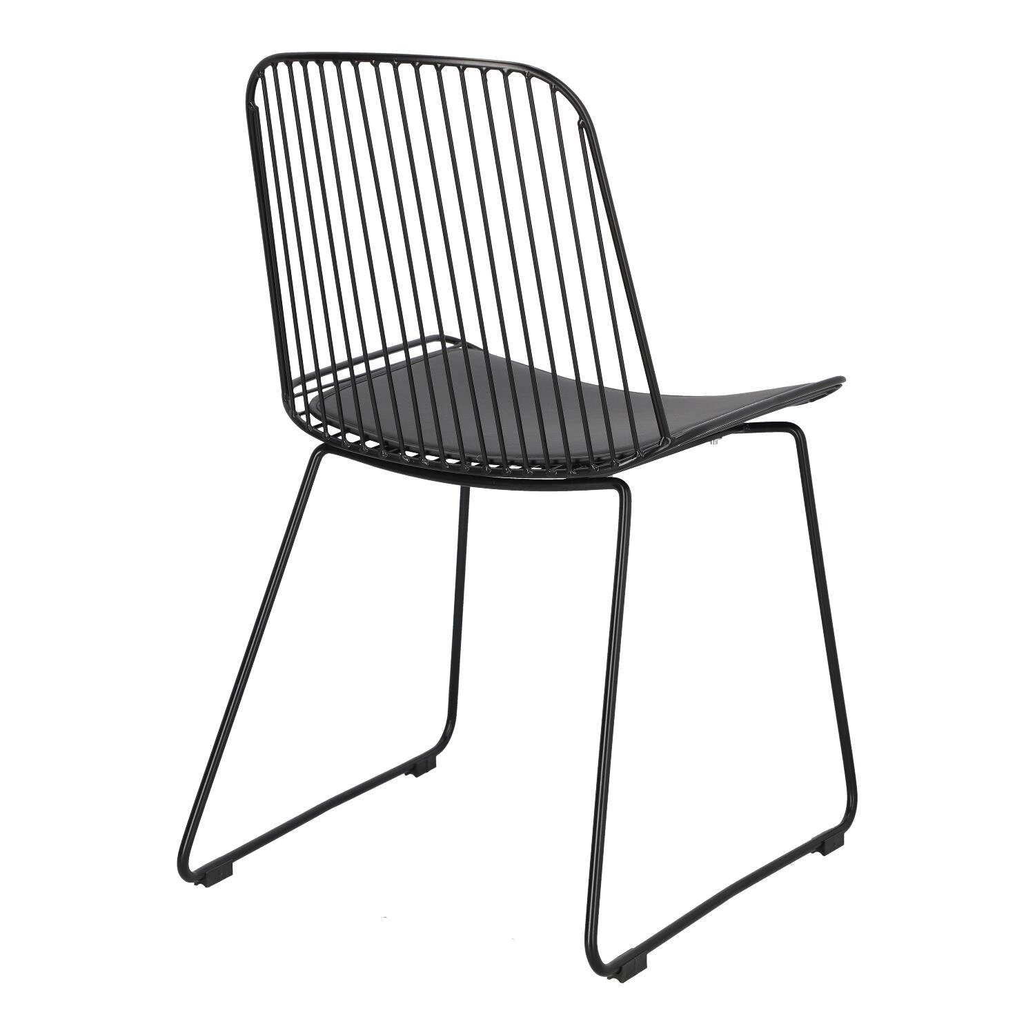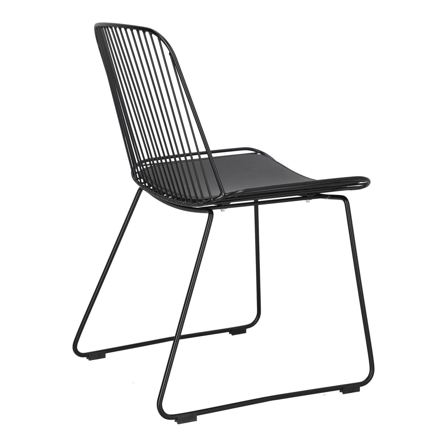 Krzesło Dill to designerska propozycja dla osób ceniących niezależne wyjątkowe projekty. Czarne loftowe krzesło ze zdejmowaną poduszką z eko skóry to odważny model, który zachwyca swoją oryginalnością. Ażurowe krzesło sprawdzi się jako krzesło do jadalni, kuchni i salonu. Ciekawym pomysłem będzie na przykład wykorzystanie kilku krzeseł połączonych z innymi siedziskami. Dill będzie prezentować się bardzo dobrze zarówno w komplecie, jak i pojedynczo. Zachwycające w swojej prostocie krzesło będzie nie tylko wygodnym siedziskiem, ale również ozdobą. Krzesło o siedzisku oraz oparciu wykonanym z wielu cienkich przęseł będzie nietypowym elementem każdego wnętrza. Podstawa krzesła to płozy zabezpieczone nakładkami z tworzywa, które zapobiegają rysowaniu się podłoża. Konstrukcja z metalu pomalowanego proszkowo na czarno utrzymana została w półmatowym wykończeniu.