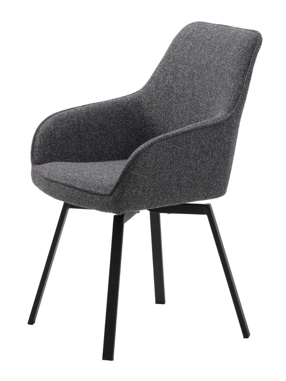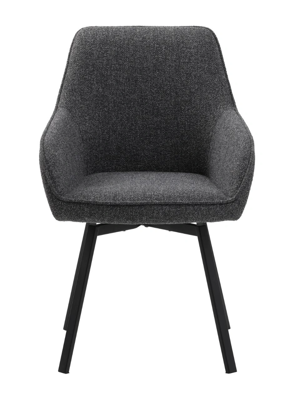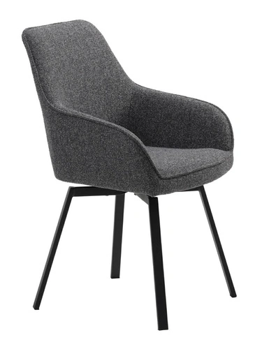 Krzesło do jadalni Alma marki UNIQUE to nowoczesne krzesło tapicerowane boucle z podłokietnikami, które łączy wygodę codziennego użytkowania z elegancką, ponadczasową formą. Ciemnoszare siedzisko i oparcie zestawiono tu z czarnymi, matowymi nogami, dzięki czemu model świetnie odnajduje się przy stole w jadalni, w kuchni, a także jako krzesło do salonu. Wymiary 58 × 57,5 cm oraz wysokość siedziska 49 cm sprawiają, że Alma zapewnia komfortowe podparcie podczas posiłków, spotkań i dłuższego siedzenia.