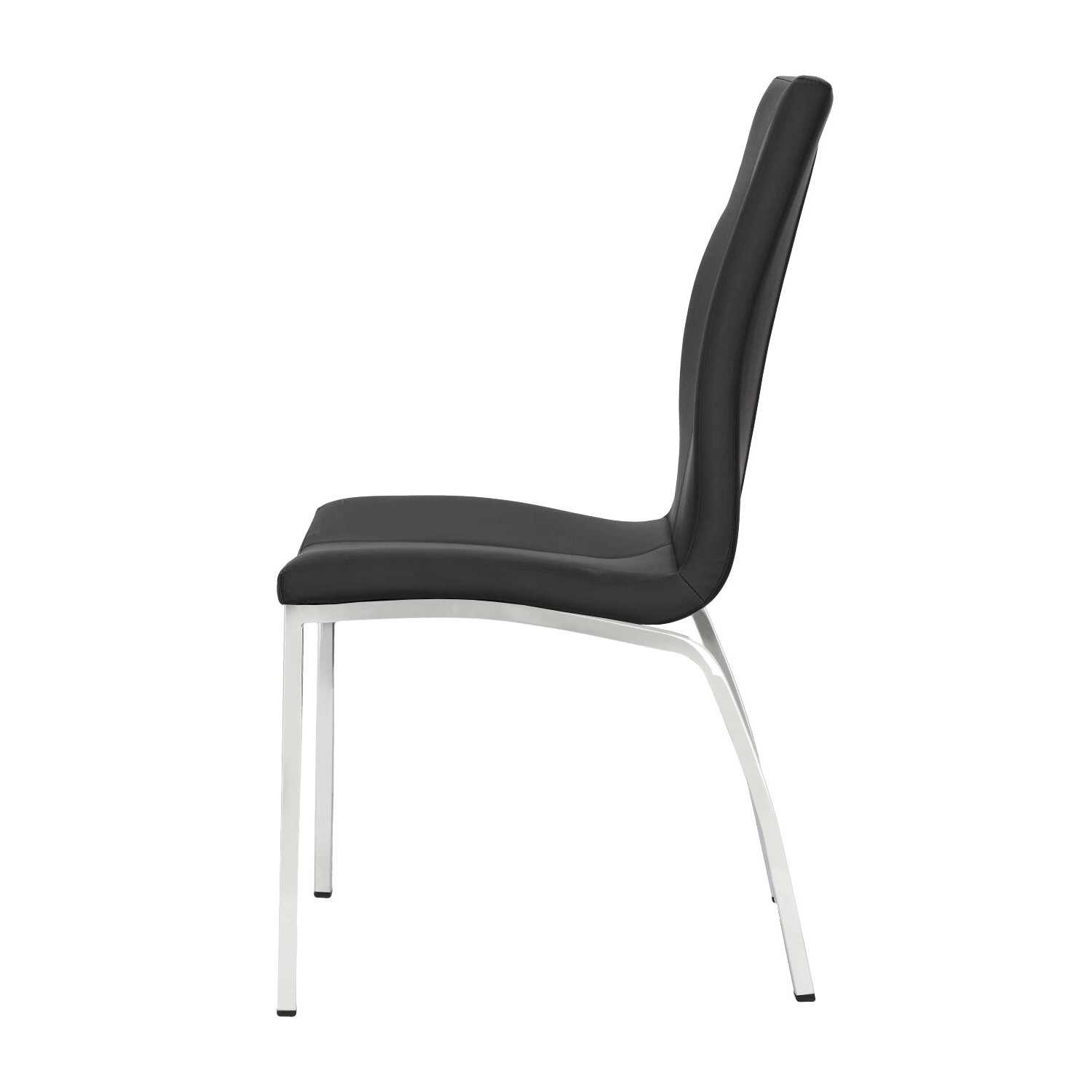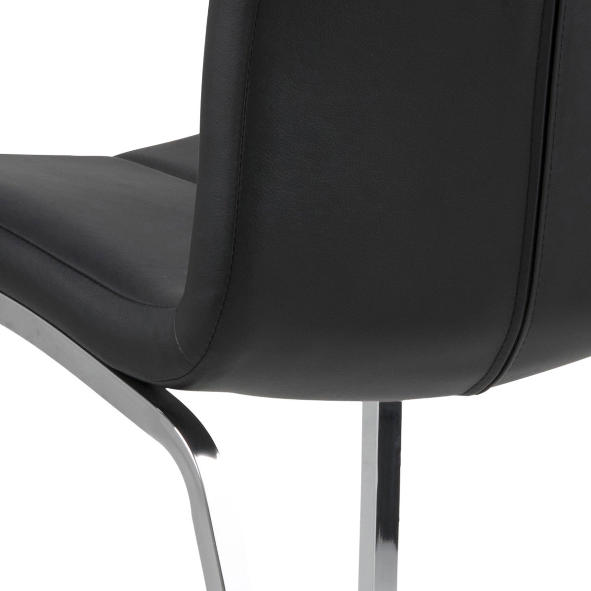 Krzesło Asama to nowoczesny i wygodny mebel do jadalni. Mebel obity jest wysokiej jakości skórą ekologiczną w czarnym kolorze, dzięki czemu fotel jest łatwy w utrzymaniu. Siedzisko fotela wraz z oparciem tworzą jeden element. Oparcie jest ładnie wygięte dając wrażenie komfortu. Przez środek oparcia i siedziska biegnie ozdobny pionowy szew. Podstawa krzesła wykonana jest z chromowanej stali. Proste przednie nóżki łukowato przechodzą w parę tylnych nóg. Ciekawa krzywizna nóg nadaje meblowi nowoczesnego charakteru. Krzesło świetne do jadalni bądź sali konferencyjnej, czy biura. Ciemny kolor nadaje krzesłu jednocześnie praktycznego i industrialnego wyglądu.