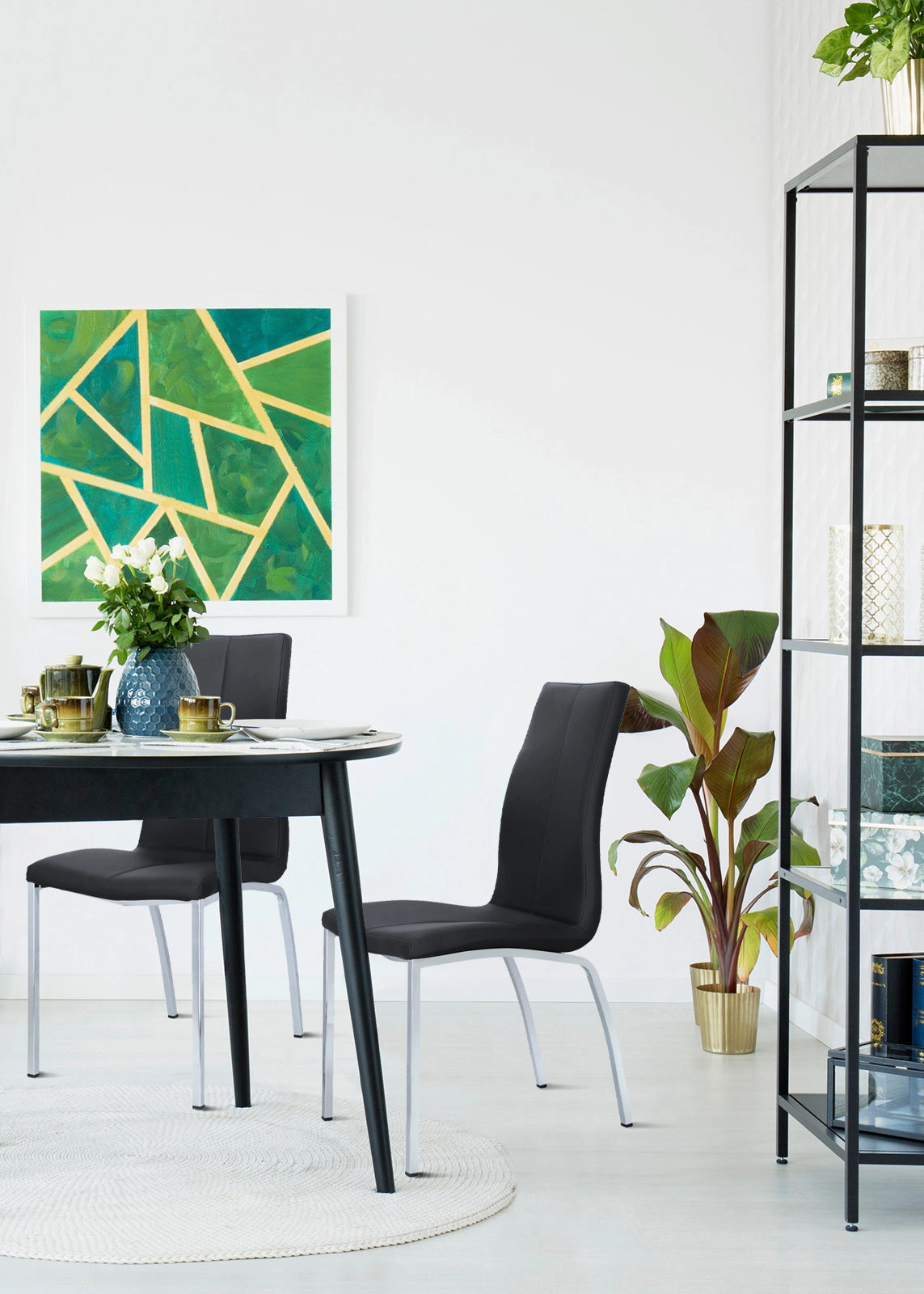 Zestaw 4 krzeseł do jadalni Asama Actona czarne tapicerowane ekoskóra nowoczesne metalowe