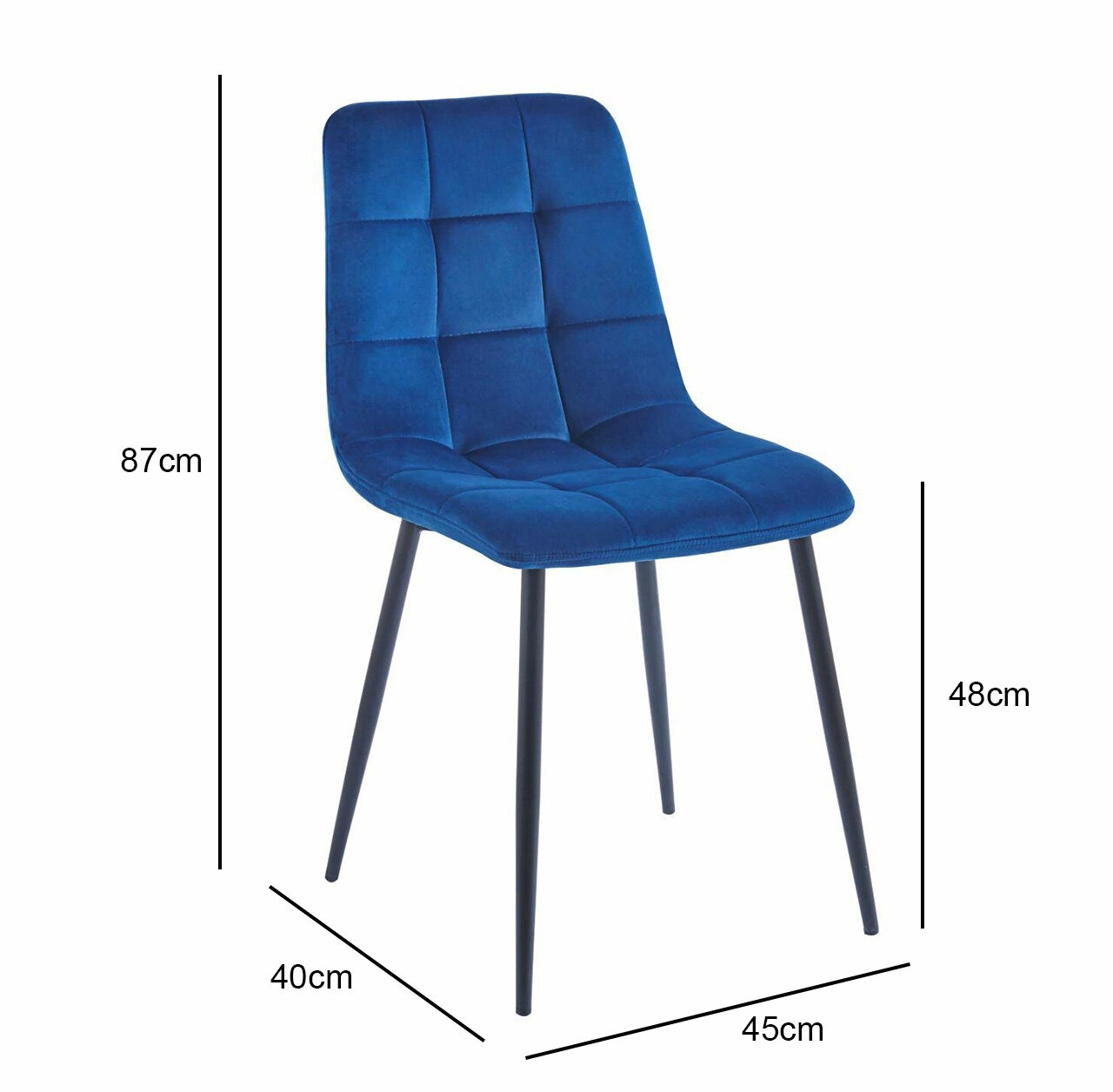 Tapicerka wykonana z welwetowej tkaniny jest nie tylko miła w dotyku, ale również nadaje wnętrzu subtelny, luksusowy charakter. Ozdobne pikowania na całej powierzchni tapicerki dodają krzesłu wyrafinowanego wyglądu, podkreślając jego wysoką jakość wykonania. Stelaż krzesła wykonany został z metalu malowanego proszkowo, co gwarantuje jego trwałość i stabilność. Czarne, smukłe nogi doskonale komponują się z niebieską tapicerką, tworząc harmonijną całość. Dzięki swojemu uniwersalnemu designowi oraz dostępności w różnorodnych kolorach, krzesło Caro Velvet świetnie wpasowuje się zarówno do stołu jadalnianego, jak i eleganckiej toaletki.