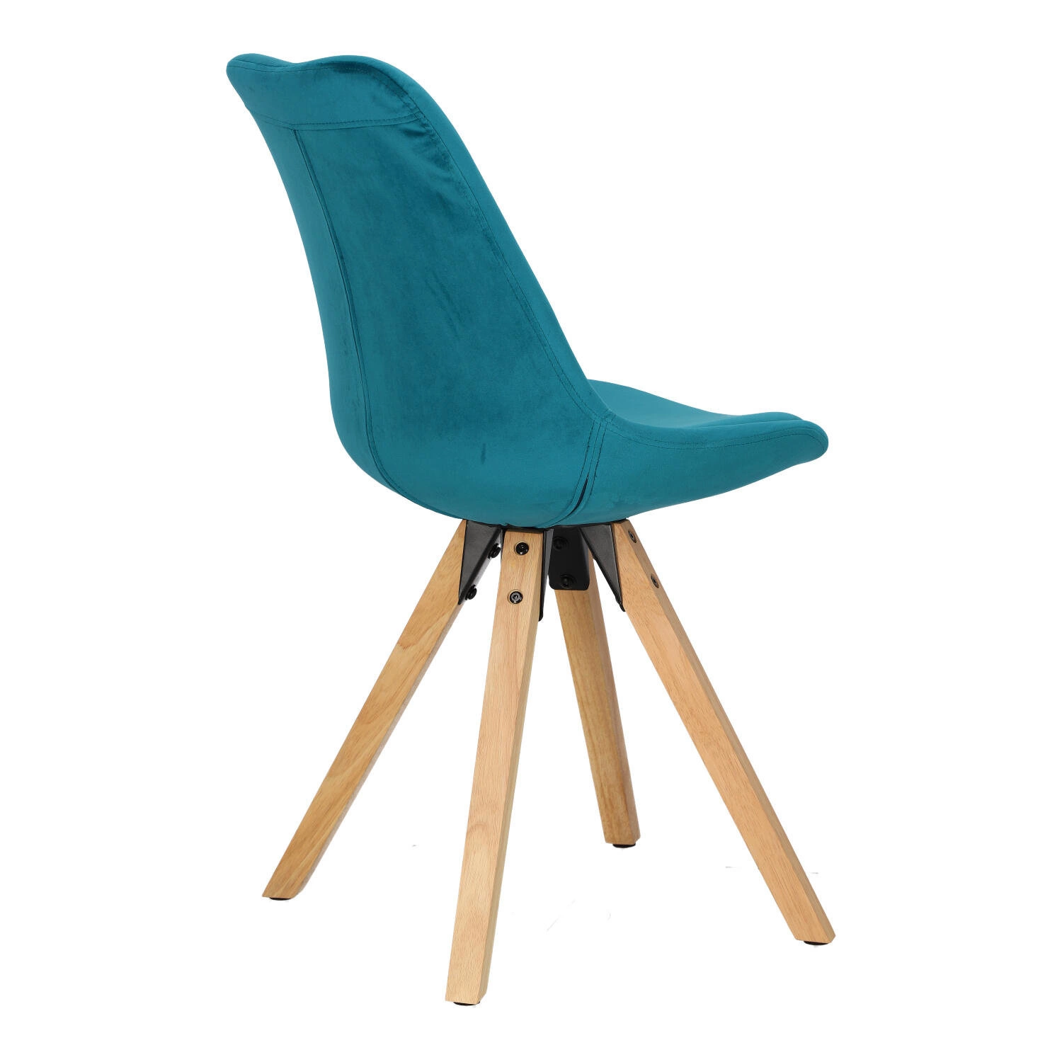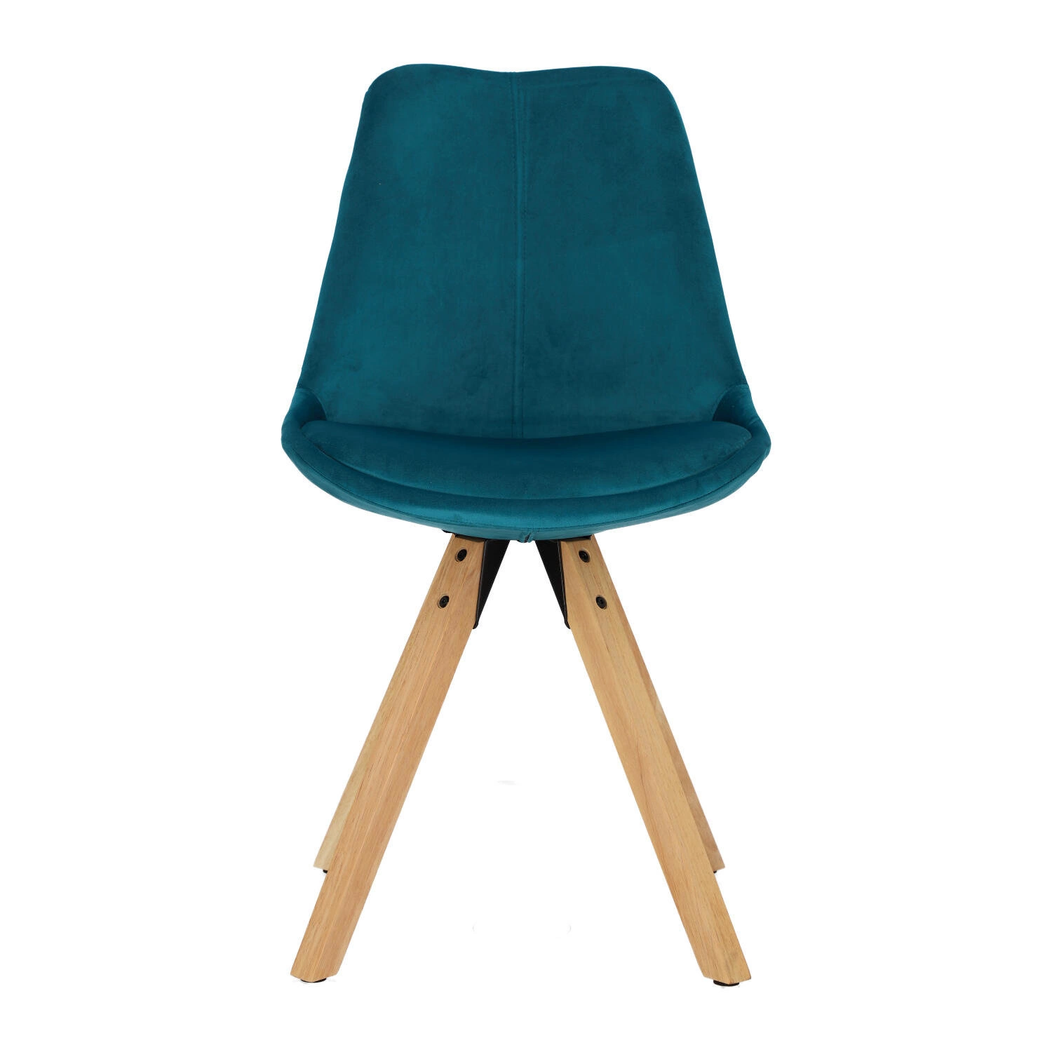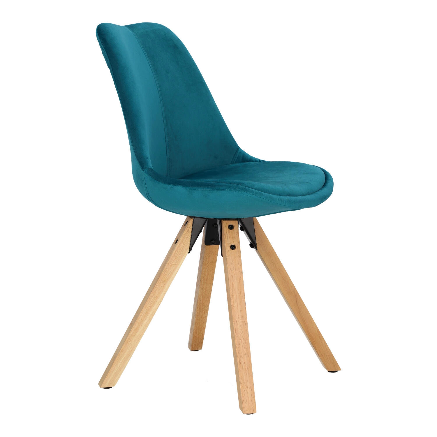 Podstawa krzesła Dima wykonana została natomiast z olejowanego drewna kauczukowego. Jego powierzchnia pokryta jest bejcą w kolorze dębu, co podkreśla naturalny wygląd drewna, a jednocześnie zabezpiecza podstawę przed zniszczeniami. Cztery grube drewniane nogi ustawione pod kątem zapewniają bezpieczeństwo i stabilność. Krzesło wymaga montażu podstawy do siedziska za pomocą śrub.
