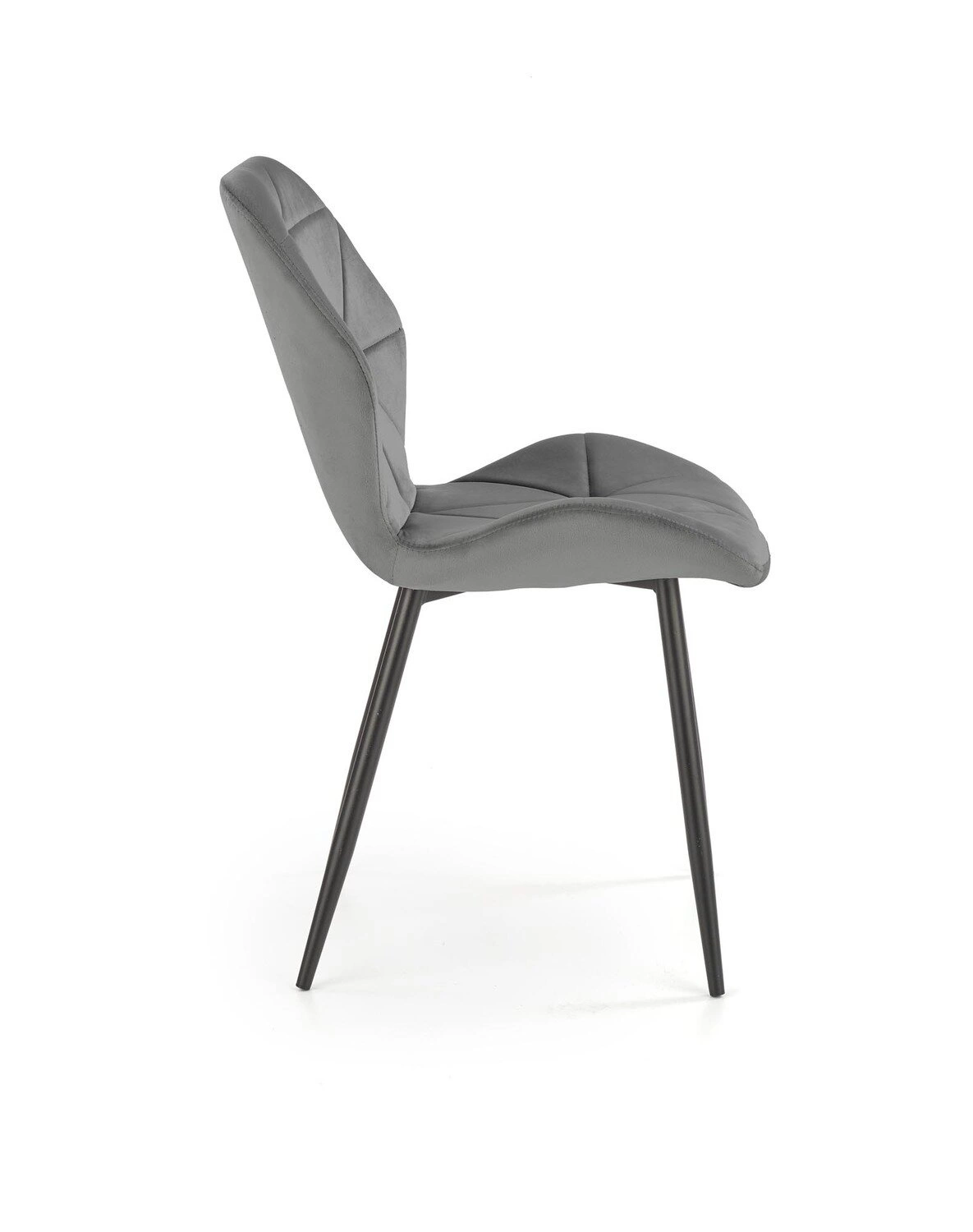 Krzesło Eve - elegancja i komfort w jednym meblu Krzesło Eve to połączenie funkcjonalności i wyrafinowanego designu, które stworzy idealny akcent w Twoim wnętrzu. Jego solidna podstawa z czarnej stali malowanej proszkowo to nie tylko gwarancja trwałości, ale także nowoczesnego wyrazu. Siedzisko krzesła wykonane z przyjemnej w dotyku tkaniny welurowej w stonowanym odcieniu szarości jest zaprojektowane z myślą o Twoim komforcie. Pikowane siedzisko nie tylko nadaje meblowi elegancji, ale również zapewnia wygodę podczas długotrwałego siedzenia. To idealny mebel na chwile relaksu czy do spotkań przy stole. Krzesło Eve to także szeroka paleta modnych kolorów do wyboru, co pozwala dostosować je do swojego osobistego gustu oraz charakteru pomieszczenia. Widoczne przeszycia na siedzisku dodają meblowi subtelnego uroku, co czyni je nie tylko funkcjonalnym, ale także dekoracyjnym elementem wystroju wnętrza. Krzesło Eve to nie tylko miejsce do siedzenia, to wyraz Twojego stylu i wyjątkowości wnętrza. Przygotuj się na mądry wybór! Krzesło Eve to harmonia designu i wygody. Stalowa podstawa malowana proszkowo gwarantuje trwałość i nowoczesny wygląd. Pikowane siedzisko z miłej w dotyku tkaniny welurowej dostarcza niezrównanego komfortu. Dostępność wielu modnych kolorów umożliwia dopasowanie krzesła do każdego wnętrza. Widoczne przeszycia dodają meblowi uroku i elegancji.