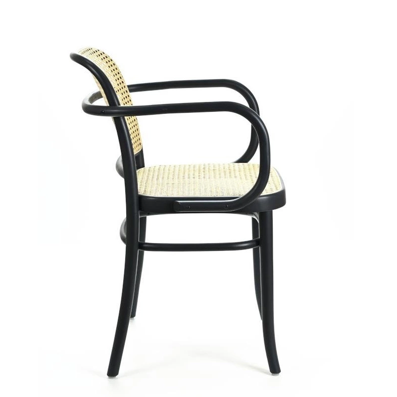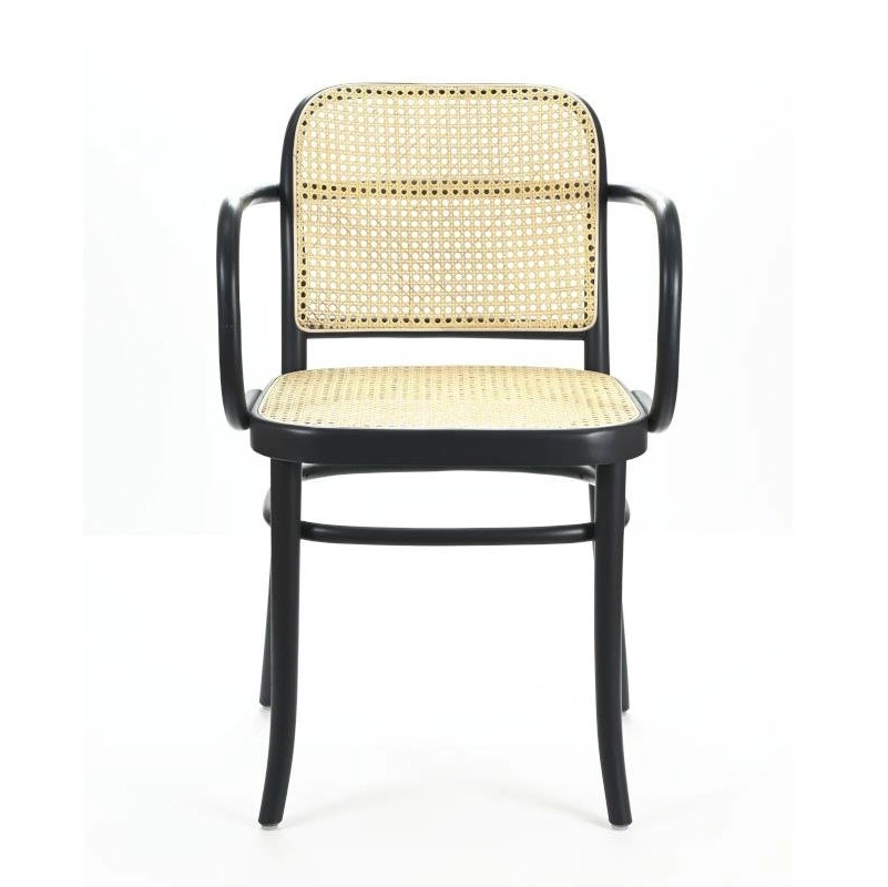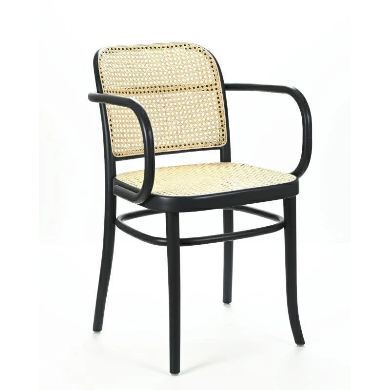 Krzesło z podłokietnikami B-811 posiada wyplatane siedzisko i oparcie, co zapewnia dostosowywanie się do sylwetki użytkownika. Specjalnie wyprofilowane nogi z drewna bukowego zapewniają solidność, a gumowe podkładki zapobiegają ślizganiu. Krzesło wyposażone jest również w podłokietniki przez co staje się jeszcze wygodniejsze. Możliwe jest personalizowanie wyglądu krzesła przez duży wybór kolorystyczny nie tylko materiału siedziska z oparciem, lecz również trzymającej je konstrukcji.