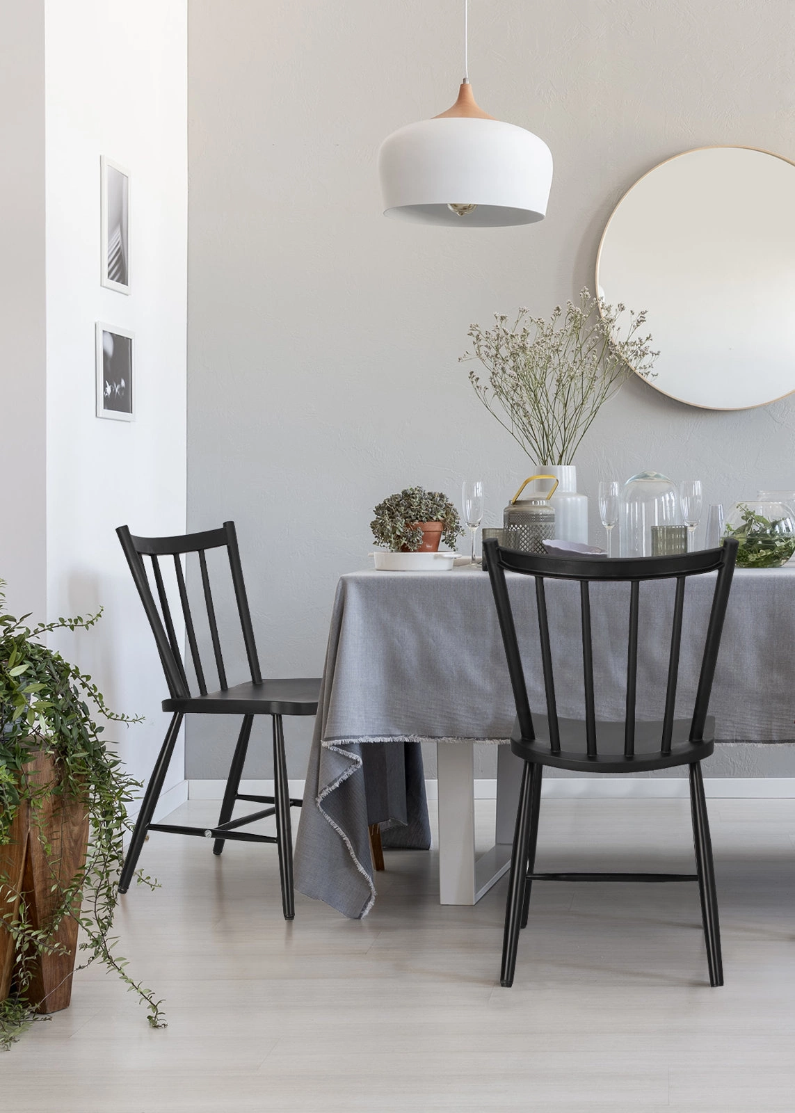 Wandi to nowoczesne krzesło do kuchni i jadalni, które łączy praktyczność z ponadczasową estetyką. Charakterystyczne pionowe szczebelki oparcia nawiązują do kultowych modeli patyczaków, zapewniając wyjątkowy komfort podparcia pleców podczas dłuższych spotkań przy stole. Czarne siedzisko z tworzywa jest nie tylko łatwe w utrzymaniu czystości, ale także odporne na codzienne zabrudzenia – idealne rozwiązanie w domach z dziećmi lub podczas rodzinnych przyjęć.