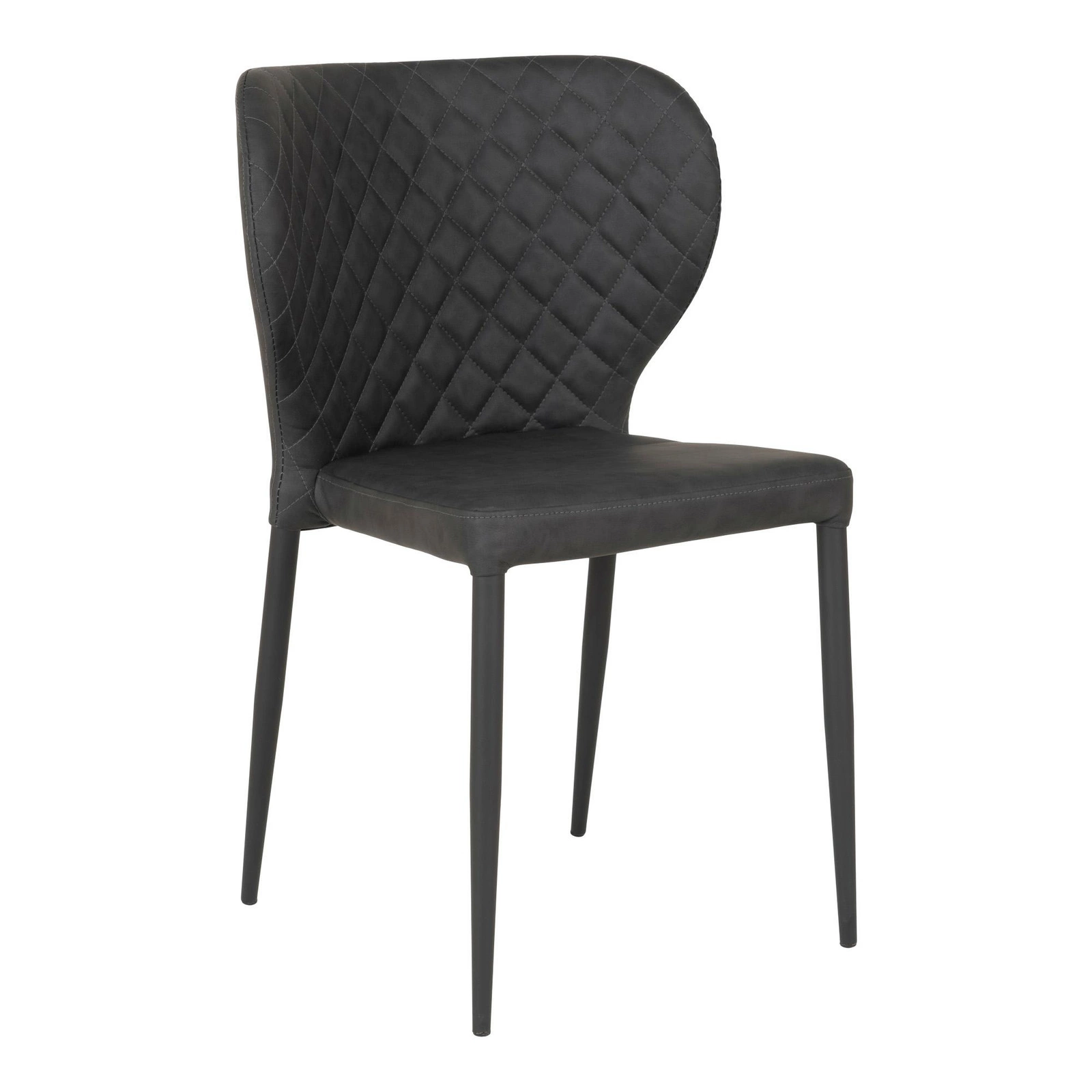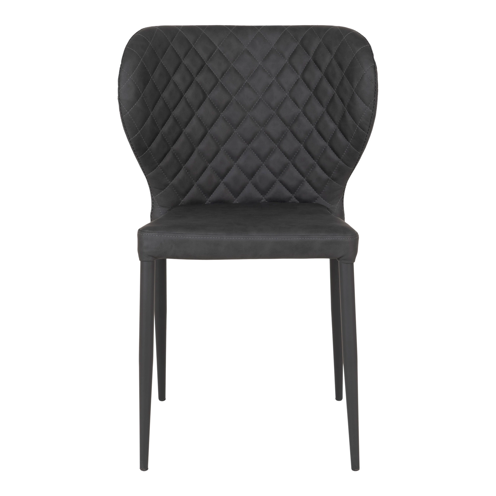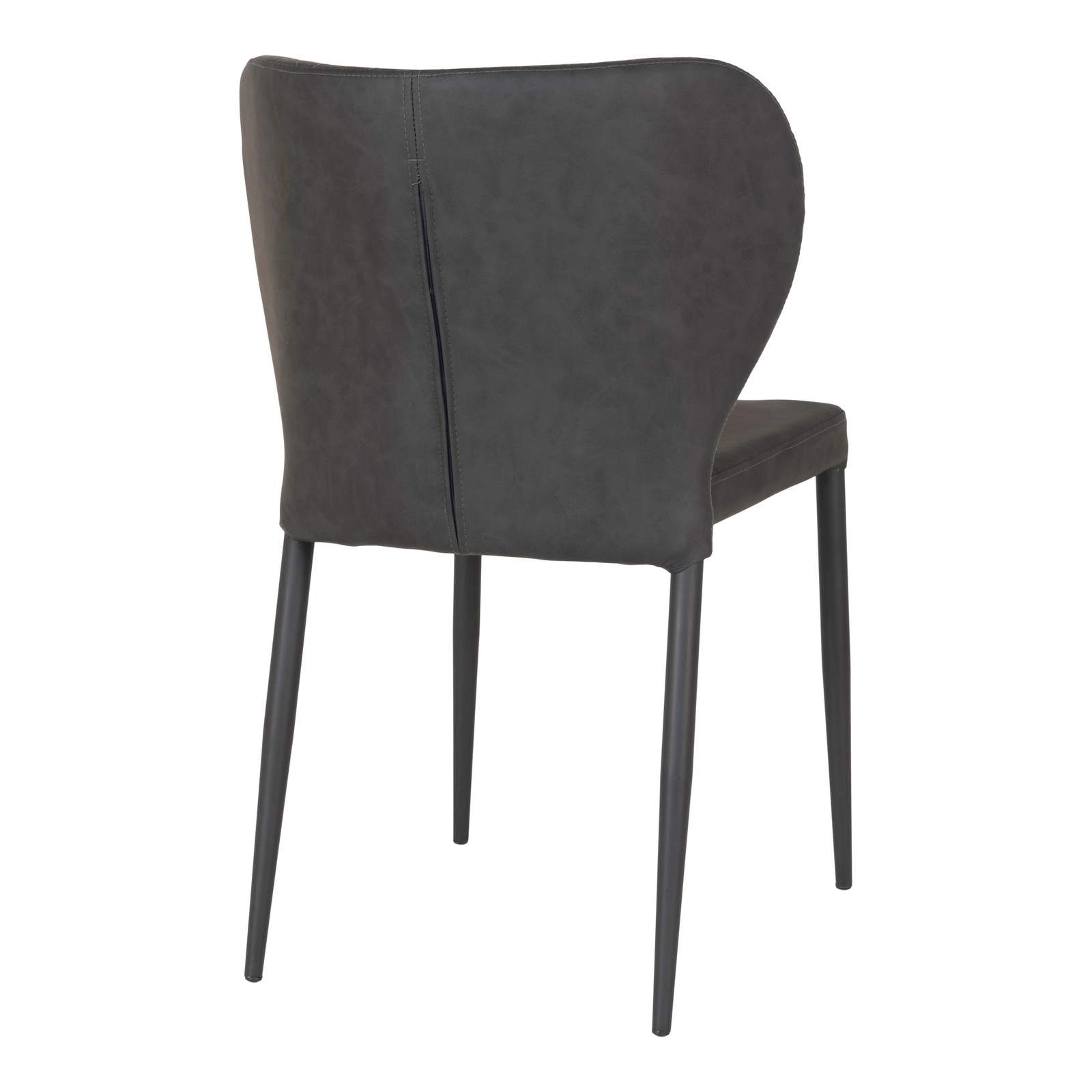 - Nowoczesny design krzesła sprawia, że doskonale wpisze się w każde pomieszczenie, a jego ciemnoszara tapicerka z ekoskóry i czarna metalowa podstawa dodadzą wnętrzu eleganckiego charakteru.