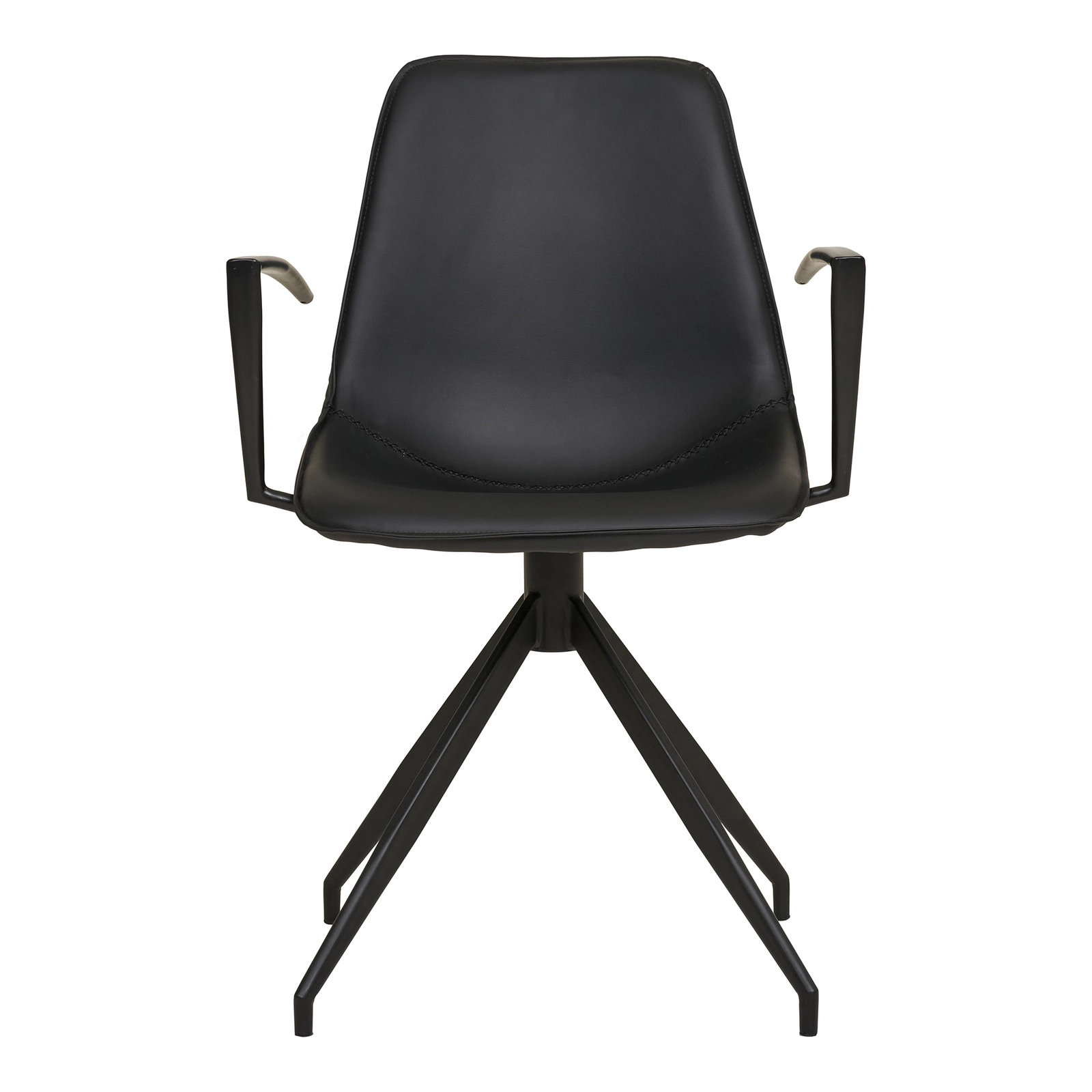 Krzesło Monaco Arm jest nie tylko stylowe, ale również funkcjonalne. Dzięki obrotowej funkcji, możesz swobodnie poruszać się wokół stołu, bez konieczności podnoszenia mebla. Ponadto, krzesło wyposażone jest w podłokietniki, które zapewniają dodatkowy komfort podczas siedzenia. Czarna skóra ekologiczna, z której wykonano siedzisko, jest łatwa do czyszczenia i odporna na ścieranie, co sprawia, że krzesło będzie służyło przez długie lata.