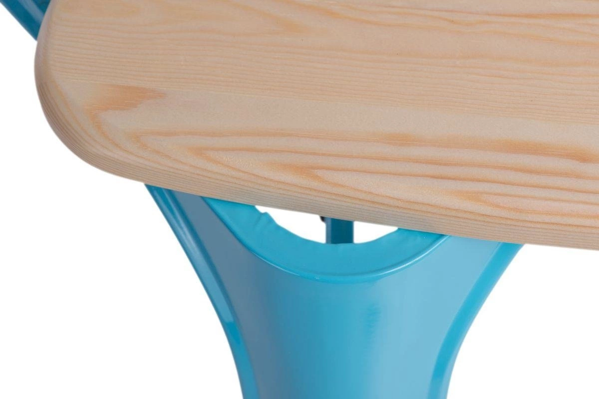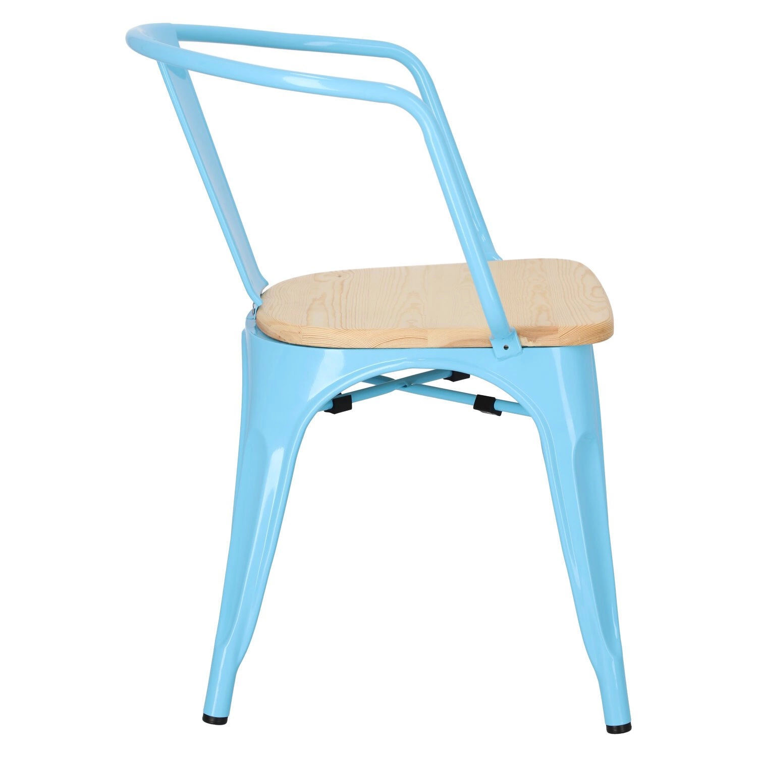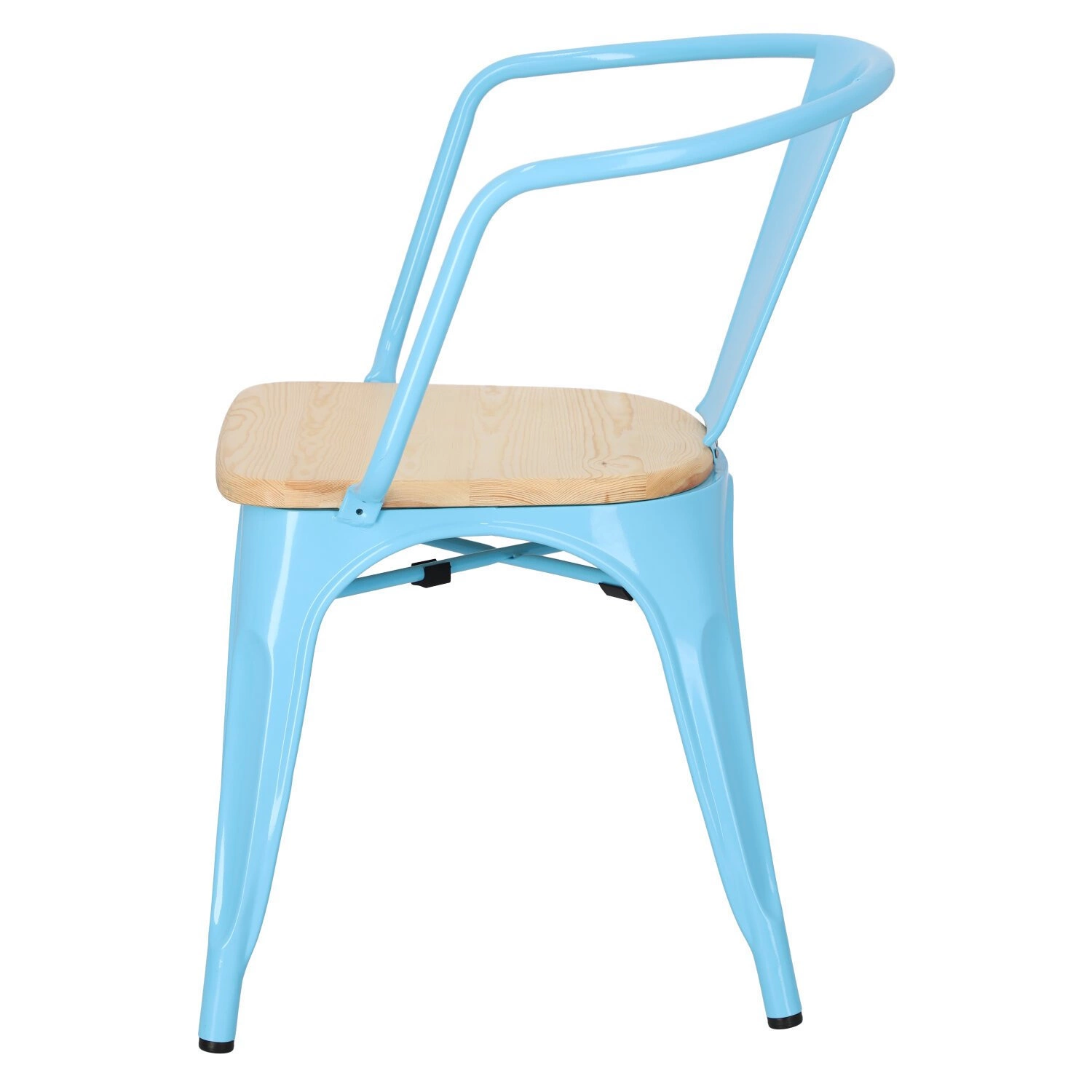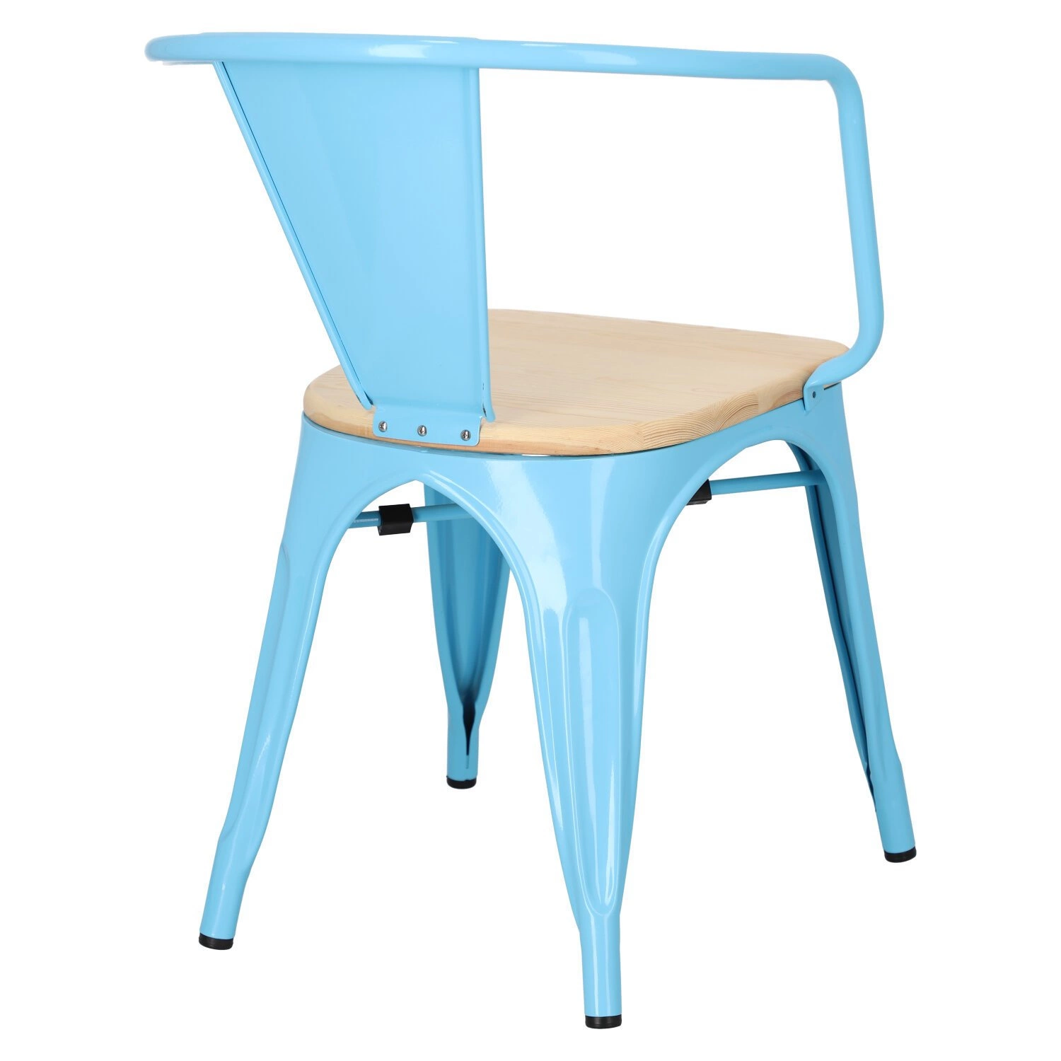 Metalowa konstrukcja, została podkreślona widocznymi elementami spawania, które od razu przynoszą na myśl dźwięki, wydobywające się z hut i starych fabryk. Nogi mebla zostały dodatkowo zabezpieczone gumowymi nakładkami, dzięki czemu pozostaje on stabilny i nie niszczy podłogi podczas przesuwania. Surowy charakter krzesła przełamuje starannie wykonane lakierowane siedzisko z lakierowanego drewna sosnowego. Jest ono dzięki temu gładkie i łatwe do utrzymania w czystości. Oparcie krzesła posiada charakterystyczny, niepełny kształt podtrzymywany przez cienką, metalową rurkę. Taka rama dodaje z pewnością lekkości, na pozór ciężkiemu industrialnemu meblowi. Krzesło Paris Arms Wood wykonane jest z trwałych materiałów, odpornych na uszkodzenia oraz jest dostępne w kilku atrakcyjnych kolorach, które poszerzają możliwości aranżacyjne, gdyż można je ze sobą dowolnie łączyć i tworzyć niepowtarzalne, przyciągające uwagę kombinacje.