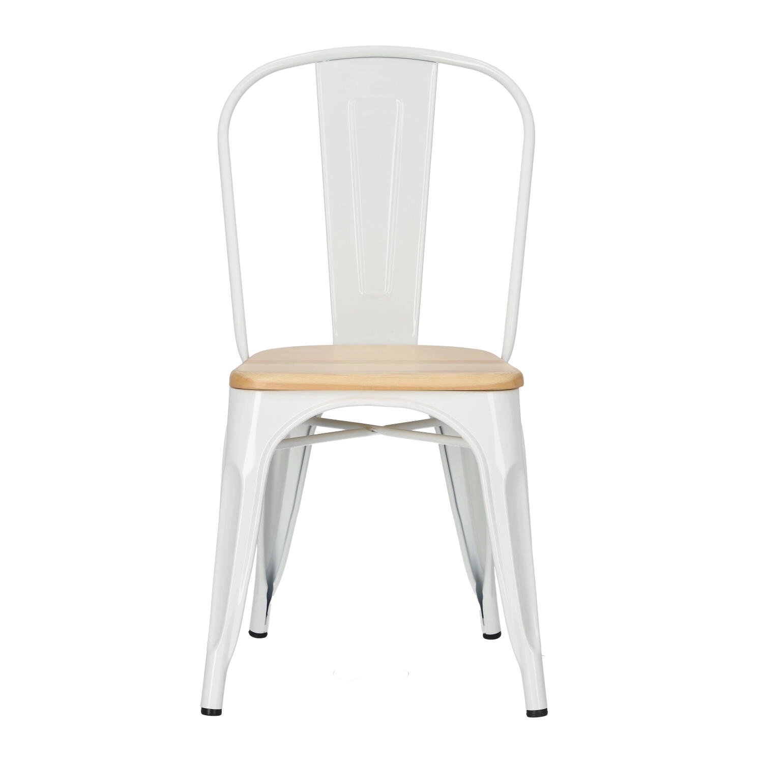 Metalowa konstrukcja, została podkreślona widocznymi elementami spawania, które od razu przynoszą na myśl dźwięki, wydobywające się z hut i starych fabryk. Nogi mebla zostały dodatkowo zabezpieczone gumowymi nakładkami, dzięki czemu pozostaje on stabilny i nie niszczy podłogi podczas przesuwania. Surowy charakter krzesła przełamuje starannie wykonane lakierowane siedzisko z lakierowanego drewna sosnowego. Jest ono dzięki temu gładkie i łatwe do utrzymania w czystości. Oparcie krzesła posiada charakterystyczny, niepełny kształt podtrzymywany przez cienką, metalową rurkę. Taka rama dodaje z pewnością lekkości, na pozór ciężkiemu industrialnemu meblowi. Krzesło Paris Wood wykonane jest z trwałych materiałów, odpornych na uszkodzenia oraz jest dostępne w kilku atrakcyjnych kolorach, które poszerzają możliwości aranżacyjne, gdyż można je ze sobą dowolnie łączyć i tworzyć niepowtarzalne, przyciągające uwagę kombinacje.