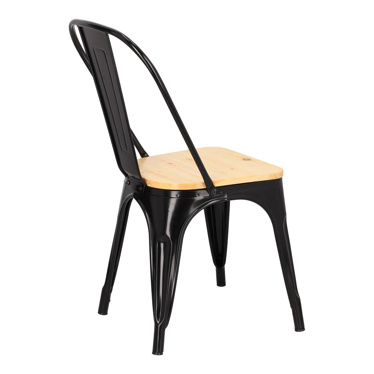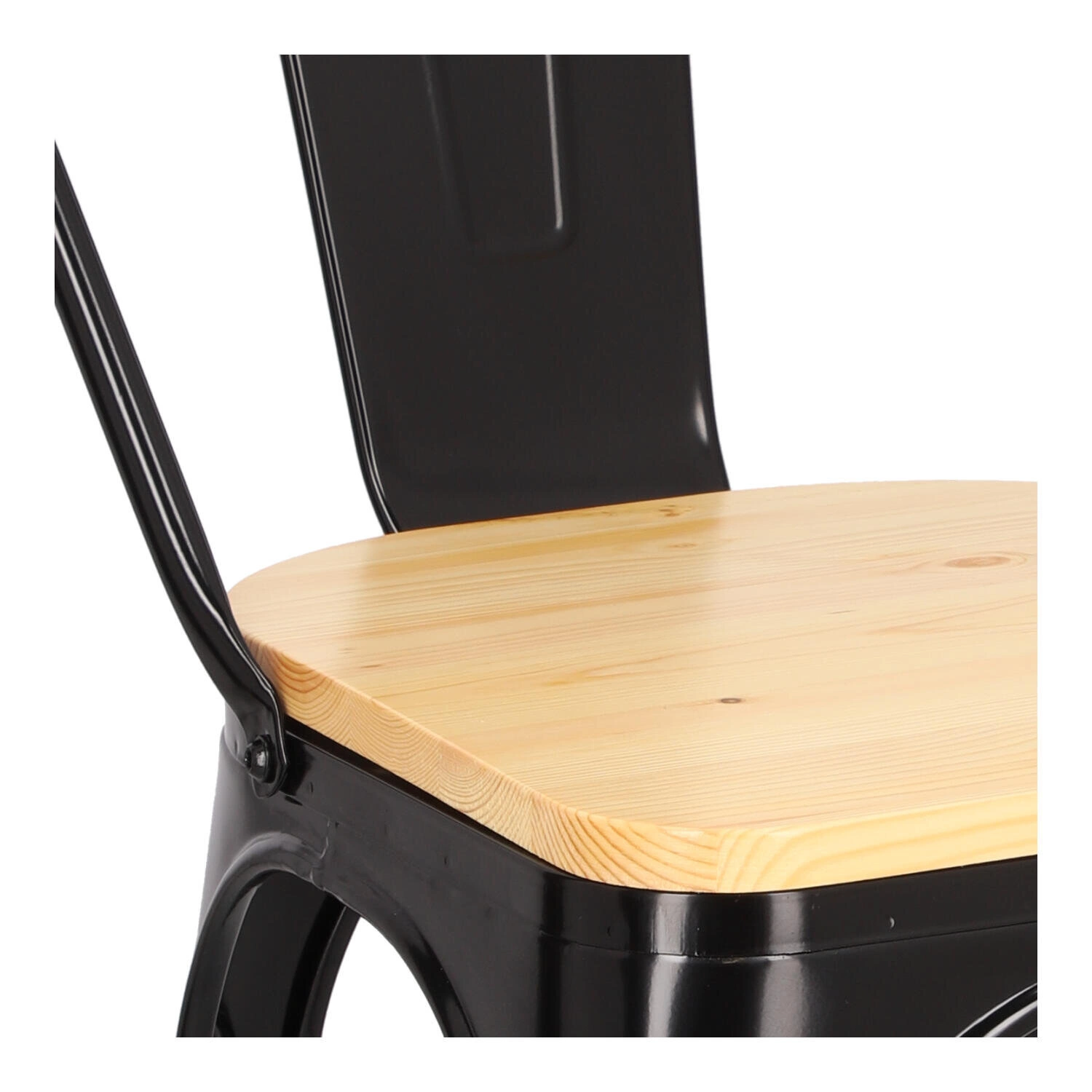 Krzesło do jadalni Paris Wood D2.DESIGN czarne metalowe z drewnianym siedziskiem sosna