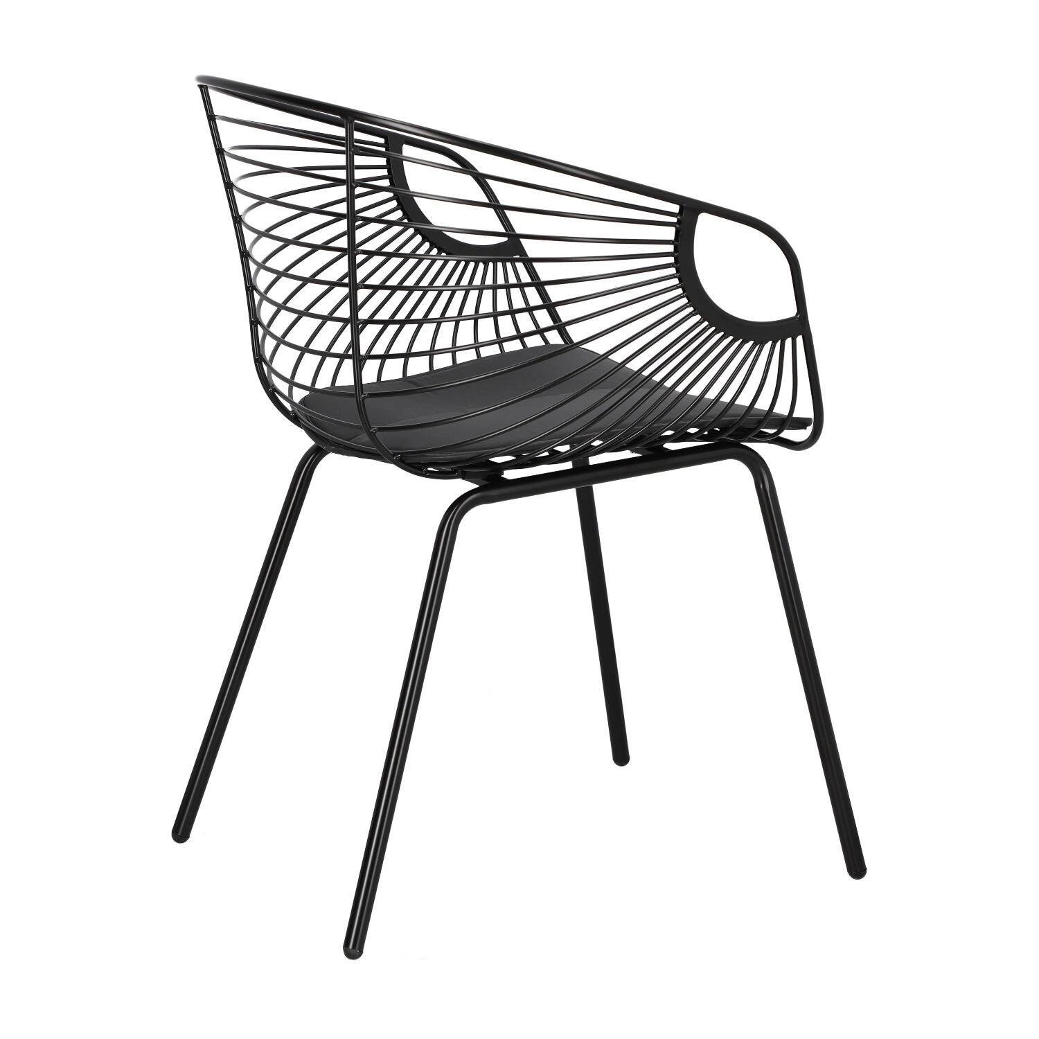 Metalowe krzesło Sligo to nowoczesny mebel wpisujący się designem w większość stylów wnętrzarskich. Fakt, że powstało z malowanego proszkowo na czarno metalu, gwarantuje, że krzesło jest odporne na uszkodzenia mechaniczne i bardzo łatwe w czyszczeniu. Sprawia to, że świetnie sprawdzi się w industrialnej jadalni lub kuchni. Jego wyjątkowe siedzisko zakończone uchwytami doskonale uzupełni też wnętrza publiczne, kawiarnie, restauracje lub poczekalnie w nowoczesnym stylu. Decydując się na to wygodne metalowe krzesło dajesz sobie szansę na wyjątkowy mebel, który urozmaici Twoje wnętrze.