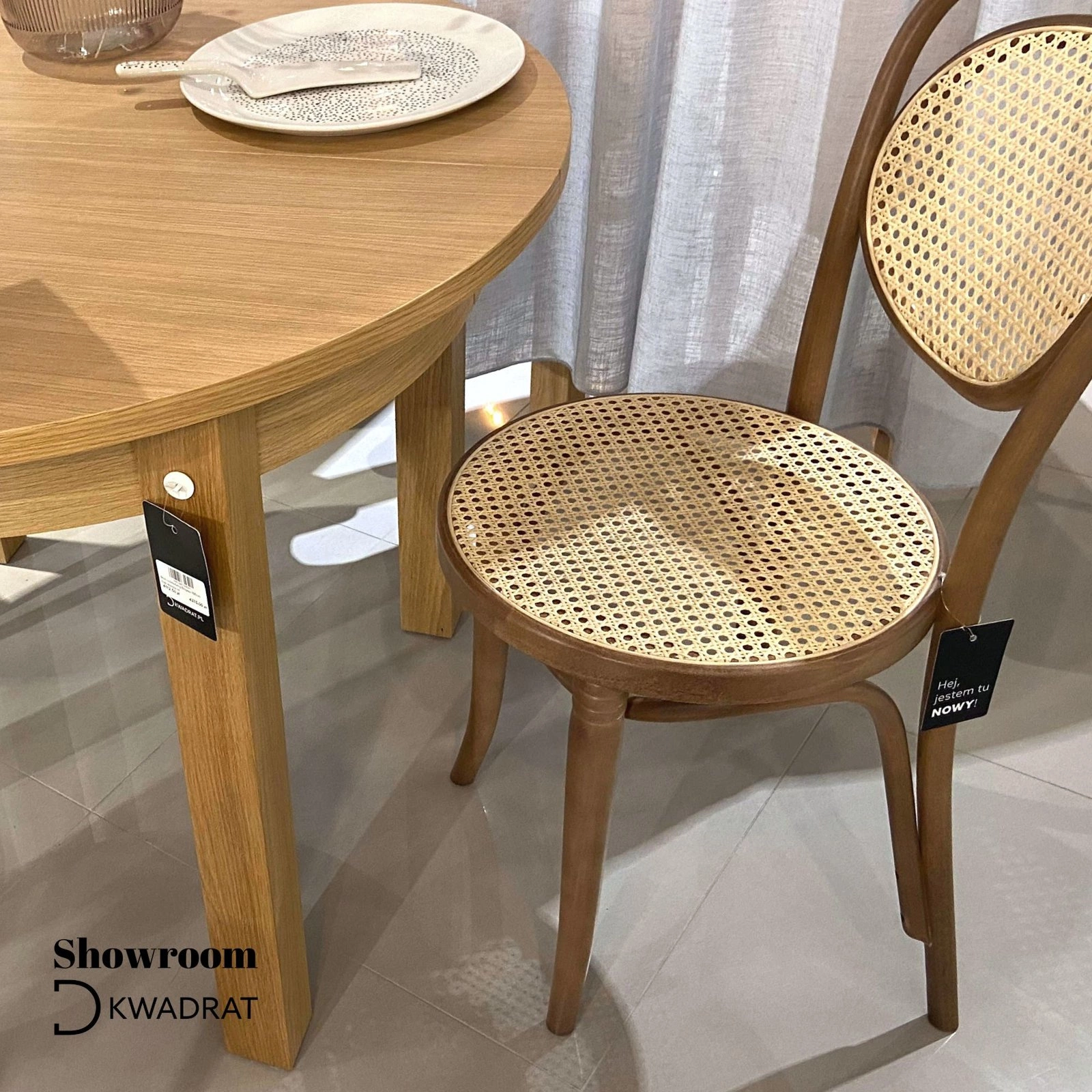- Gdy wybierzesz odpowiednie wybarwienie drewna, zdecyduj o rodzaju siedziska — tapicerowane lub wyplatane.