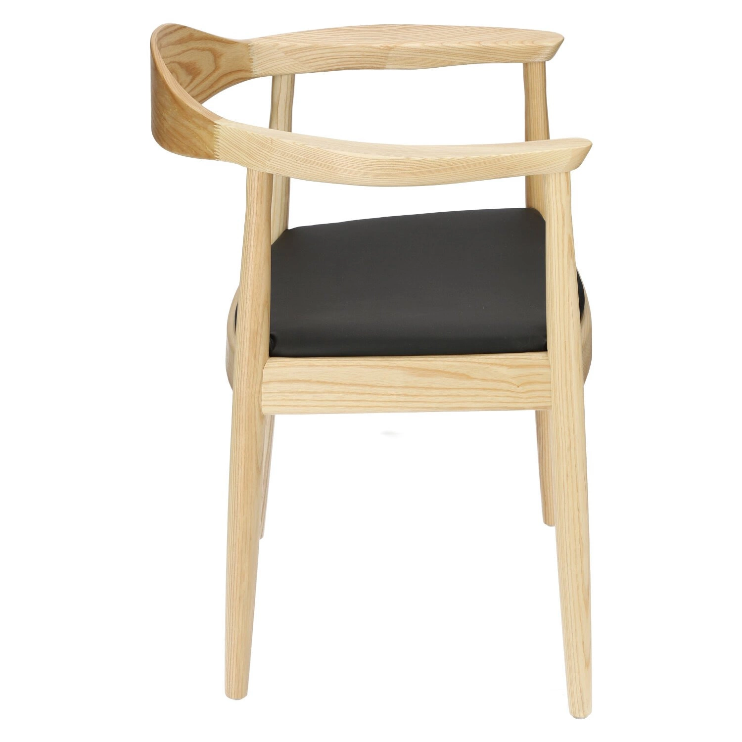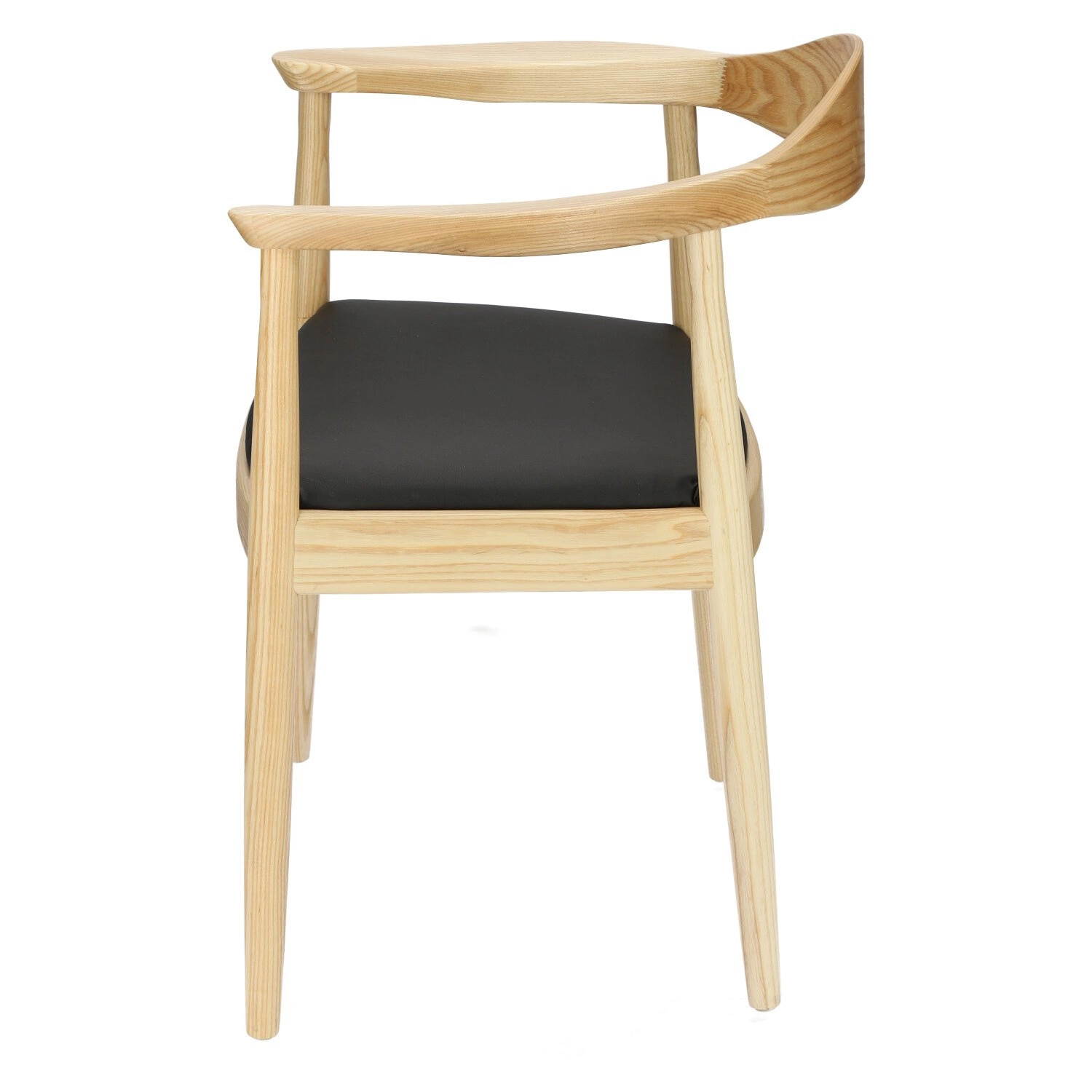 Krzesło President inspirowane słynnym projektem Hansa Wegnera z 1949 roku to przykład piękna czerpiącego z prostoty. Wykonane z jasnego drewna jesionowego krzesło zachwyca swoją subtelną zaokrągloną formą. Delikatna krzywizna oparcia harmonijnie przechodzi w zaokrąglone podłokietniki, a miękkie siedzisko z czarnej eko skóry zaprasza do wygodnego wyciągnięcia się na krześle. Każdy element krzesła drewnianego President zachwyca precyzją wykonania. Prawie niewidoczne łączenia są znakiem rozpoznawczym cenionych wegnerowskich modeli. Kultowe krzesło z podłokietnikami inspirowane ikoną duńskiego designu wprowadzi do wnętrza nieprzemijającą elegancję i trwałość najwyższej klasy rzemieślnictwa.