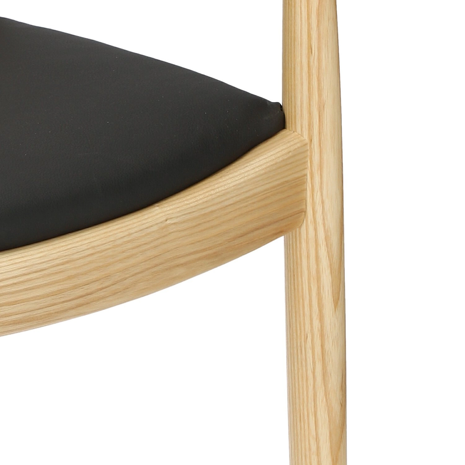 Krzesło President inspirowane słynnym projektem Hansa Wegnera z 1949 roku to przykład piękna czerpiącego z prostoty. Wykonane z jasnego drewna jesionowego krzesło zachwyca swoją subtelną zaokrągloną formą. Delikatna krzywizna oparcia harmonijnie przechodzi w zaokrąglone podłokietniki, a miękkie siedzisko z czarnej eko skóry zaprasza do wygodnego wyciągnięcia się na krześle. Każdy element krzesła drewnianego President zachwyca precyzją wykonania. Prawie niewidoczne łączenia są znakiem rozpoznawczym cenionych wegnerowskich modeli. Kultowe krzesło z podłokietnikami inspirowane ikoną duńskiego designu wprowadzi do wnętrza nieprzemijającą elegancję i trwałość najwyższej klasy rzemieślnictwa.