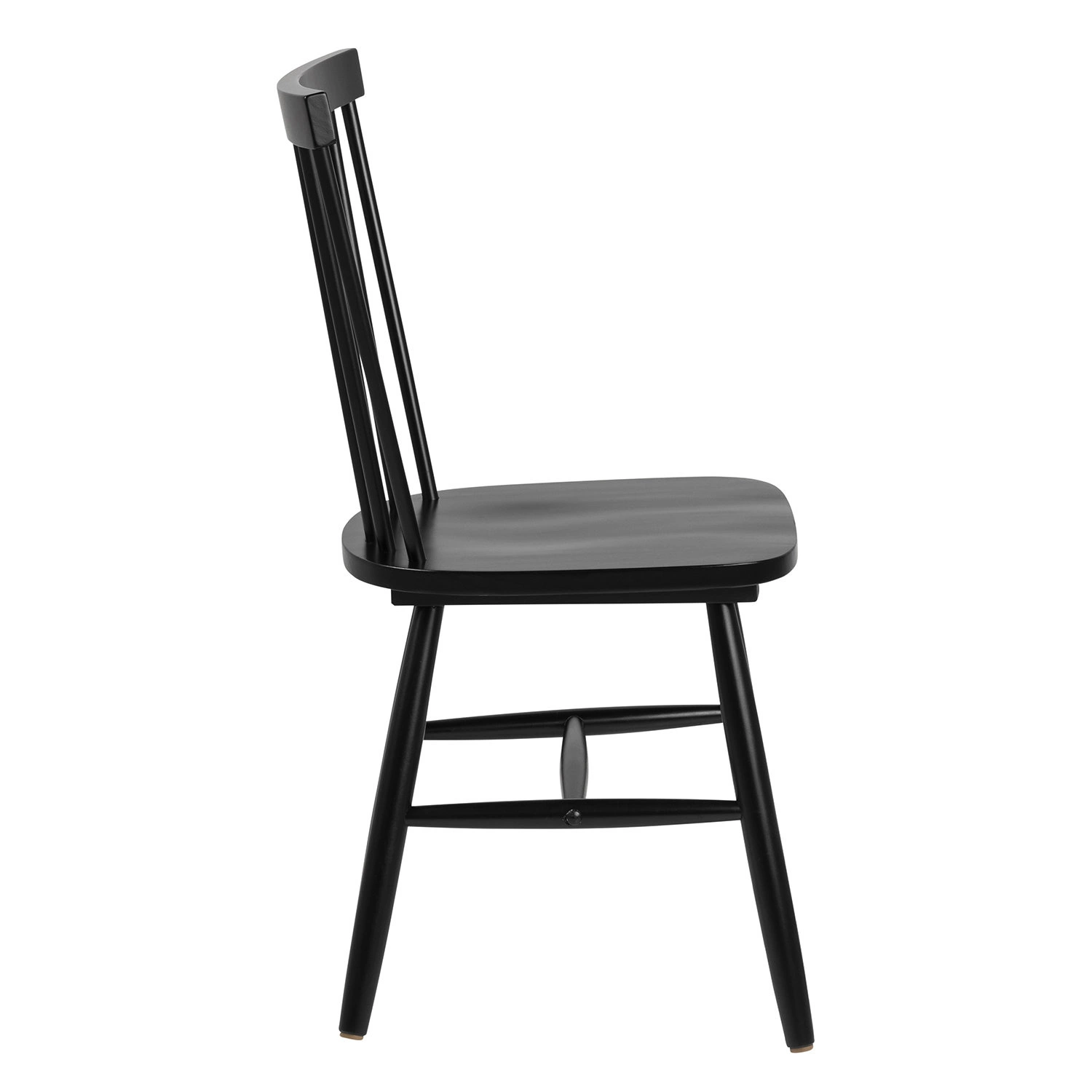 Krzesło Riano w kolorze czarnym to drewniana klasyka w najlepszym wydaniu. Szerokie oparcie z charakterystycznymi szczebelkami przechodzi w proste siedzisko i smukłe nogi złączone wspornikami. Wykonane z wytrzymałego drewna kauczukowego klasyczne krzesło będzie doskonałym wyborem do jadalni w stylu skandynawskim, salonu w stylu retro czy rustykalnej restauracji. Głębokie siedzisko i zaokrąglone oparcie dają gwarancję wygody, a solidna konstrukcja sprawia, że krzesło drewniane Riano będzie inwestycją na lata. Zgrabna budowa krzesła „patyczak” (wymiary: 48 cm x 86 cm x 48, 5 cm) pozwala na dopasowanie go nawet do niedużej przestrzeni.