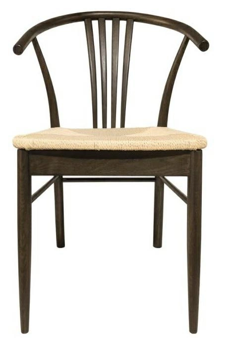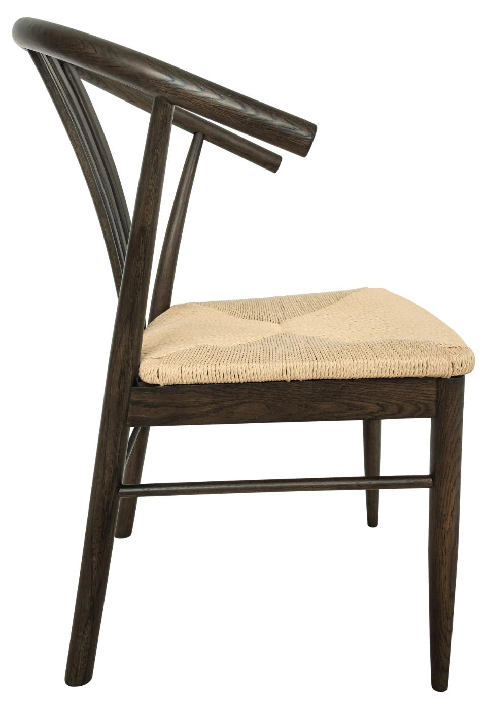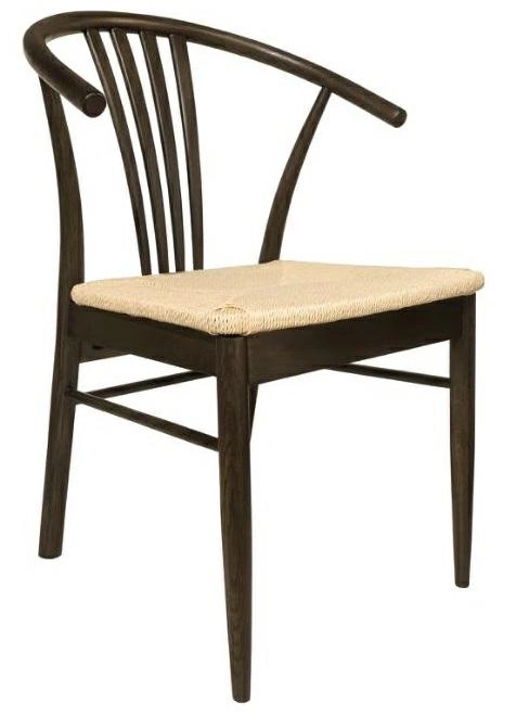Krzesło do jadalni York z podłokietnikiem to elegancki mebel o nowoczesnym designie, który łączy białe papierowe plecionki z naturalnym drewnem. Oparcie i siedzisko wykonane z plecionek nadają krzesłu lekkiego, rękodzielniczego charakteru. Konstrukcja krzesła opiera się na solidnej podstawie z matowego dębu, lakierowanego na dymny odcień (NC), co nadaje mu ciepły i przytulny wygląd. Podłokietniki oraz łukowaty kształt oparcia zapewniają nie tylko wygodę, ale także elegancki, kopertowy wzór, który wprowadza do wnętrza subtelny, ale nowoczesny akcent.