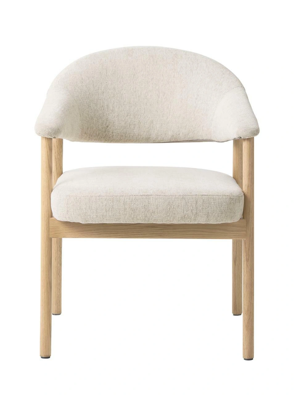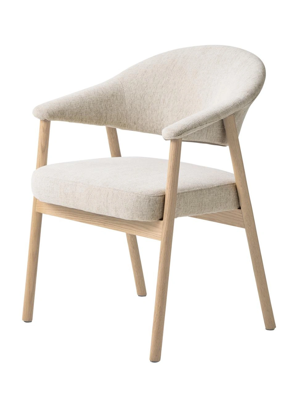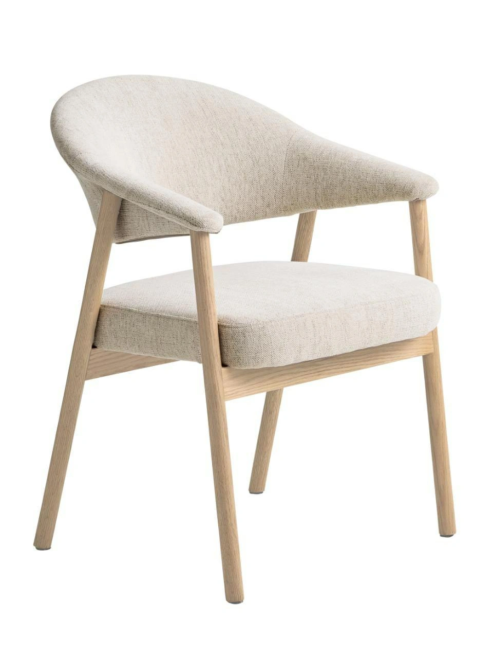 Zaokrąglone krawędzie, subtelne przejścia między oparciem a podłokietnikami oraz smukłe nogi nadają meblowi lekki, wysmakowany charakter. Dzięki skandynawskiej prostocie krzesło łatwo dopasujesz do wielu aranżacji – od nowoczesnych, po klasyczne wnętrza z drewnianymi dodatkami.