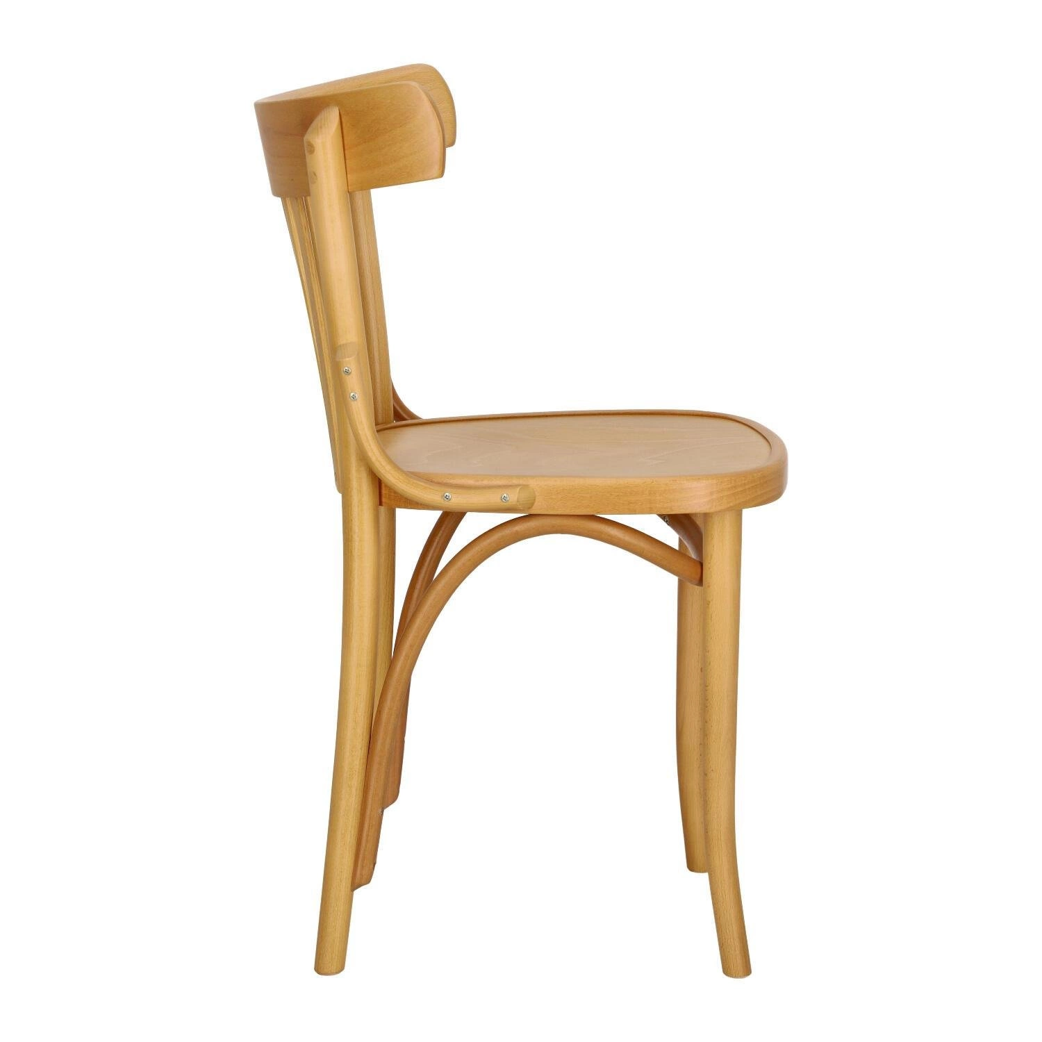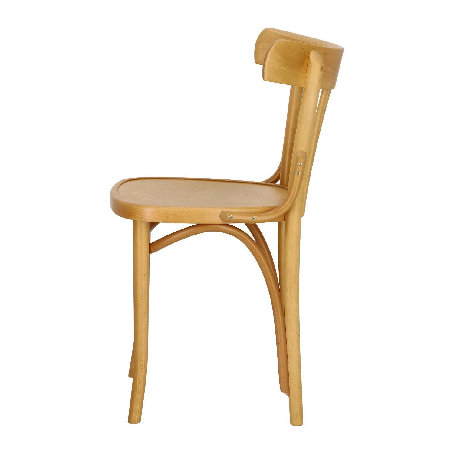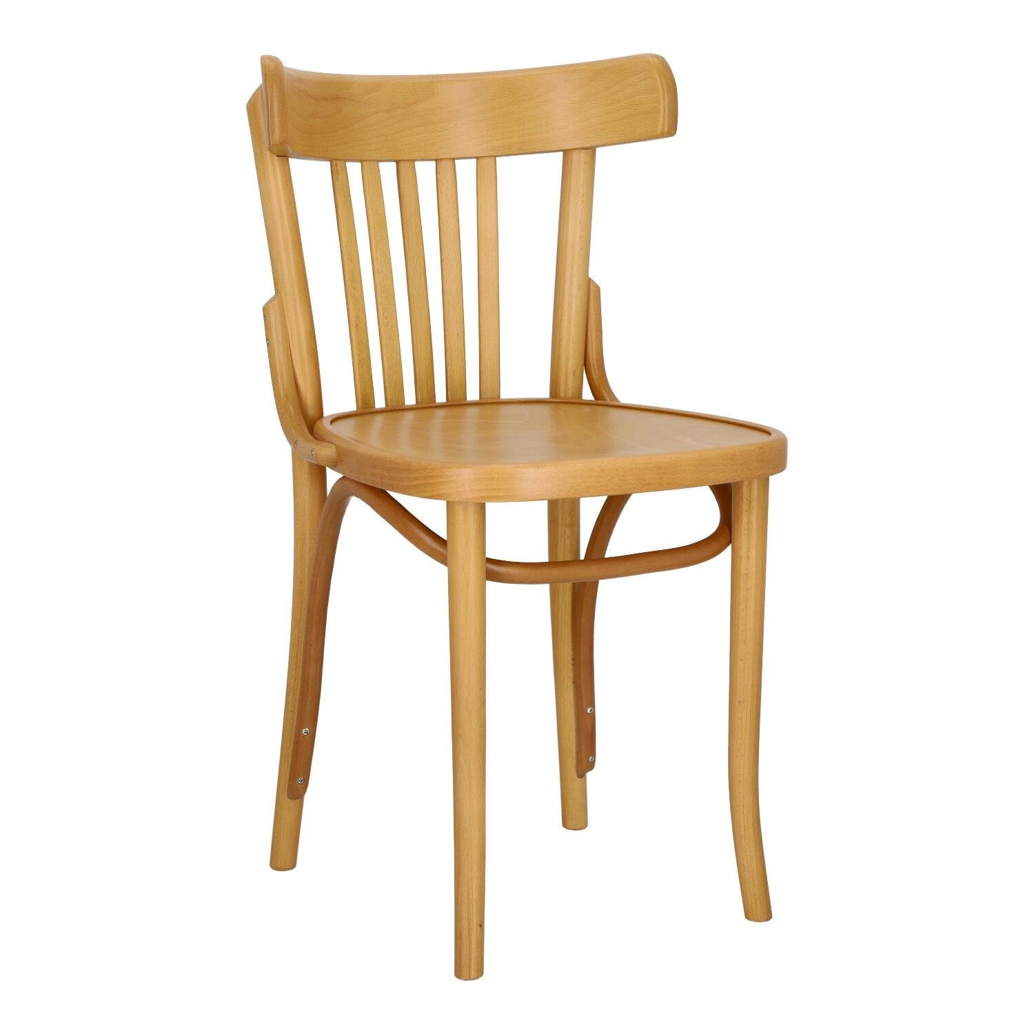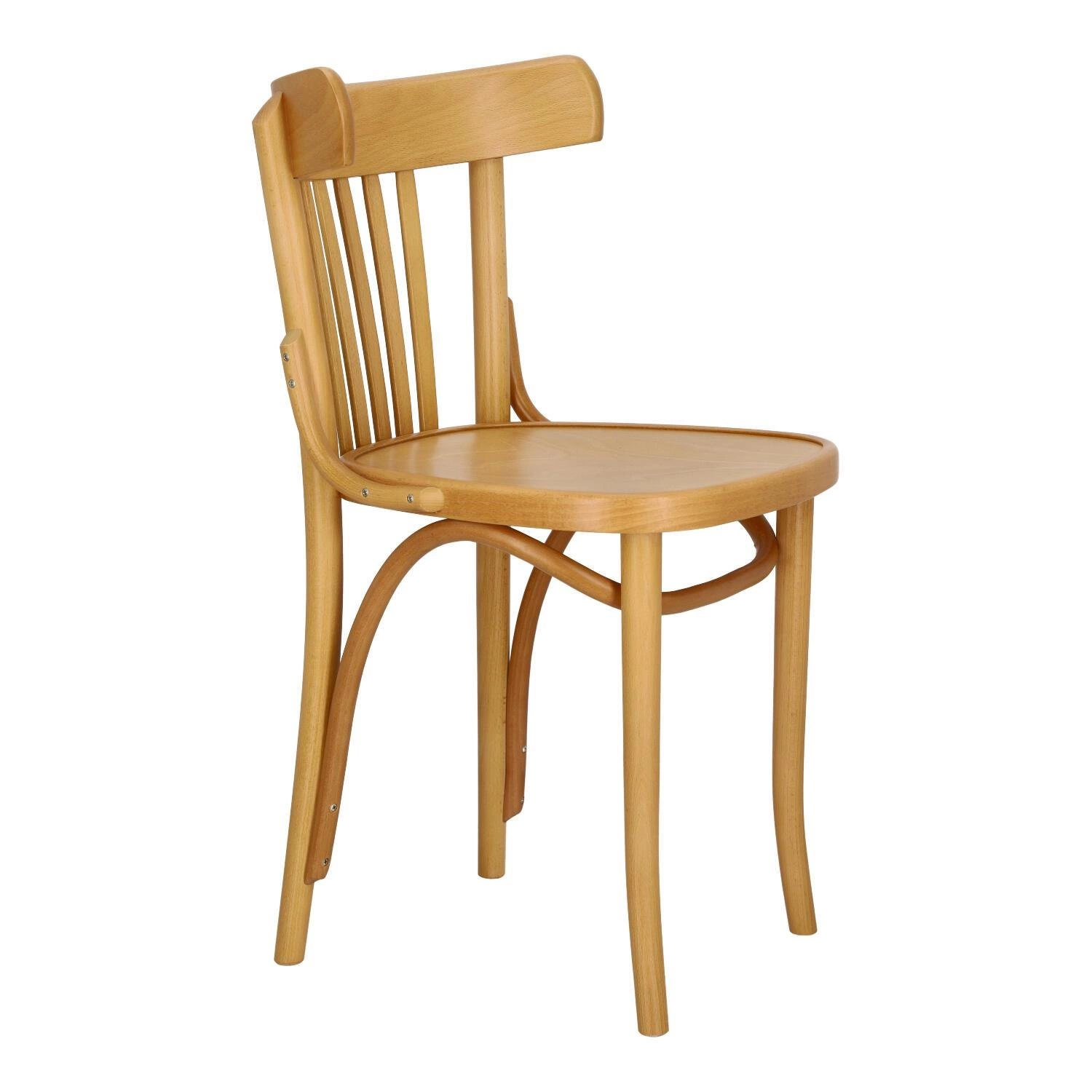 Prototyp tej znanej i uwielbianej formy krzesła drewnianego powstał już w 1885 roku. Wykonane zostało z oryginalnie giętych elementów produkowanych w thonetowskiej technologii z drewna bukowego. Na pozór prosta forma uzupełniona została delikatnymi płynnymi elementami scalającymi całość. Warto zwrócić uwagę na pięknie wygięty wspornik pod siedziskiem, a także typowy dla tego modelu wachlarz ze sklejkowych elementów wypełniający oparcie. Wszystko to w połączeniu z wyoblonym oparciem i zaokrąglonym na krawędziach siedziskiem sprawia, że krzesło jest fenomenalnie piękne, a zarazem wygodne i funkcjonalne. Dzięki swej prostej formie sprawdzi się zarówno jako krzesło do kuchni i jadalni, jak i do restauracji.