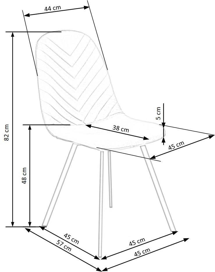 Elegancja i styl w nowoczesnym wydaniu Krzesło Jeanne to wyraz nowoczesnej elegancji. Jego solidna podstawa wykonana z czarnej, proszkowo malowanej stali nie tylko gwarantuje trwałość, ale także nadaje meblowi nowoczesnego charakteru. Siedzisko i oparcie krzesła są starannie tapicerowane delikatną tkaniną welurową, która nie tylko jest miła w dotyku, ale także zapewnia wygodę siedzenia. To idealny mebel do relaksu, niezależnie od tego, czy jesteś przy stole w jadalni, w salonie czy w pokoju młodzieżowym. Krzesło Jeanne jest wszechstronne i sprawdzi się w różnych wnętrzach. Dostępność w dwóch modnych kolorach pozwala na dopasowanie go do swojego stylu, nadając pomieszczeniu osobistego charakteru. Ozdobne przeszycia na oparciu, utrzymane w subtelnym wzorze w jodełki, to nie tylko element dekoracyjny, ale także wyraz dbałości o detale i indywidualnego stylu. Krzesło Jeanne to nie tylko mebel, to wyraz Twojego stylu i elegancji we wnętrzu. Daj mu szansę, aby stało się integralną częścią Twojego domu, dodając mu nie tylko funkcjonalności, ale także osobistego uroku. Przygotuj się na mądry wybór! Krzesło Jeanne łączy w sobie elegancję i styl Stalowa podstawa zapewnia trwałość mebla Tkanina welurowa gwarantuje wyjątkowy komfort siedzenia