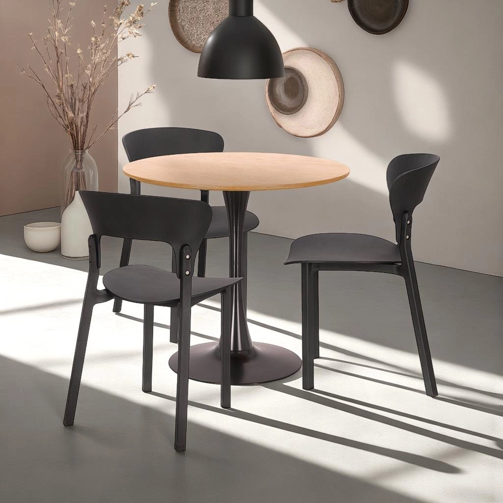 Model Kabru zachwyca minimalistycznym designem, który doskonale wpisuje się w nowoczesne i loftowe aranżacje wnętrz. Uniwersalna czerń i smukła forma czynią z niego idealny wybór zarówno do stołu w jadalni, jak i do ogrodu, kawiarni czy restauracji. Tworzywo sztuczne, z którego zostało wykonane, jest odporne na działanie wilgoci oraz promieni słonecznych, co pozwala swobodnie korzystać z krzesła na tarasie lub balkonie przez cały sezon.