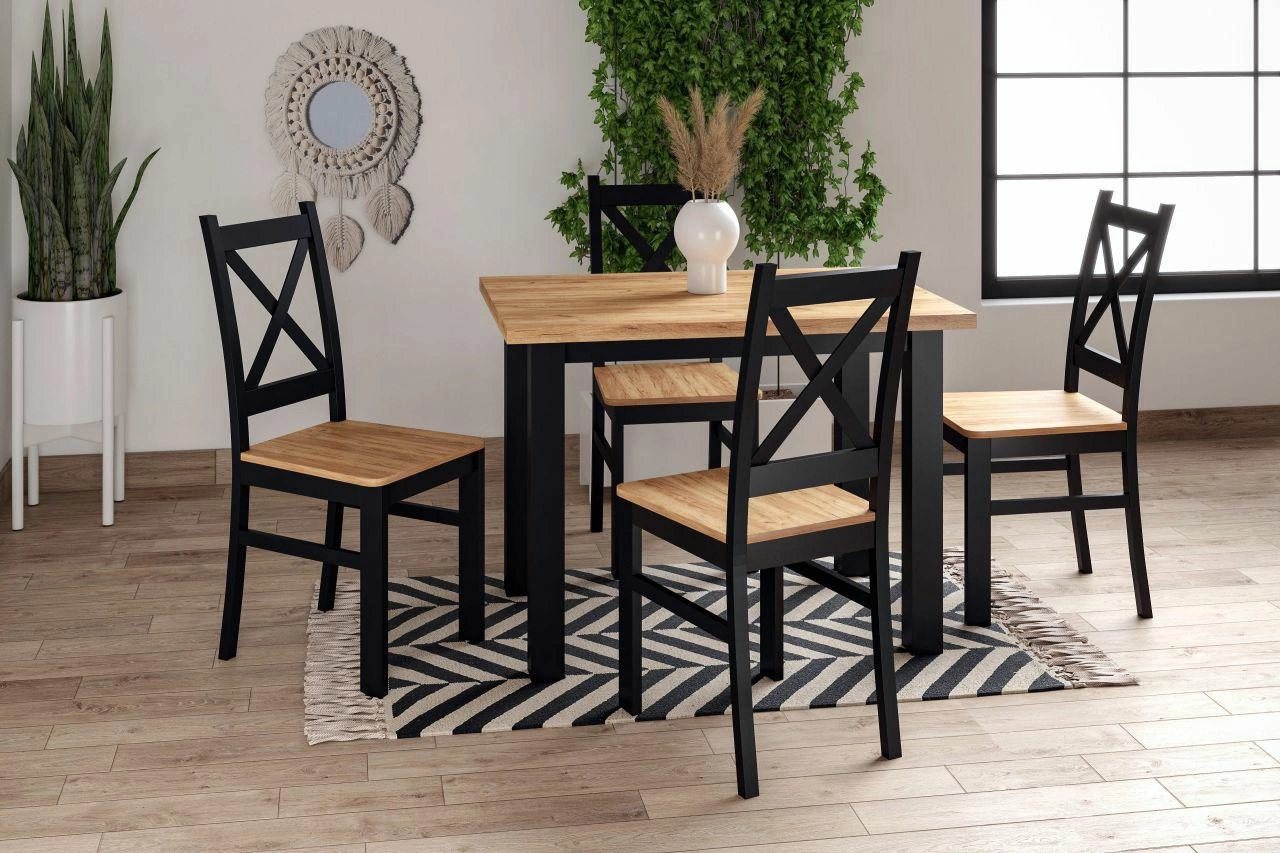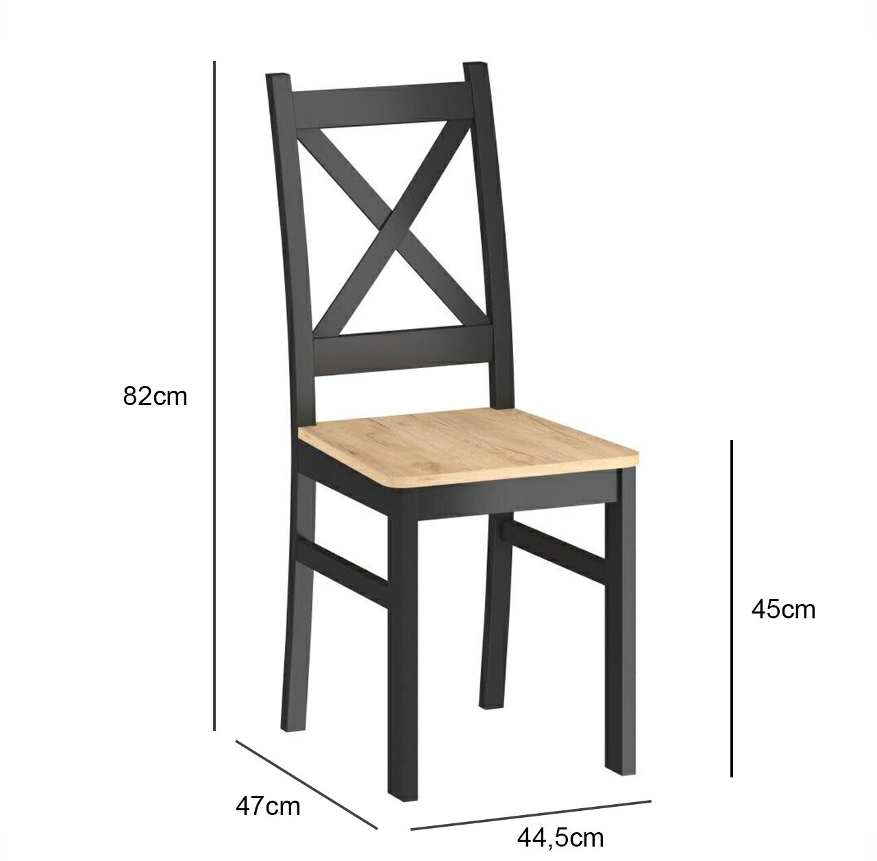 Odpowiednie proporcje i wymiary sprawiają, że krzesło Lacie jest komfortowe i wygodne. Szerokość siedziska wynosząca 42 cm i wysokość siedziska 48 cm zapewniają odpowiednie wsparcie dla użytkownika. Dodatkowo, głębokość siedziska wynosząca 40 cm pozwala na wygodne usadzenie się. Estetyka krzesła jest równie imponująca jak jego funkcjonalność. Siedzisko w kolorze dębu złotego craft nadaje mu elegancji i charakteru, podczas gdy stelaż w kolorze czarnym dodaje mu nowoczesnego wyrazu. Dzięki swojemu uniwersalnemu designowi, krzesło Lacie doskonale komponuje się zarówno z nowoczesnymi, jak i klasycznymi aranżacjami wnętrz. Może być używane zarówno w jadalni, salonie, biurze czy nawet jako element dekoracyjny w innych pomieszczeniach.