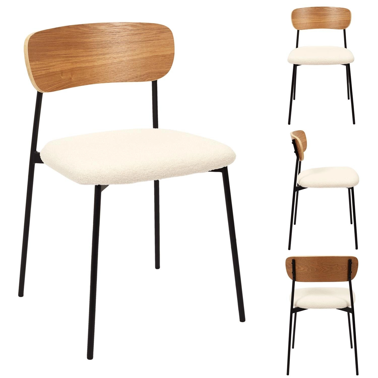 Krzesło Loki to mebel, który wprowadzi do Twojego wnętrza atmosferę retro. Prosty, lecz efektowny design nawiązuje do niezapomnianych, szkolnych lat. Siedzisko wykonane jest z miękkiej, beżowej tkaniny boucle, które gwarantuje komfort podczas siedzenia. Oparcie krzesła, pokryte fornirem, utrzymane jest w naturalnym tonie, co dodaje meblowi ciepła. Stabilność krzesła zapewniają cztery metalowe nogi, które są malowane proszkowo na czarno.