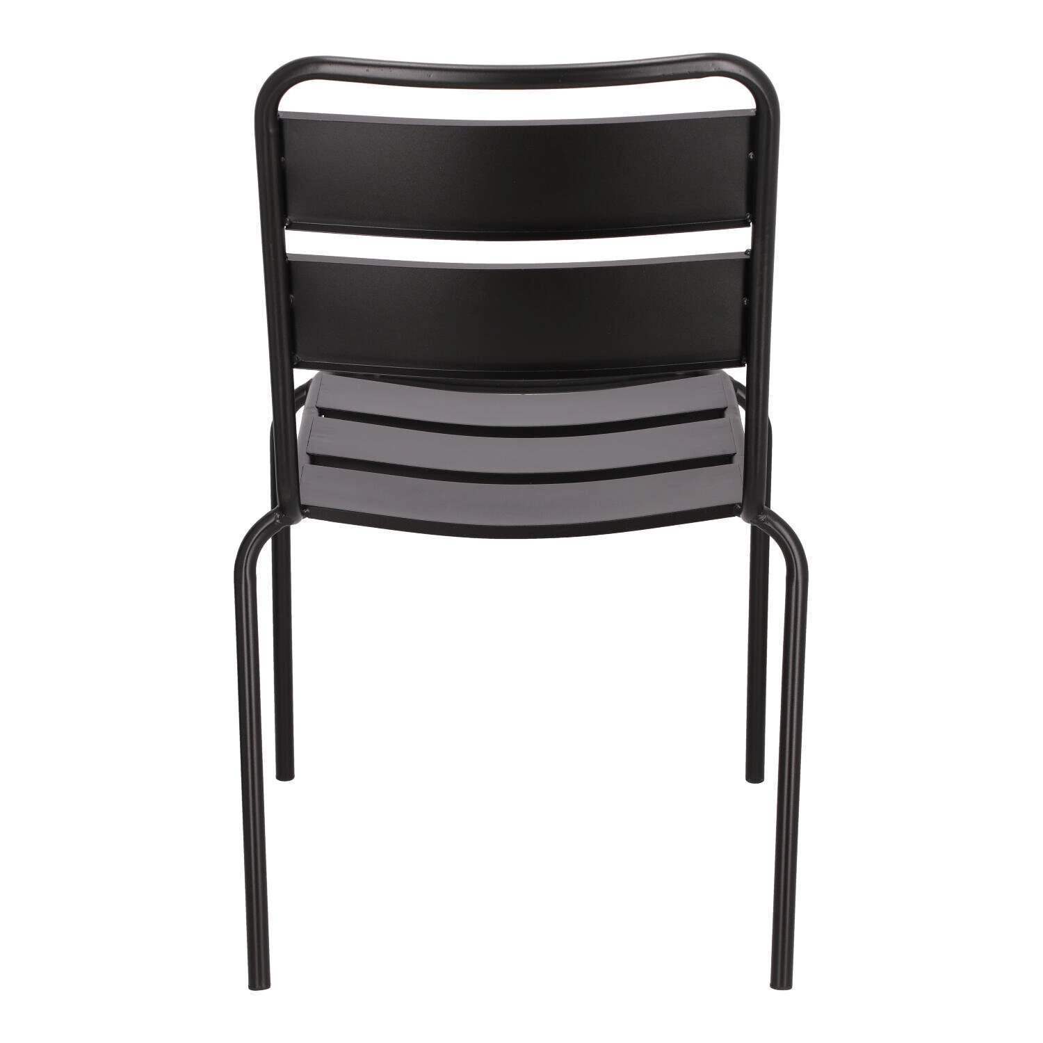 - Poziome pasy metalu na siedzisku i oparciu gwarantują wygodę i nowoczesny wygląd.