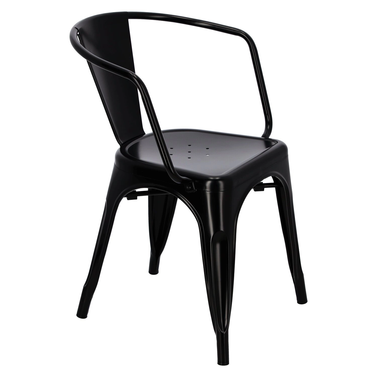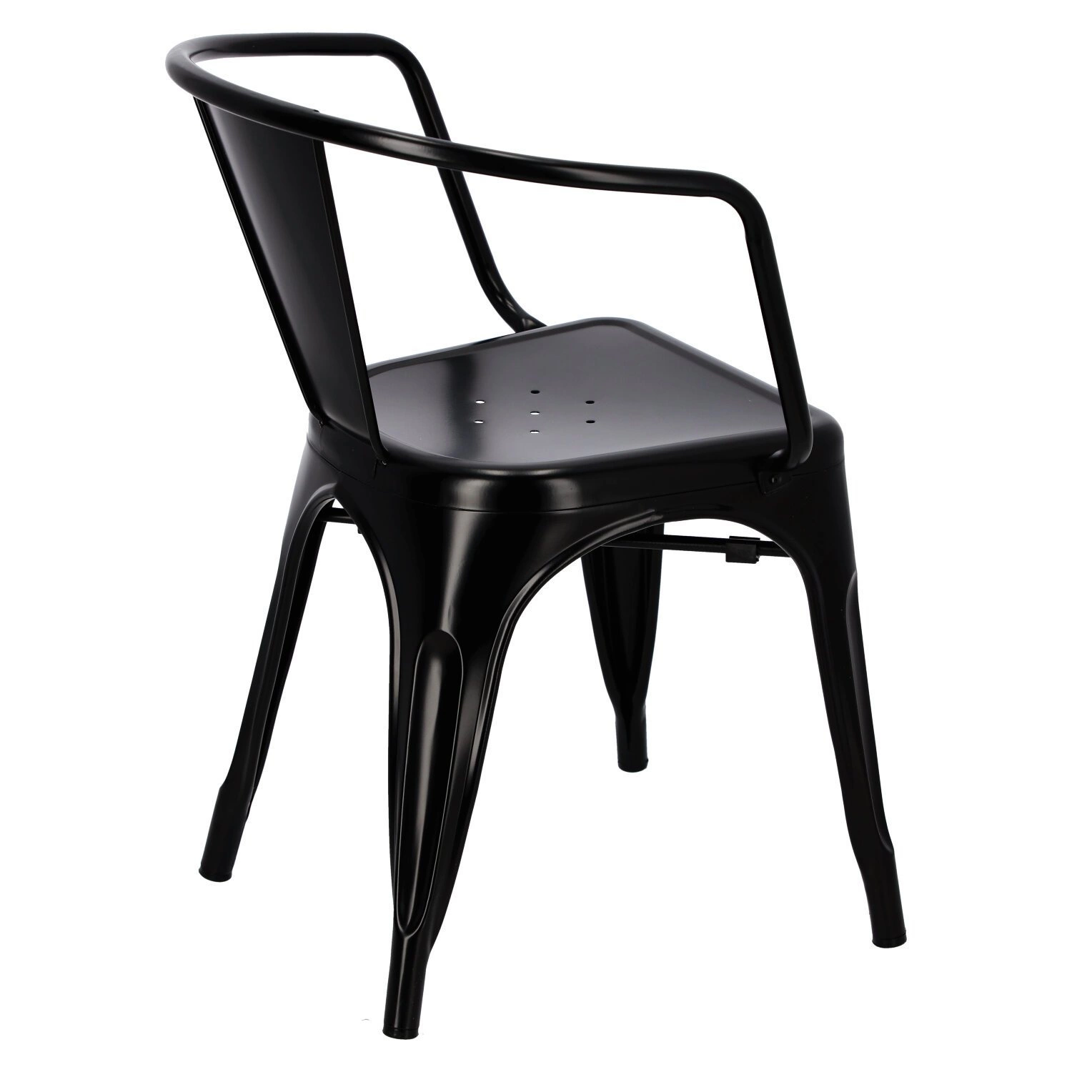 Krzesło metalowe Paris Arms czarne do jadalni i kuchni inspirowane Tolix industrialne z podłokietnikami