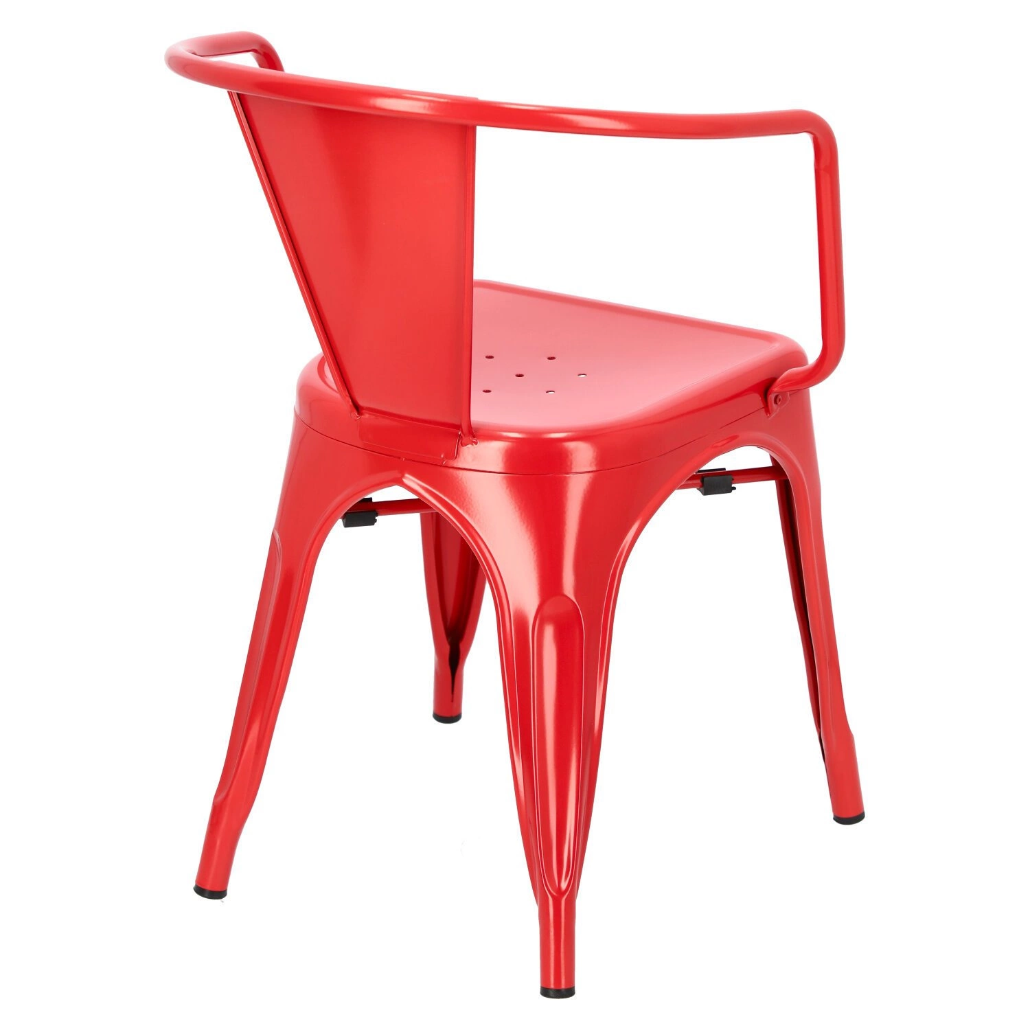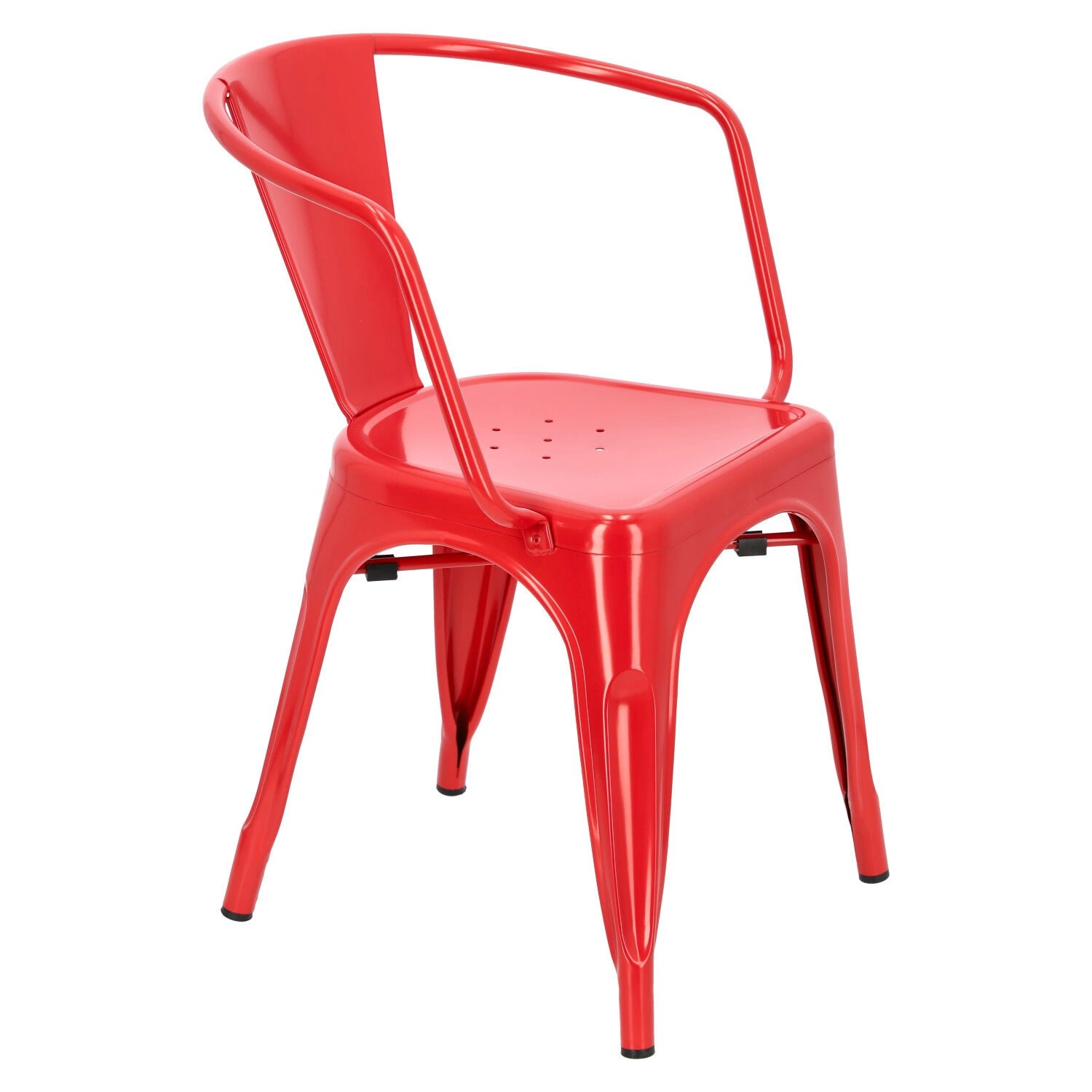 Metalowa konstrukcja, została podkreślona widocznymi elementami spawania, które od razu przynoszą na myśl dźwięki, wydobywające się z hut i starych fabryk. Nogi mebla zostały dodatkowo zabezpieczone gumowymi nakładkami, dzięki czemu pozostaje on stabilny i nie niszczy podłogi podczas przesuwania. Oparcie krzesła posiada charakterystyczny, niepełny kształt podtrzymywany przez cienką, metalową rurkę. Taka rama dodaje z pewnością lekkości, na pozór ciężkiemu industrialnemu meblowi. Krzesło Paris Arms wykonane jest z trwałych materiałów, odpornych na uszkodzenia oraz jest dostępne w kilku atrakcyjnych kolorach, które poszerzają możliwości aranżacyjne, gdyż można je ze sobą dowolnie łączyć i tworzyć niepowtarzalne, przyciągające uwagę kombinacje.