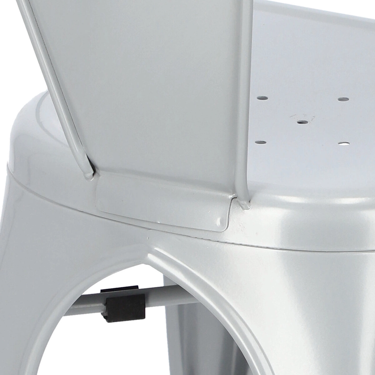 Metalowa konstrukcja, została podkreślona widocznymi elementami spawania, które od razu przynoszą na myśl dźwięki, wydobywające się z hut i starych fabryk. Nogi mebla zostały dodatkowo zabezpieczone gumowymi nakładkami, dzięki czemu pozostaje on stabilny i nie niszczy podłogi podczas przesuwania. Oparcie krzesła posiada charakterystyczny, niepełny kształt podtrzymywany przez cienką, metalową rurkę. Taka rama dodaje z pewnością lekkości, na pozór ciężkiemu industrialnemu meblowi. Krzesło Paris Arms wykonane jest z trwałych materiałów, odpornych na uszkodzenia oraz jest dostępne w kilku atrakcyjnych kolorach, które poszerzają możliwości aranżacyjne, gdyż można je ze sobą dowolnie łączyć i tworzyć niepowtarzalne, przyciągające uwagę kombinacje.