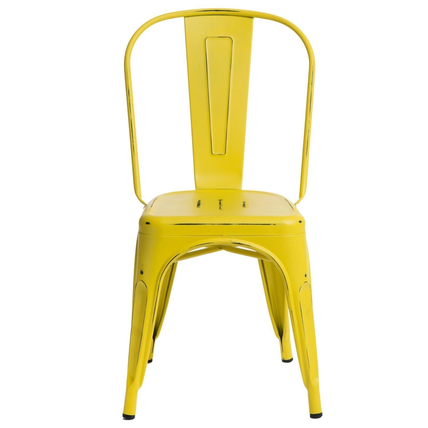 Konstrukcja wykonana w całości z metalu wykończonego w macie, została podkreślona widocznymi elementami spawania, które od razu przynoszą na myśl dźwięki, wydobywające się z hut i starych fabryk. Nogi mebla zostały dodatkowo zabezpieczone gumowymi nakładkami, dzięki czemu pozostaje on stabilny i nie niszczy podłogi podczas przesuwania. Oparcie krzesła posiada charakterystyczny, niepełny kształt podtrzymywany przez cienką, metalową rurkę. Taka rama dodaje z pewnością lekkości, na pozór ciężkiemu industrialnemu meblowi. Krzesło Paris Antique wykonane jest z trwałych materiałów, odpornych na uszkodzenia oraz jest dostępne w kilku atrakcyjnych kolorach, które poszerzają możliwości aranżacyjne, gdyż można je ze sobą dowolnie łączyć i tworzyć niepowtarzalne, przyciągające uwagę kombinacje.