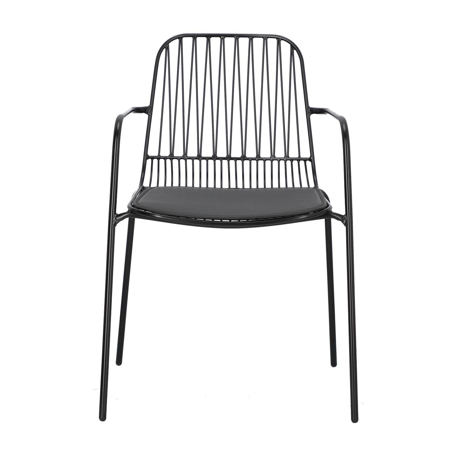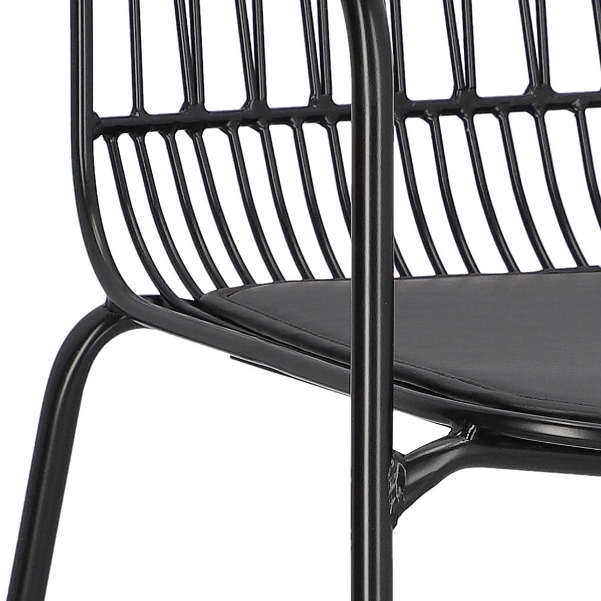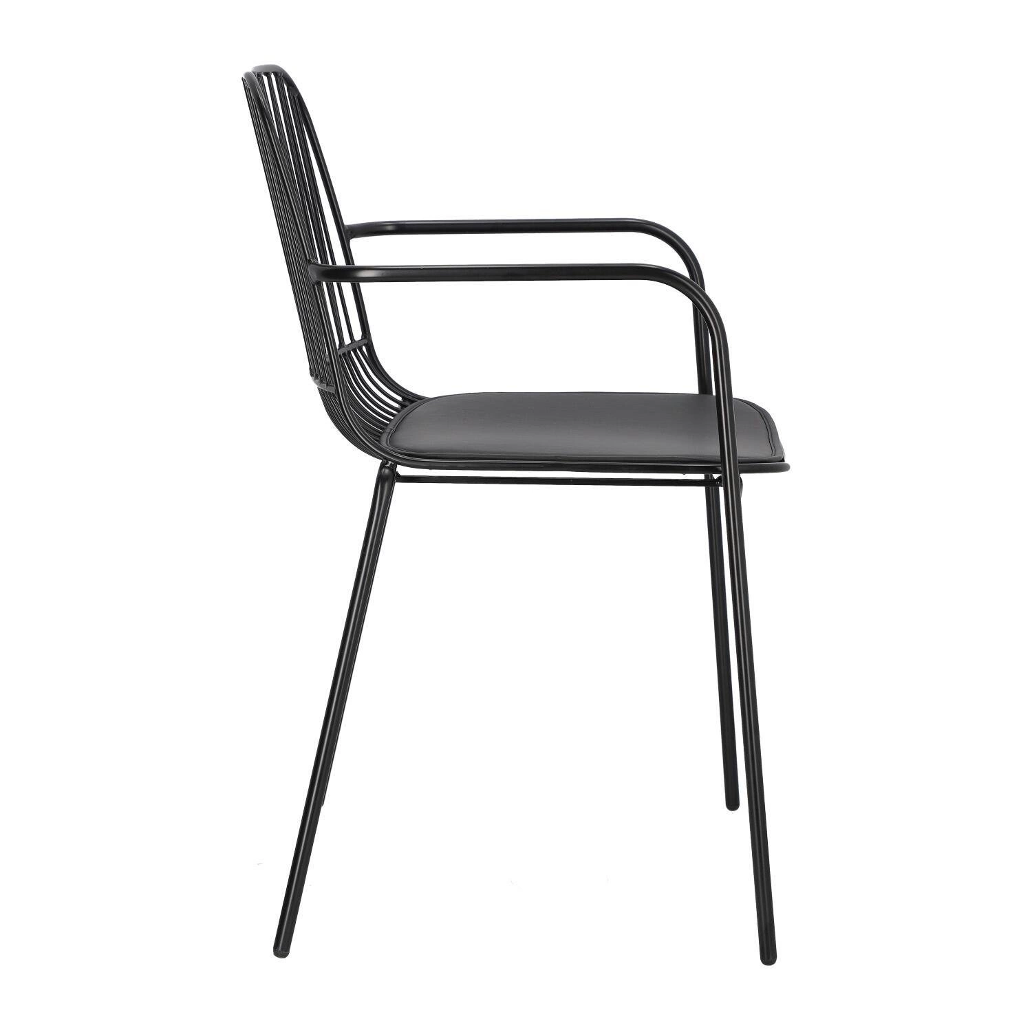 Krzesło Willy wykonane zostało z wysokiej jakości malowanego proszkowo metalu, który zapewni trwałość na długie lata. Posiada wygodne, wyprofilowane oparcie złożone z pionowych elementów, układających się w geometryczny wzór. Te precyzyjne łączenia sprawiają, że krzesło jest bardziej trendy. Mebel wyposażony został w miękką poduszkę wykonaną z pianki tapicerskiej obitej ekologiczną skórą. Zaletą z pewnością są podłokietniki, które zapewnią komfort i wygodę. Podstawa spoczywa na czterech czarnych, smukłych nogach. Dodatkowo od spodu zabezpieczone są one gumowymi nakładkami, dzięki którym krzesło nie będzie się przesuwać. Stabilna konstrukcja to cecha rozpoznawcza Krzesła Willy.