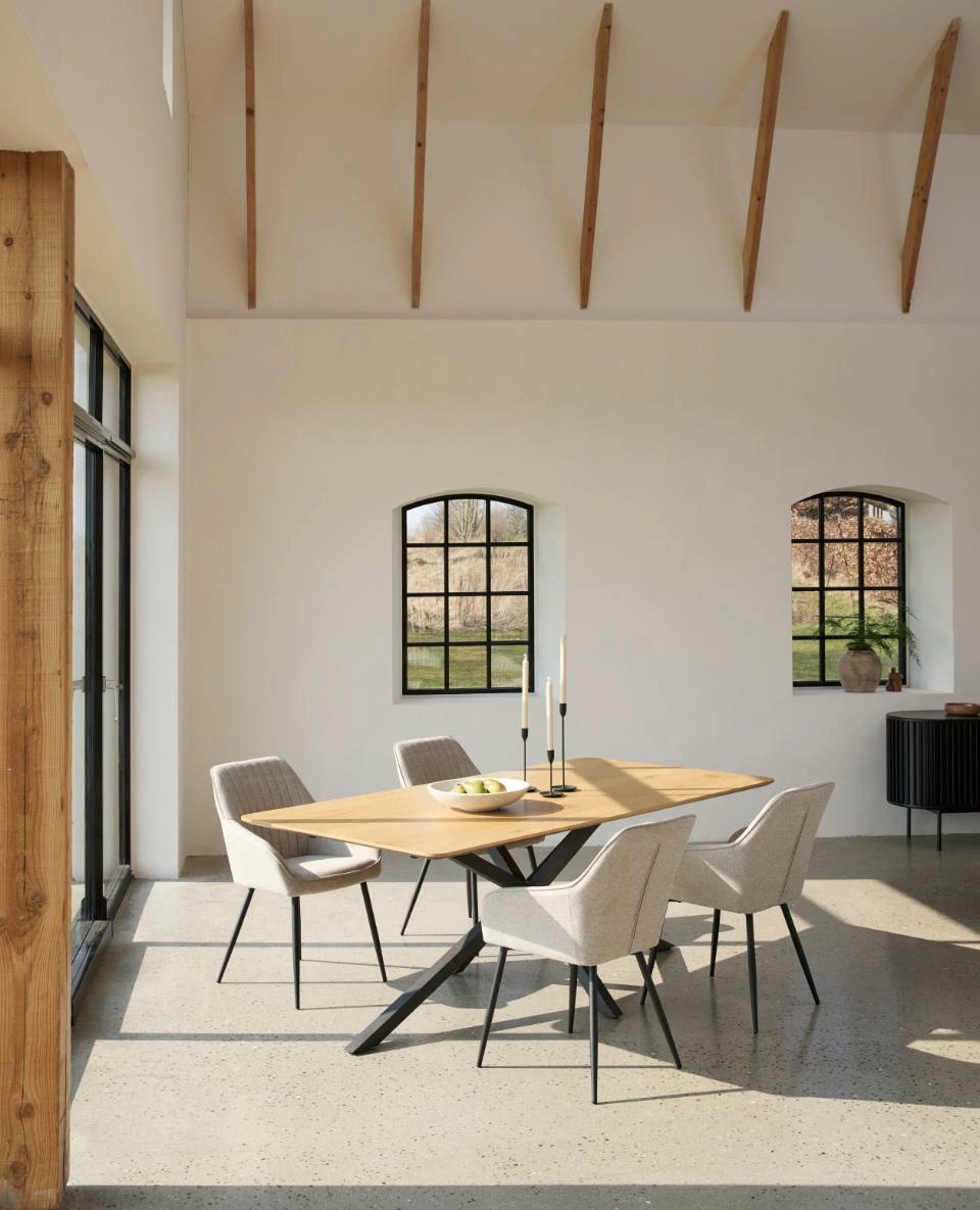 Nolan to funkcjonalne krzesło do jadalni z podłokietnikami, ale jego zastosowanie nie kończy się na strefie stołu. W salonie może pełnić rolę wygodnego miejsca dla gości, a w kuchni połączonej z jadalnią pomoże stworzyć spójną i komfortową przestrzeń. To także dobry wybór, jeśli szukasz krzesła tapicerowanego z czarnymi nogami, które łączy modny wygląd z codzienną wygodą.