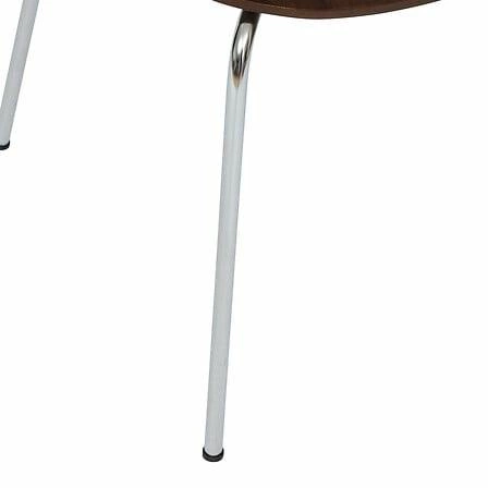 Wykonane z wysokiej jakości drewna kauczukowego siedzisko w ciepłym, orzechowym odcieniu nadaje krzesłu wyjątkowego charakteru. Chromowane nogi podkreślają nowoczesny design, a jednocześnie zapewniają trwałość i stabilność. Połączenie tych materiałów sprawia, że mebel prezentuje się elegancko, a zarazem jest odporny na codzienne użytkowanie. Naturalny kolor drewna doskonale komponuje się z różnymi typami wystroju – od minimalistycznych po bardziej dekoracyjne wnętrza, a jego uniwersalność pozwala łatwo dopasować krzesło do istniejącej aranżacji.