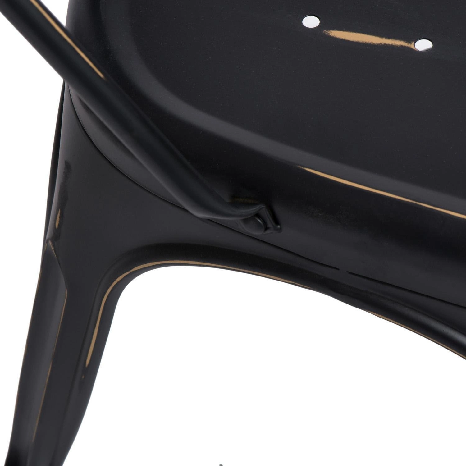 Konstrukcja wykonana w całości z metalu wykończonego w macie, została podkreślona widocznymi elementami spawania, które od razu przynoszą na myśl dźwięki, wydobywające się z hut i starych fabryk. Nogi mebla zostały dodatkowo zabezpieczone gumowymi nakładkami, dzięki czemu pozostaje on stabilny i nie niszczy podłogi podczas przesuwania. Oparcie krzesła posiada charakterystyczny, niepełny kształt podtrzymywany przez cienką, metalową rurkę. Taka rama dodaje z pewnością lekkości, na pozór ciężkiemu industrialnemu meblowi. Krzesło Paris Antique wykonane jest z trwałych materiałów, odpornych na uszkodzenia oraz jest dostępne w kilku atrakcyjnych kolorach, które poszerzają możliwości aranżacyjne, gdyż można je ze sobą dowolnie łączyć i tworzyć niepowtarzalne, przyciągające uwagę kombinacje.