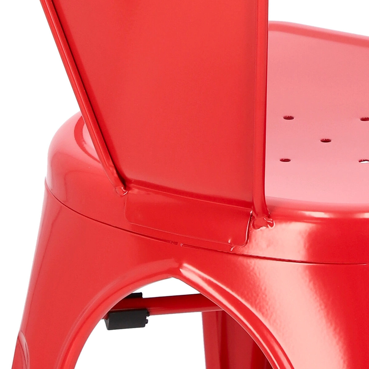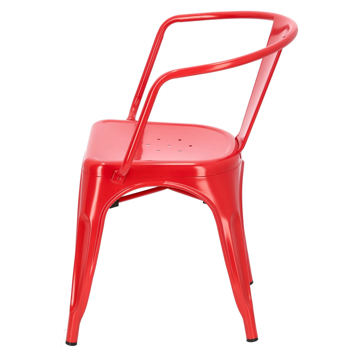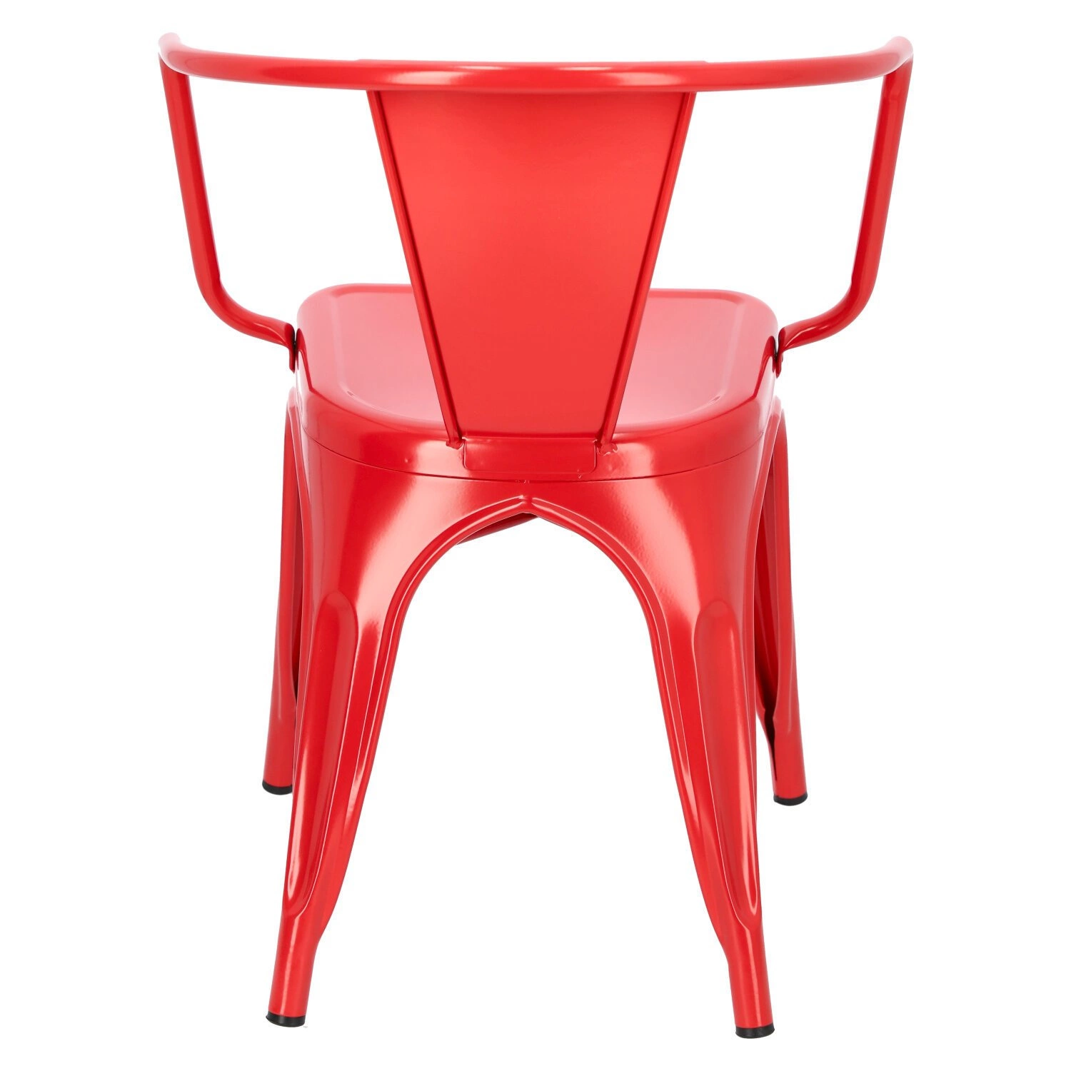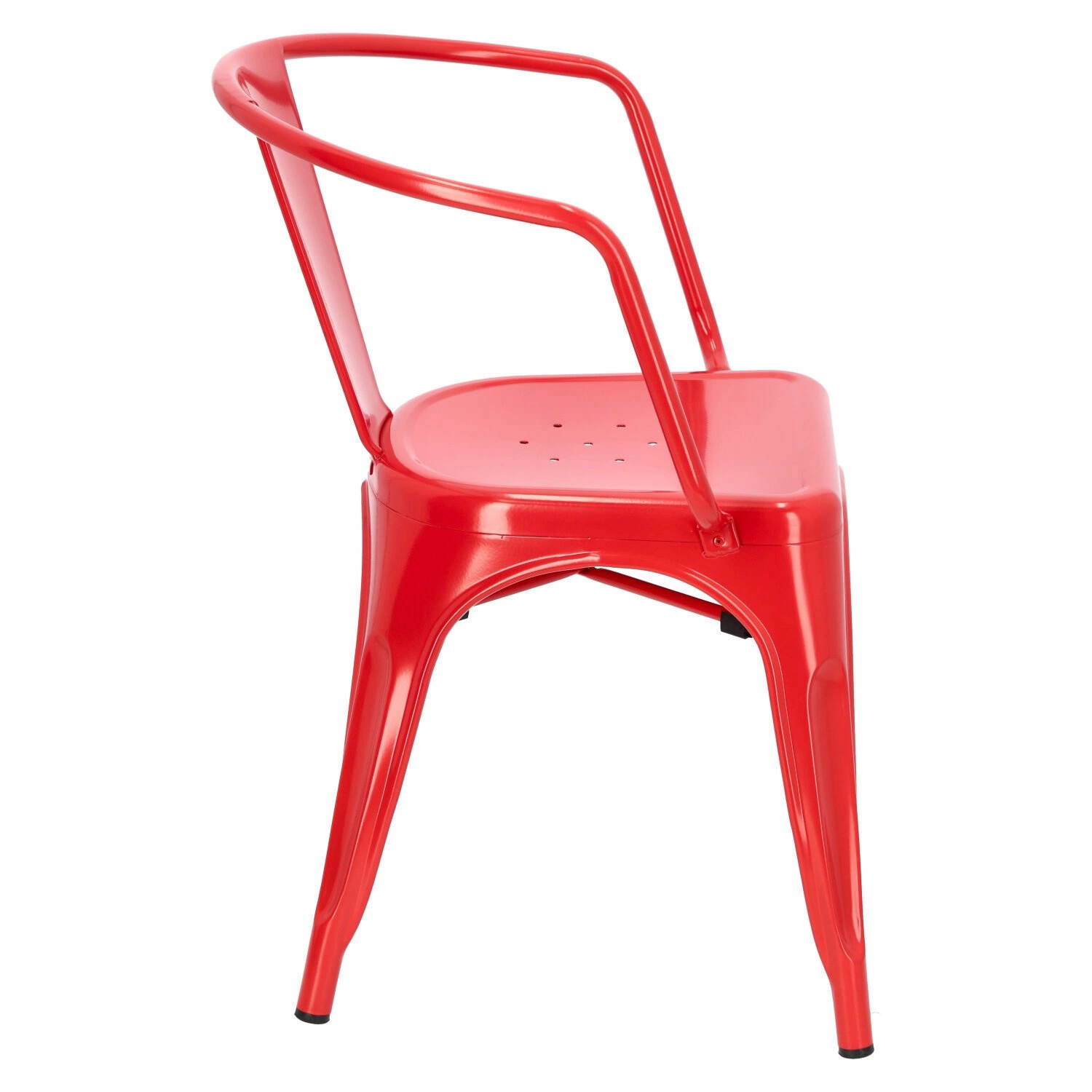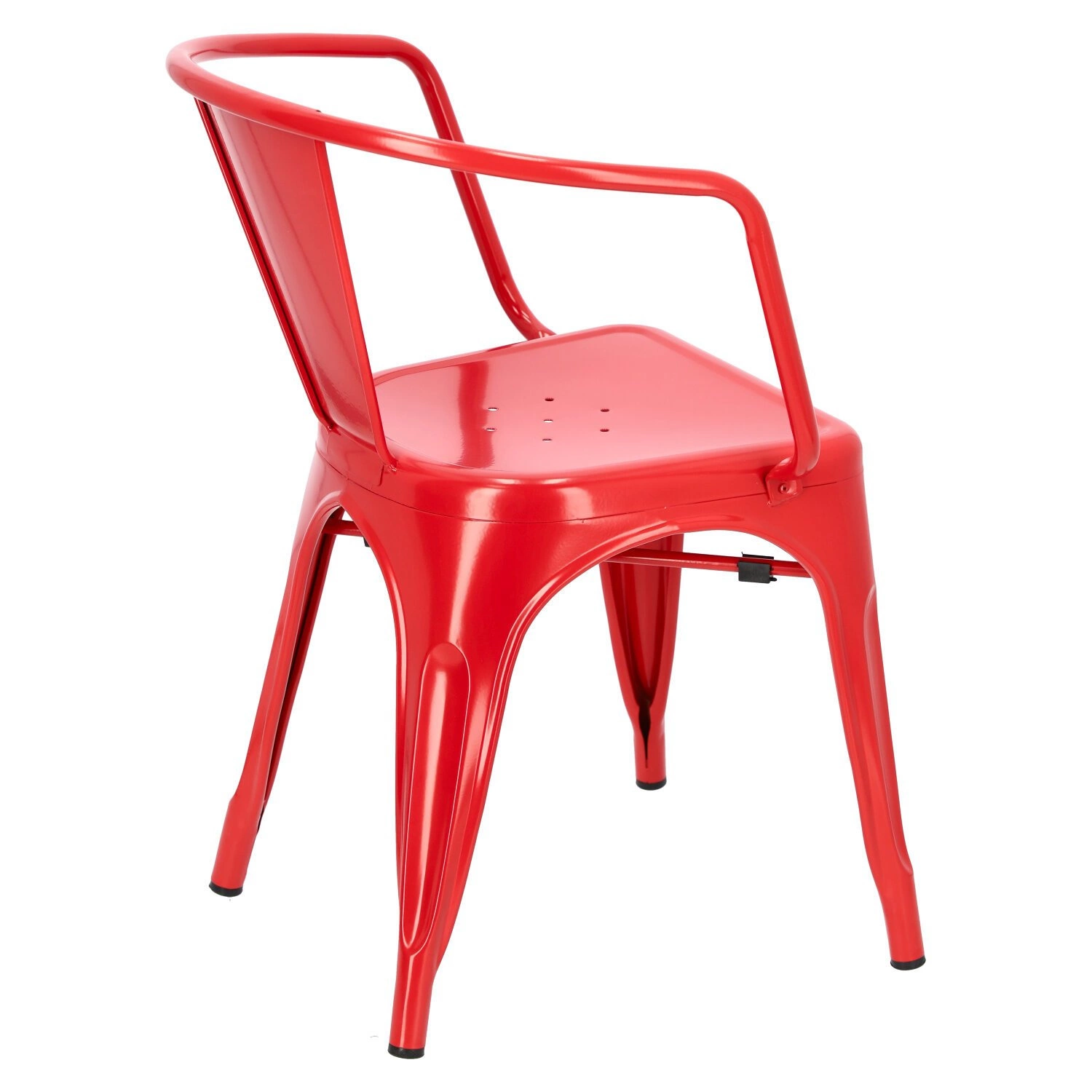 Metalowa konstrukcja, została podkreślona widocznymi elementami spawania, które od razu przynoszą na myśl dźwięki, wydobywające się z hut i starych fabryk. Nogi mebla zostały dodatkowo zabezpieczone gumowymi nakładkami, dzięki czemu pozostaje on stabilny i nie niszczy podłogi podczas przesuwania. Oparcie krzesła posiada charakterystyczny, niepełny kształt podtrzymywany przez cienką, metalową rurkę. Taka rama dodaje z pewnością lekkości, na pozór ciężkiemu industrialnemu meblowi. Krzesło Paris Arms wykonane jest z trwałych materiałów, odpornych na uszkodzenia oraz jest dostępne w kilku atrakcyjnych kolorach, które poszerzają możliwości aranżacyjne, gdyż można je ze sobą dowolnie łączyć i tworzyć niepowtarzalne, przyciągające uwagę kombinacje.
