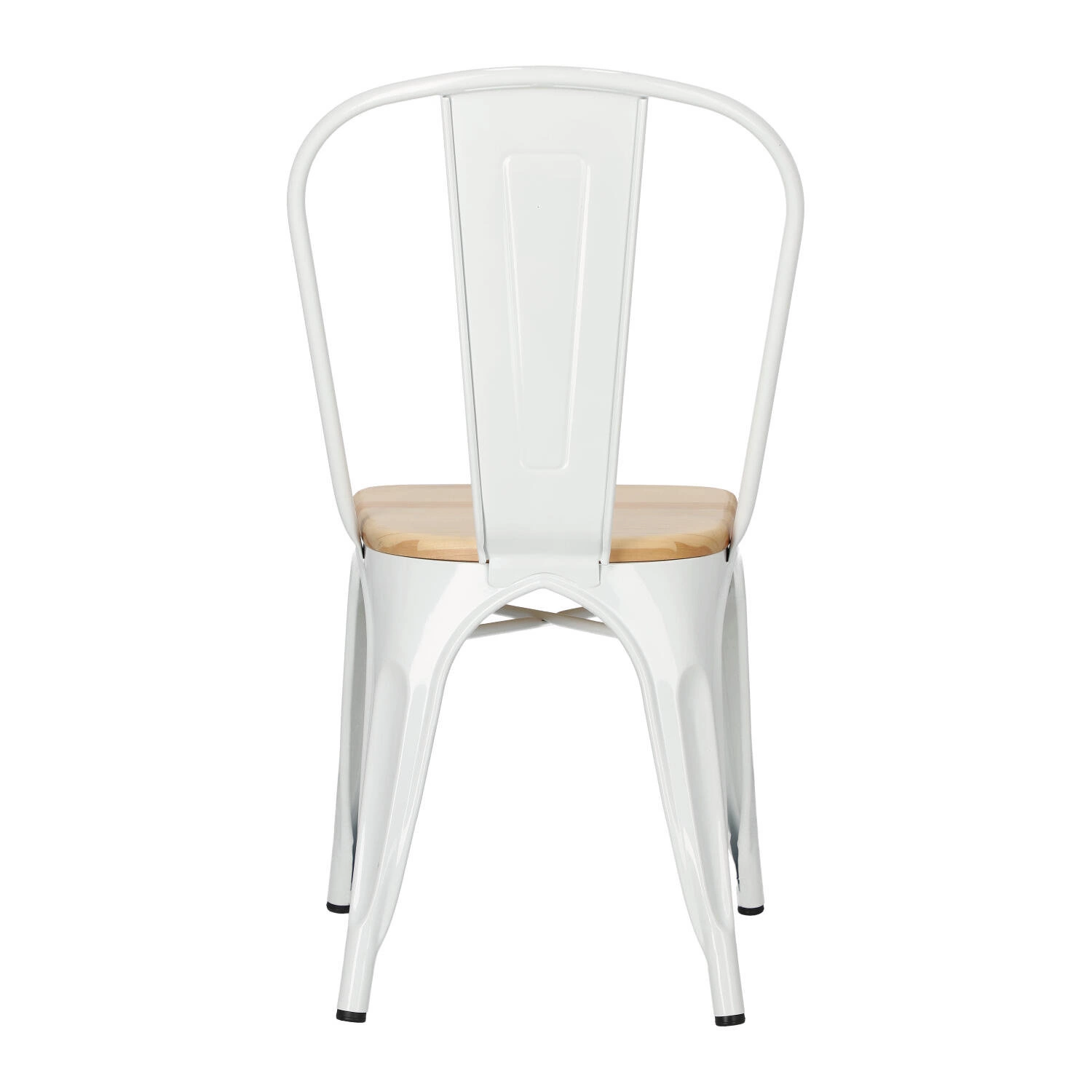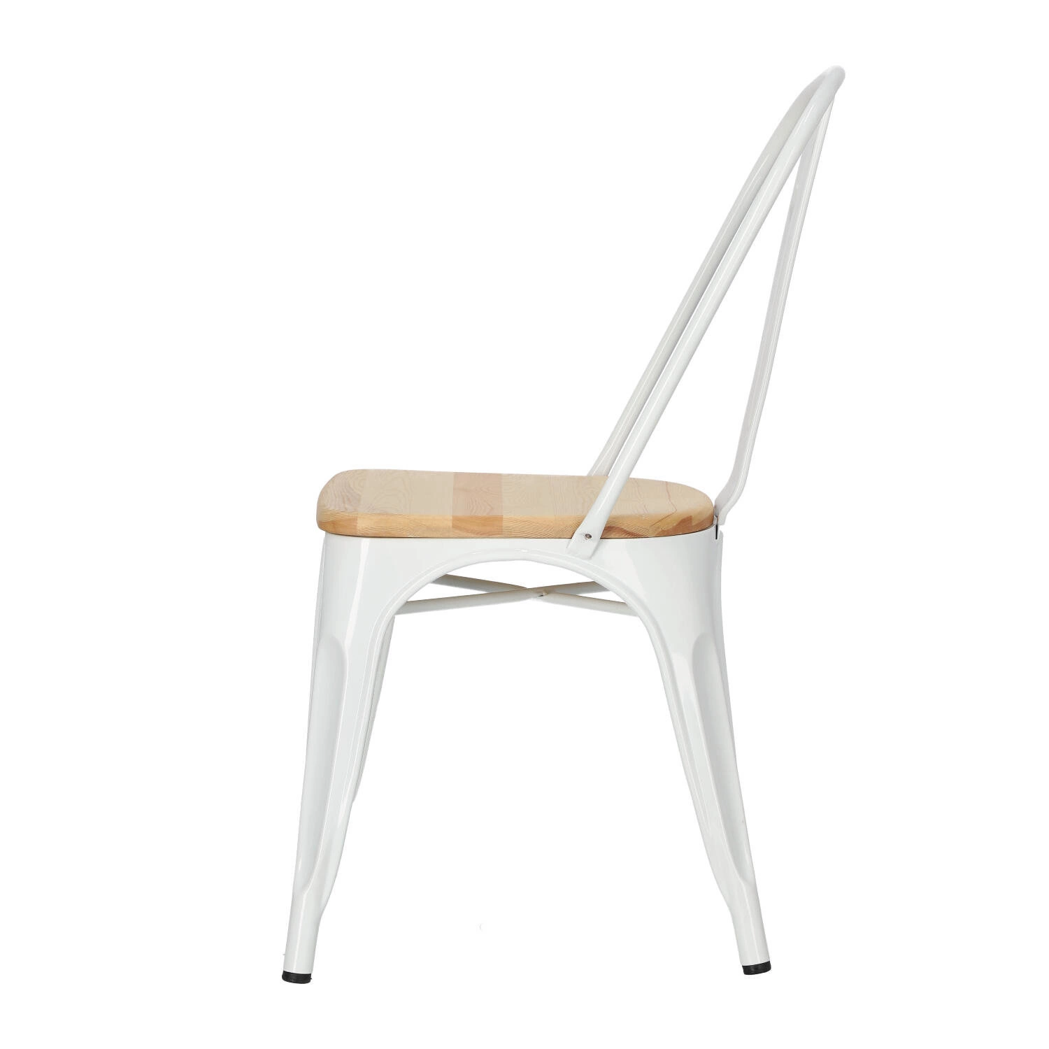 Metalowa konstrukcja, została podkreślona widocznymi elementami spawania, które od razu przynoszą na myśl dźwięki, wydobywające się z hut i starych fabryk. Nogi mebla zostały dodatkowo zabezpieczone gumowymi nakładkami, dzięki czemu pozostaje on stabilny i nie niszczy podłogi podczas przesuwania. Surowy charakter krzesła przełamuje starannie wykonane lakierowane siedzisko z lakierowanego drewna sosnowego. Jest ono dzięki temu gładkie i łatwe do utrzymania w czystości. Oparcie krzesła posiada charakterystyczny, niepełny kształt podtrzymywany przez cienką, metalową rurkę. Taka rama dodaje z pewnością lekkości, na pozór ciężkiemu industrialnemu meblowi. Krzesło Paris Wood wykonane jest z trwałych materiałów, odpornych na uszkodzenia oraz jest dostępne w kilku atrakcyjnych kolorach, które poszerzają możliwości aranżacyjne, gdyż można je ze sobą dowolnie łączyć i tworzyć niepowtarzalne, przyciągające uwagę kombinacje.