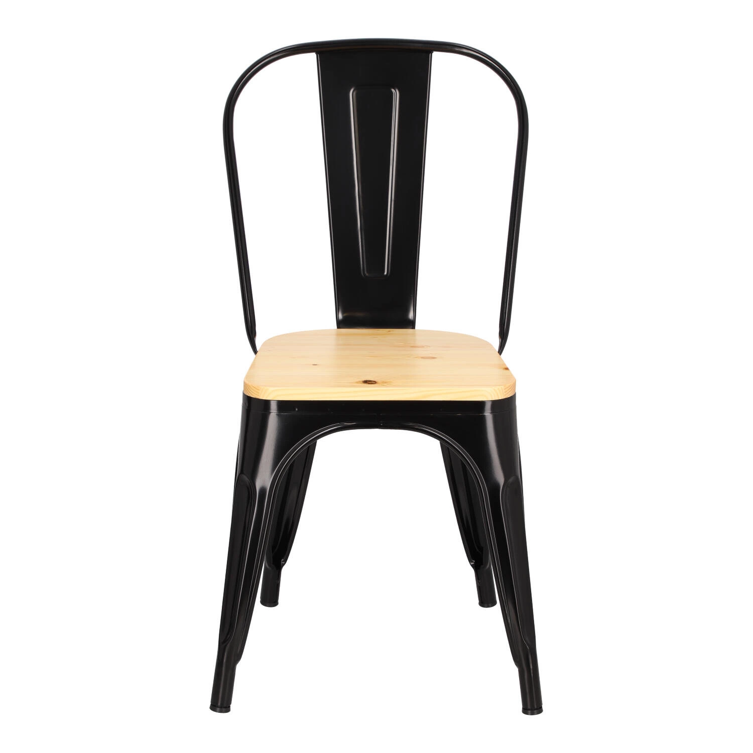 Metalowa konstrukcja, została podkreślona widocznymi elementami spawania, które od razu przynoszą na myśl dźwięki, wydobywające się z hut i starych fabryk. Nogi mebla zostały dodatkowo zabezpieczone gumowymi nakładkami, dzięki czemu pozostaje on stabilny i nie niszczy podłogi podczas przesuwania. Surowy charakter krzesła przełamuje starannie wykonane lakierowane siedzisko z lakierowanego drewna sosnowego. Jest ono dzięki temu gładkie i łatwe do utrzymania w czystości. Oparcie krzesła posiada charakterystyczny, niepełny kształt podtrzymywany przez cienką, metalową rurkę. Taka rama dodaje z pewnością lekkości, na pozór ciężkiemu industrialnemu meblowi. Krzesło Paris Wood wykonane jest z trwałych materiałów, odpornych na uszkodzenia oraz jest dostępne w kilku atrakcyjnych kolorach, które poszerzają możliwości aranżacyjne, gdyż można je ze sobą dowolnie łączyć i tworzyć niepowtarzalne, przyciągające uwagę kombinacje.