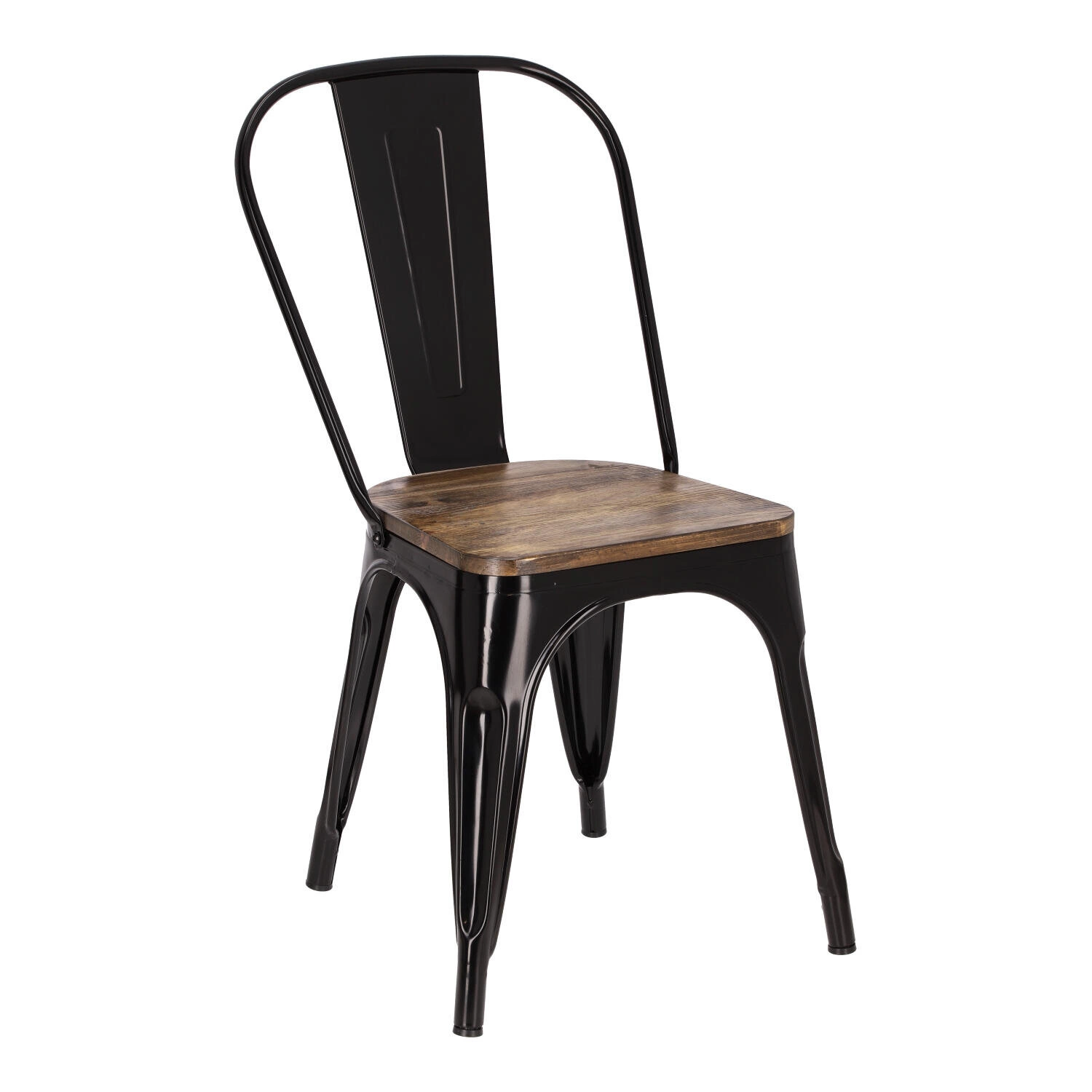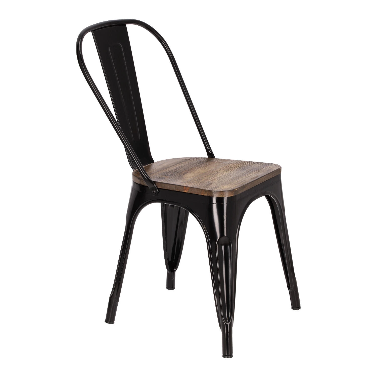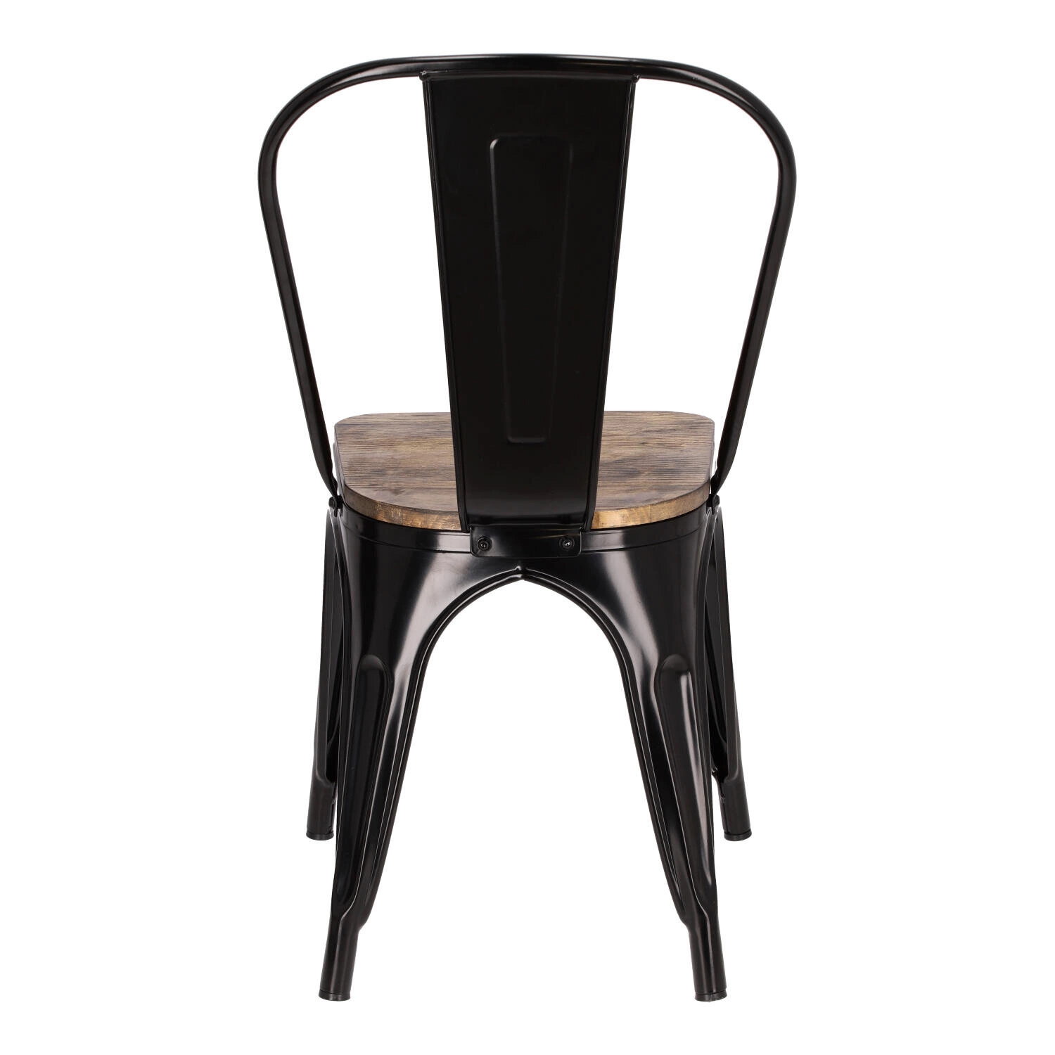 Metalowa konstrukcja, została podkreślona widocznymi elementami spawania, które od razu przynoszą na myśl dźwięki, wydobywające się z hut i starych fabryk. Nogi mebla zostały dodatkowo zabezpieczone gumowymi nakładkami, dzięki czemu pozostaje on stabilny i nie niszczy podłogi podczas przesuwania. Surowy charakter krzesła przełamuje starannie wykonane lakierowane siedzisko z lakierowanego drewna sosnowego wybarwionego na ciemny kolor. Jest ono dzięki temu gładkie i łatwe do utrzymania w czystości. Oparcie krzesła posiada charakterystyczny, niepełny kształt podtrzymywany przez cienką, metalową rurkę. Taka rama dodaje z pewnością lekkości, na pozór ciężkiemu industrialnemu meblowi. Krzesło Paris Wood wykonane jest z trwałych materiałów, odpornych na uszkodzenia oraz jest dostępne w kilku atrakcyjnych kolorach, które poszerzają możliwości aranżacyjne, gdyż można je ze sobą dowolnie łączyć i tworzyć niepowtarzalne, przyciągające uwagę kombinacje.