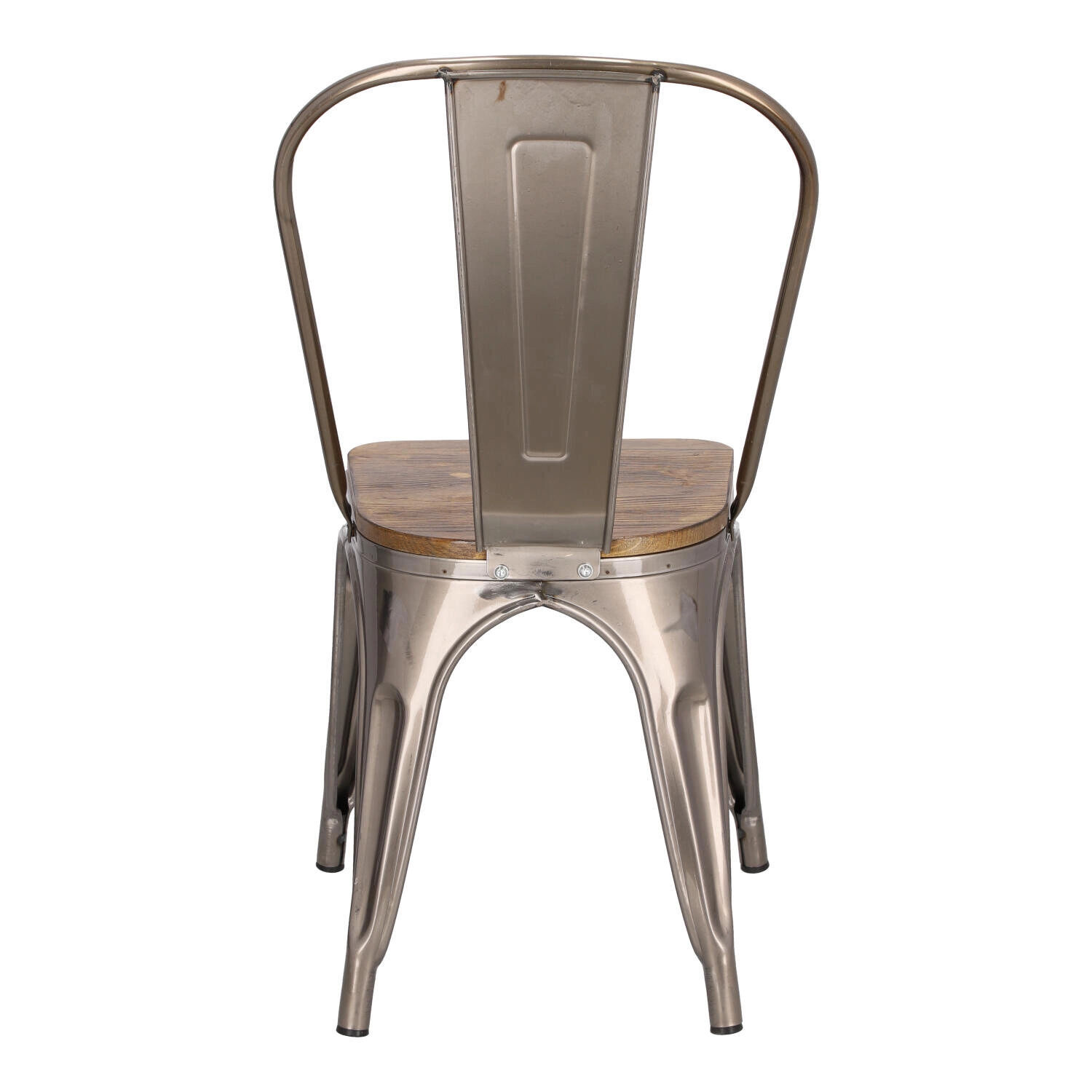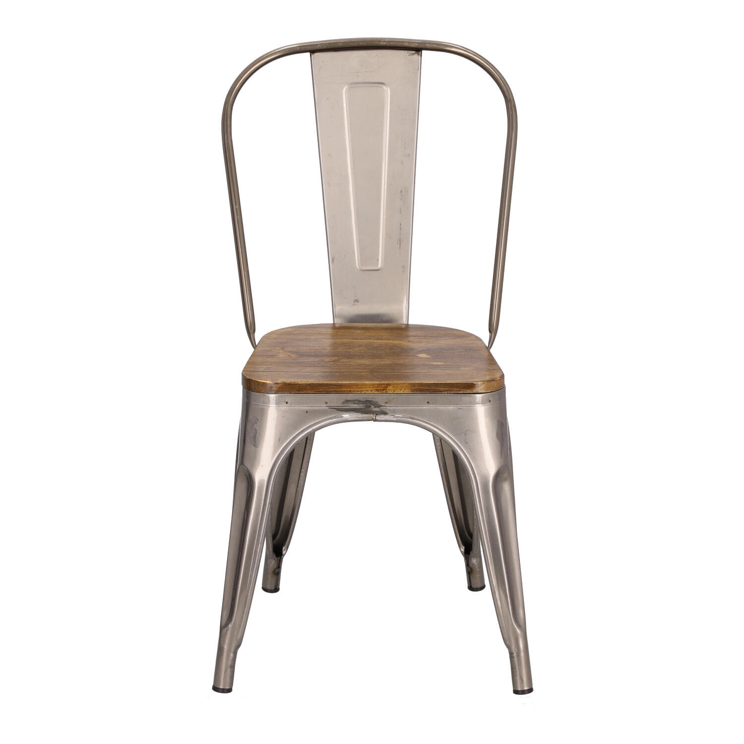 Metalowa konstrukcja, została podkreślona widocznymi elementami spawania, które od razu przynoszą na myśl dźwięki, wydobywające się z hut i starych fabryk. Nogi mebla zostały dodatkowo zabezpieczone gumowymi nakładkami, dzięki czemu pozostaje on stabilny i nie niszczy podłogi podczas przesuwania. Surowy charakter krzesła przełamuje starannie wykonane lakierowane siedzisko z lakierowanego drewna sosnowego wybarwionego na ciemny kolor. Jest ono dzięki temu gładkie i łatwe do utrzymania w czystości. Oparcie krzesła posiada charakterystyczny, niepełny kształt podtrzymywany przez cienką, metalową rurkę. Taka rama dodaje z pewnością lekkości, na pozór ciężkiemu industrialnemu meblowi. Krzesło Paris Wood wykonane jest z trwałych materiałów, odpornych na uszkodzenia oraz jest dostępne w kilku atrakcyjnych kolorach, które poszerzają możliwości aranżacyjne, gdyż można je ze sobą dowolnie łączyć i tworzyć niepowtarzalne, przyciągające uwagę kombinacje.