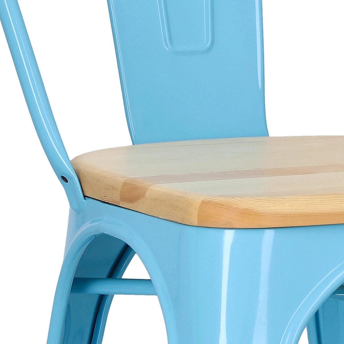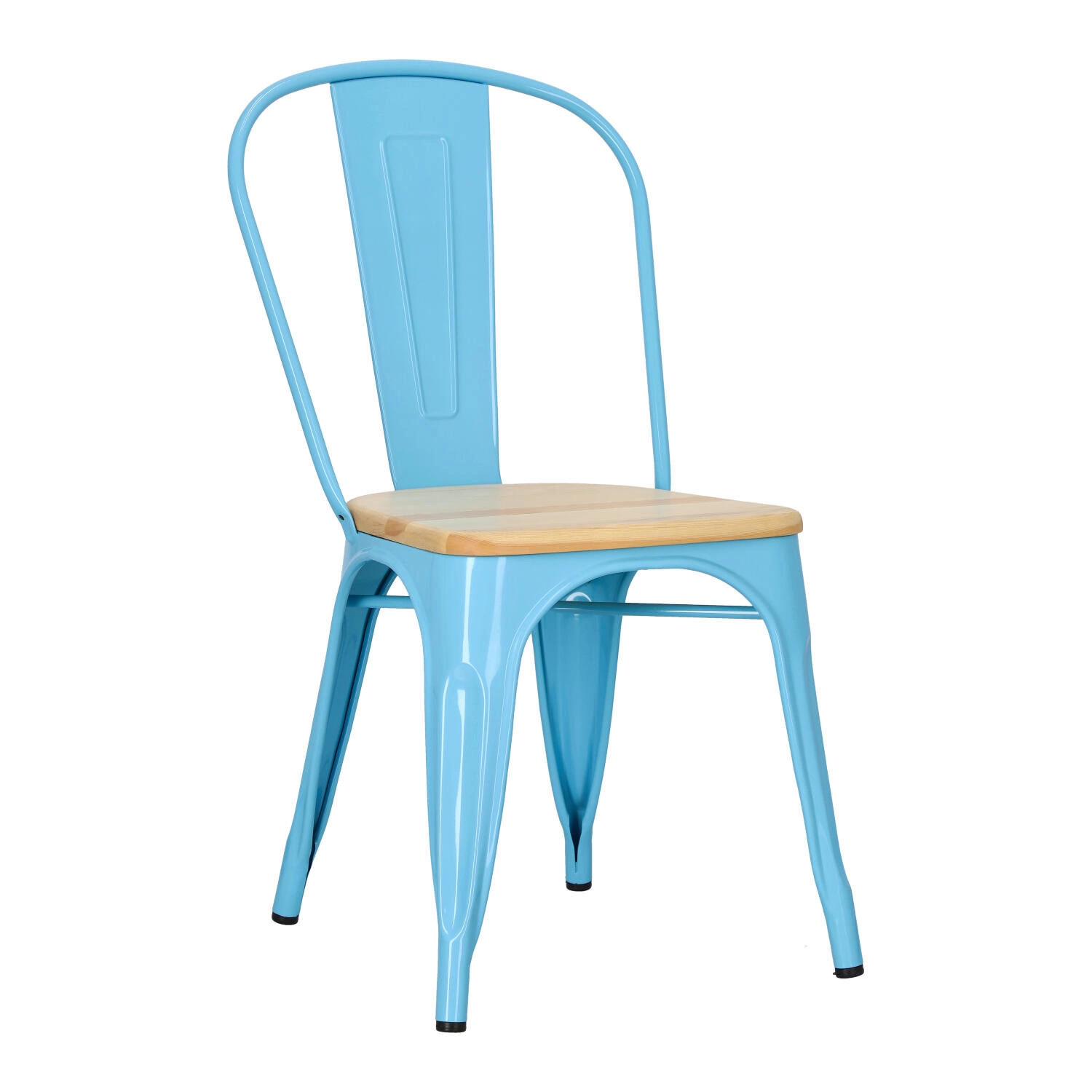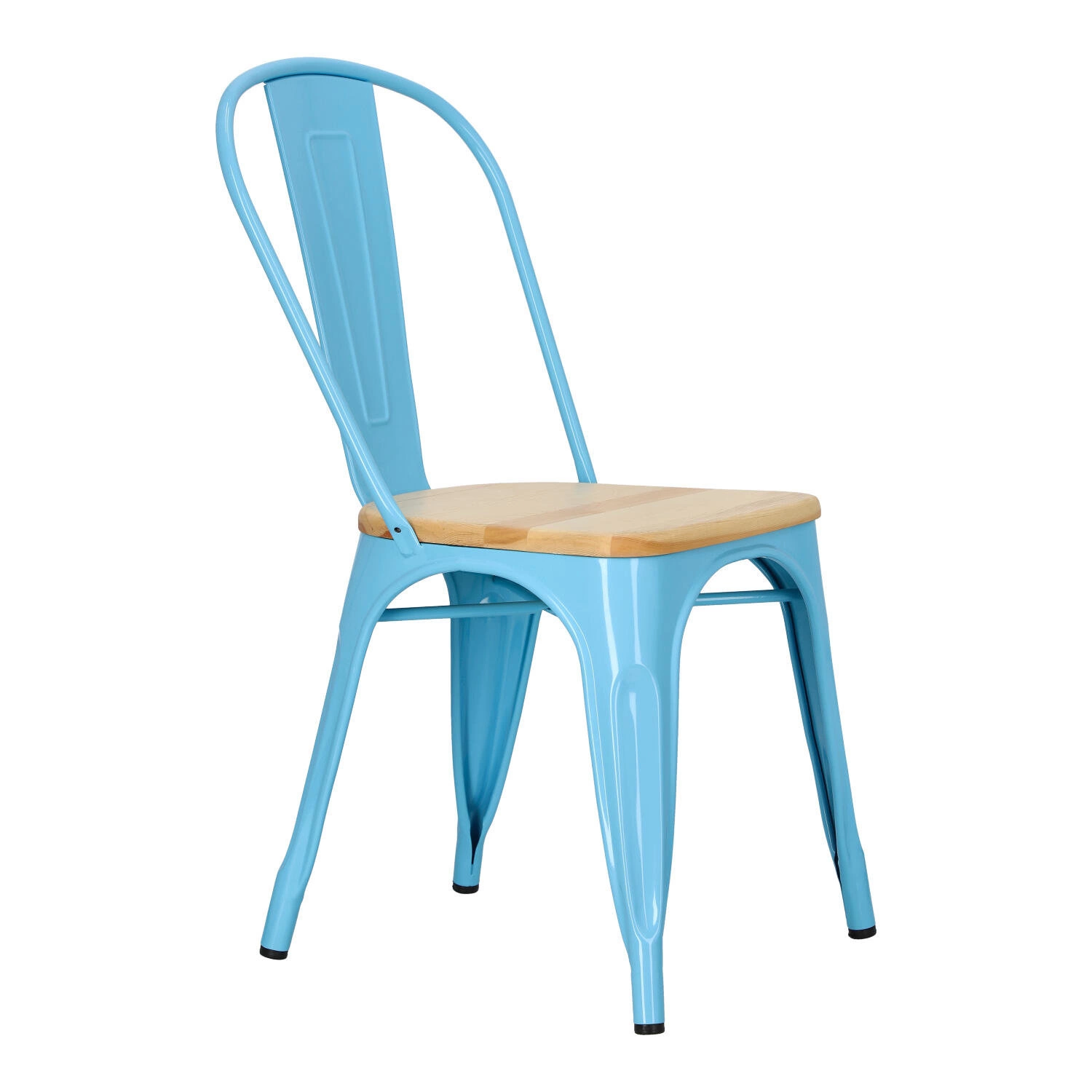 Metalowa konstrukcja, została podkreślona widocznymi elementami spawania, które od razu przynoszą na myśl dźwięki, wydobywające się z hut i starych fabryk. Nogi mebla zostały dodatkowo zabezpieczone gumowymi nakładkami, dzięki czemu pozostaje on stabilny i nie niszczy podłogi podczas przesuwania. Surowy charakter krzesła przełamuje starannie wykonane lakierowane siedzisko z lakierowanego drewna sosnowego. Jest ono dzięki temu gładkie i łatwe do utrzymania w czystości. Oparcie krzesła posiada charakterystyczny, niepełny kształt podtrzymywany przez cienką, metalową rurkę. Taka rama dodaje z pewnością lekkości, na pozór ciężkiemu industrialnemu meblowi. Krzesło Paris Wood wykonane jest z trwałych materiałów, odpornych na uszkodzenia oraz jest dostępne w kilku atrakcyjnych kolorach, które poszerzają możliwości aranżacyjne, gdyż można je ze sobą dowolnie łączyć i tworzyć niepowtarzalne, przyciągające uwagę kombinacje.