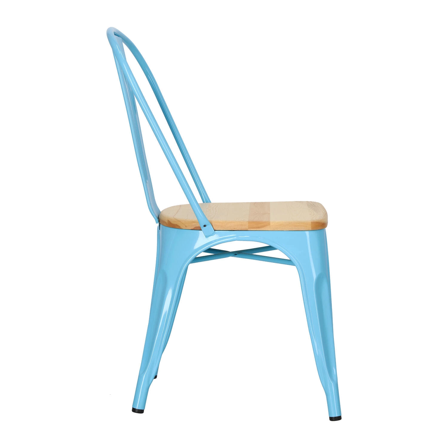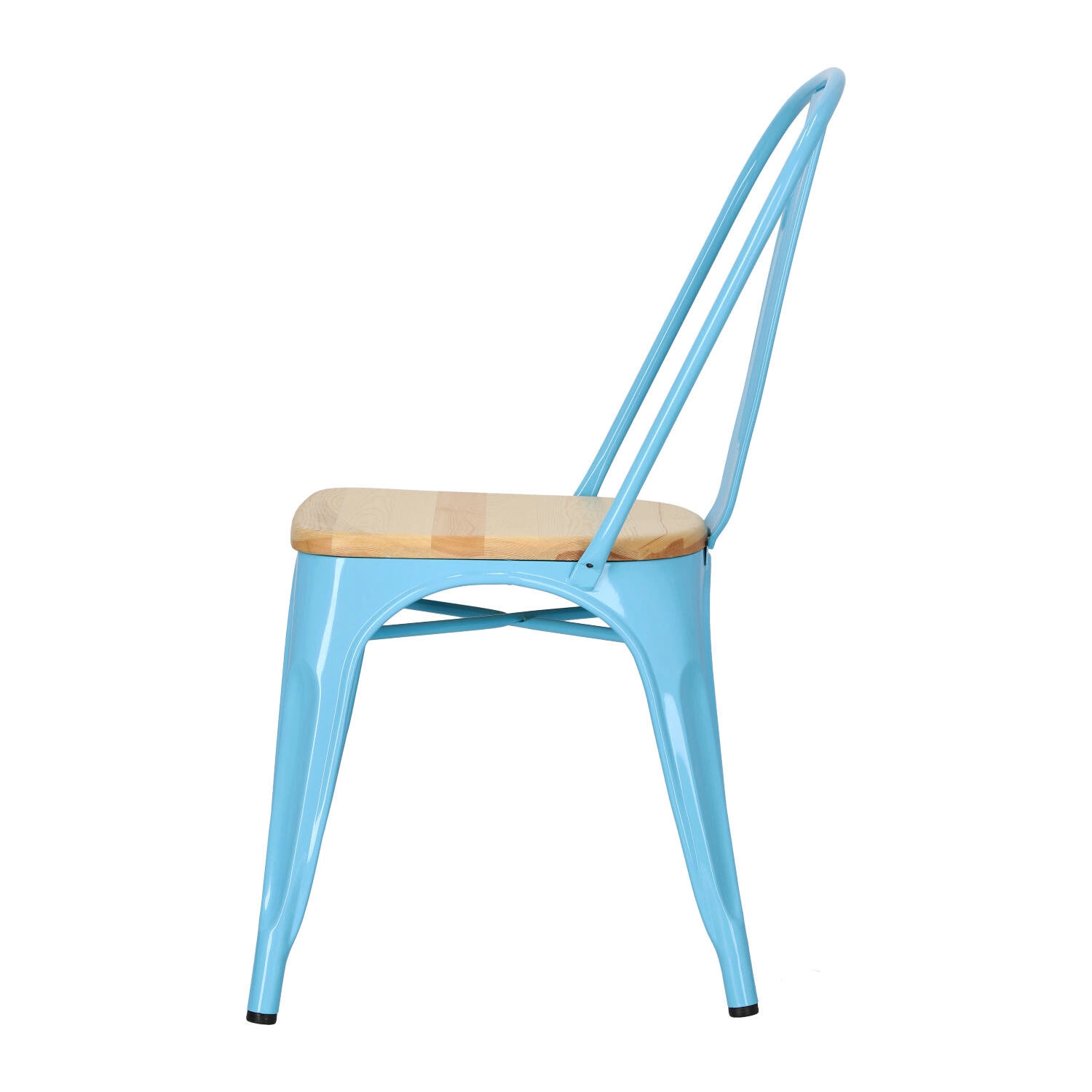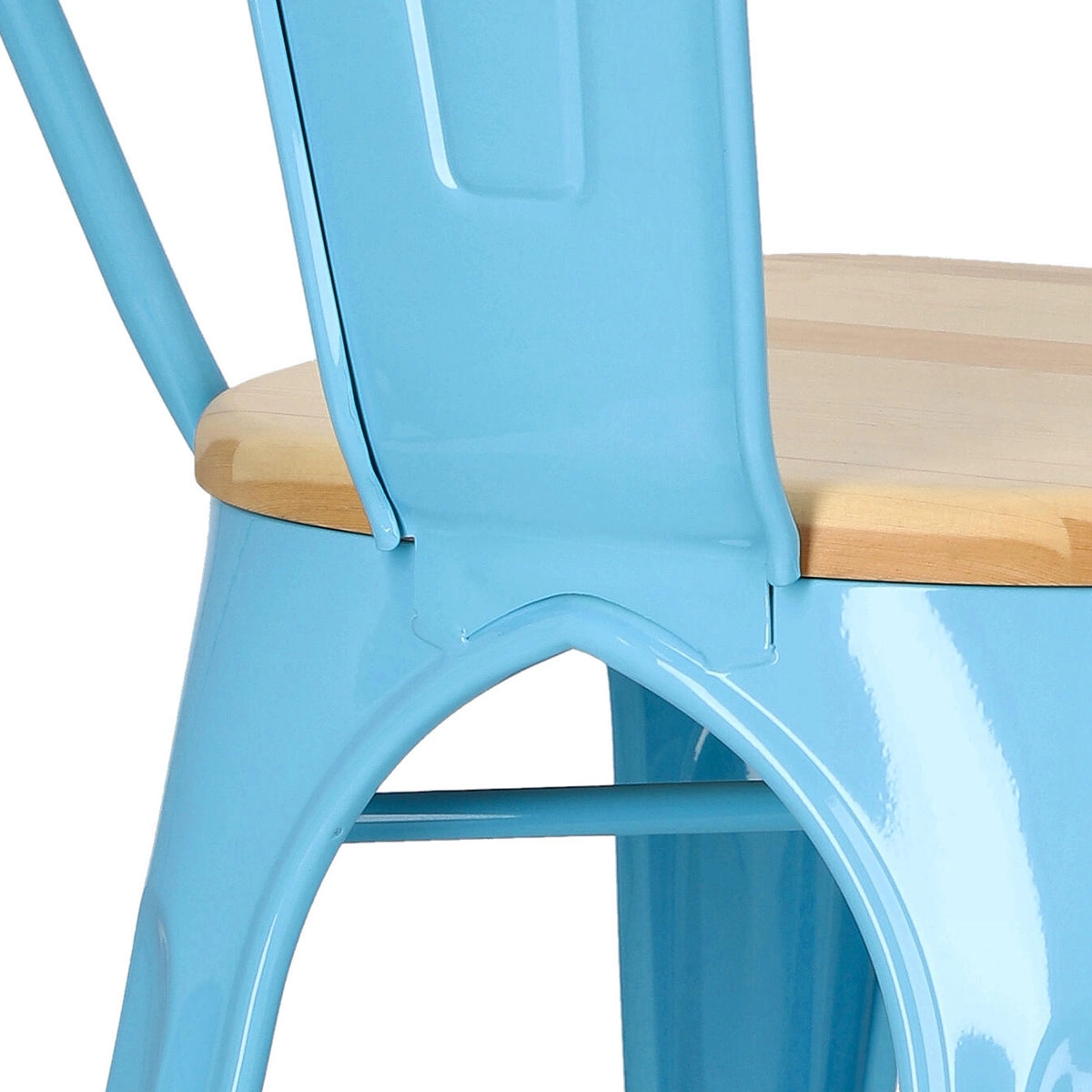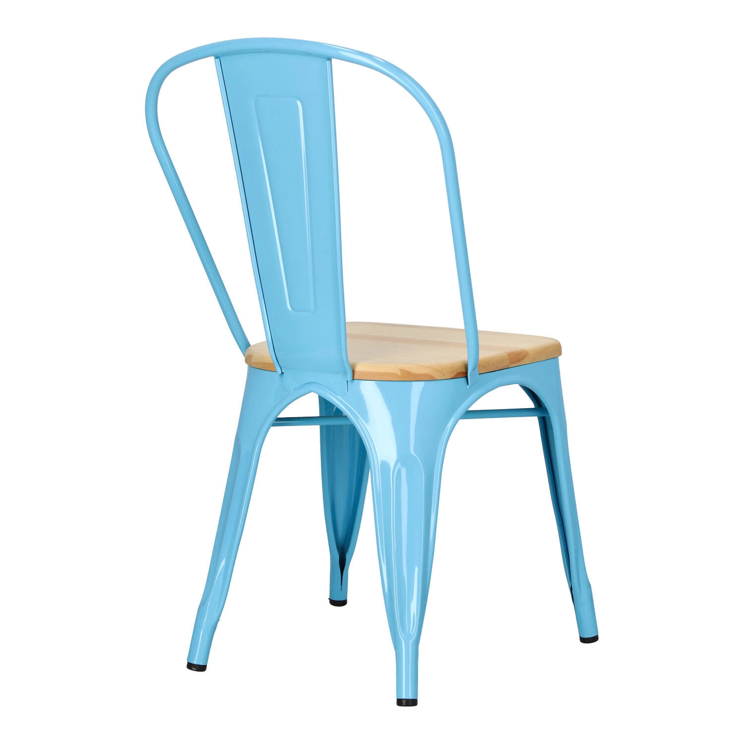 Metalowa konstrukcja, została podkreślona widocznymi elementami spawania, które od razu przynoszą na myśl dźwięki, wydobywające się z hut i starych fabryk. Nogi mebla zostały dodatkowo zabezpieczone gumowymi nakładkami, dzięki czemu pozostaje on stabilny i nie niszczy podłogi podczas przesuwania. Surowy charakter krzesła przełamuje starannie wykonane lakierowane siedzisko z lakierowanego drewna sosnowego. Jest ono dzięki temu gładkie i łatwe do utrzymania w czystości. Oparcie krzesła posiada charakterystyczny, niepełny kształt podtrzymywany przez cienką, metalową rurkę. Taka rama dodaje z pewnością lekkości, na pozór ciężkiemu industrialnemu meblowi. Krzesło Paris Wood wykonane jest z trwałych materiałów, odpornych na uszkodzenia oraz jest dostępne w kilku atrakcyjnych kolorach, które poszerzają możliwości aranżacyjne, gdyż można je ze sobą dowolnie łączyć i tworzyć niepowtarzalne, przyciągające uwagę kombinacje.