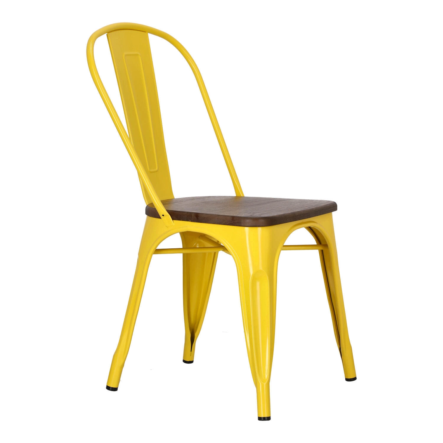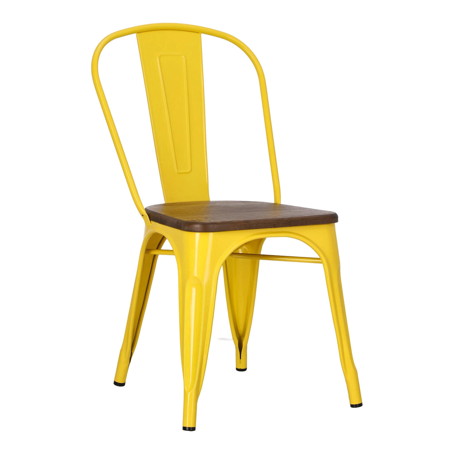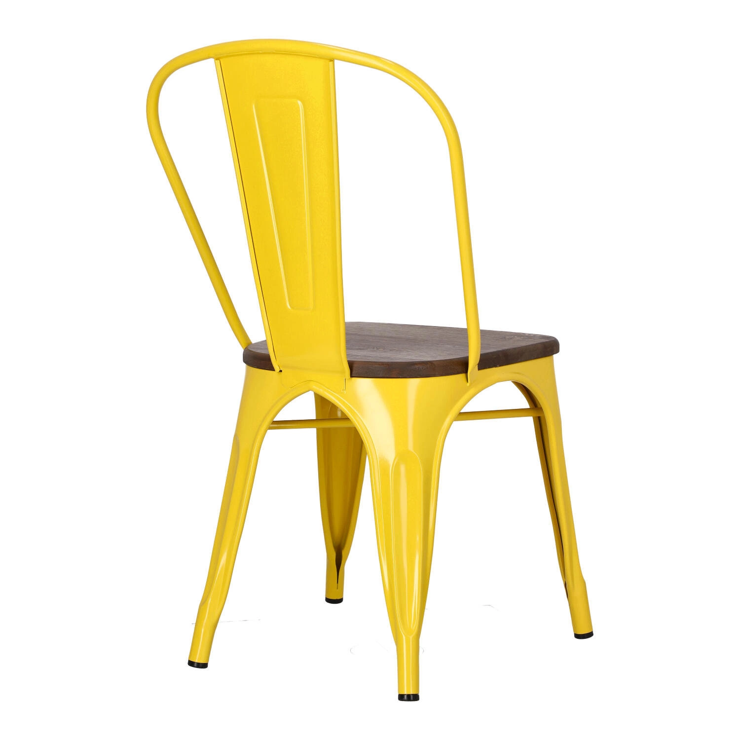 Metalowa konstrukcja, została podkreślona widocznymi elementami spawania, które od razu przynoszą na myśl dźwięki, wydobywające się z hut i starych fabryk. Nogi mebla zostały dodatkowo zabezpieczone gumowymi nakładkami, dzięki czemu pozostaje on stabilny i nie niszczy podłogi podczas przesuwania. Surowy charakter krzesła przełamuje starannie wykonane lakierowane siedzisko z lakierowanego drewna sosnowego wybarwionego na ciemny kolor. Jest ono dzięki temu gładkie i łatwe do utrzymania w czystości. Oparcie krzesła posiada charakterystyczny, niepełny kształt podtrzymywany przez cienką, metalową rurkę. Taka rama dodaje z pewnością lekkości, na pozór ciężkiemu industrialnemu meblowi. Krzesło Paris Wood wykonane jest z trwałych materiałów, odpornych na uszkodzenia oraz jest dostępne w kilku atrakcyjnych kolorach, które poszerzają możliwości aranżacyjne, gdyż można je ze sobą dowolnie łączyć i tworzyć niepowtarzalne, przyciągające uwagę kombinacje.