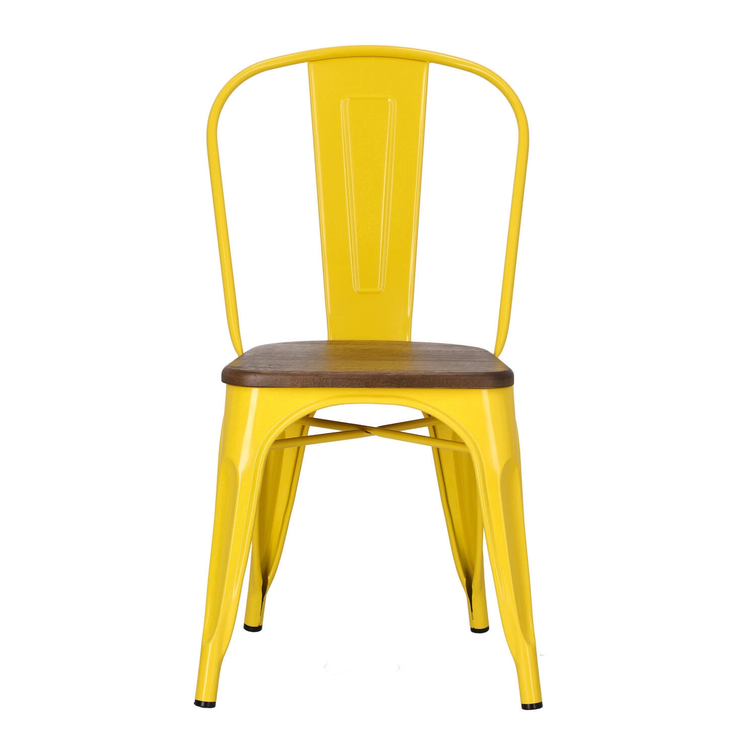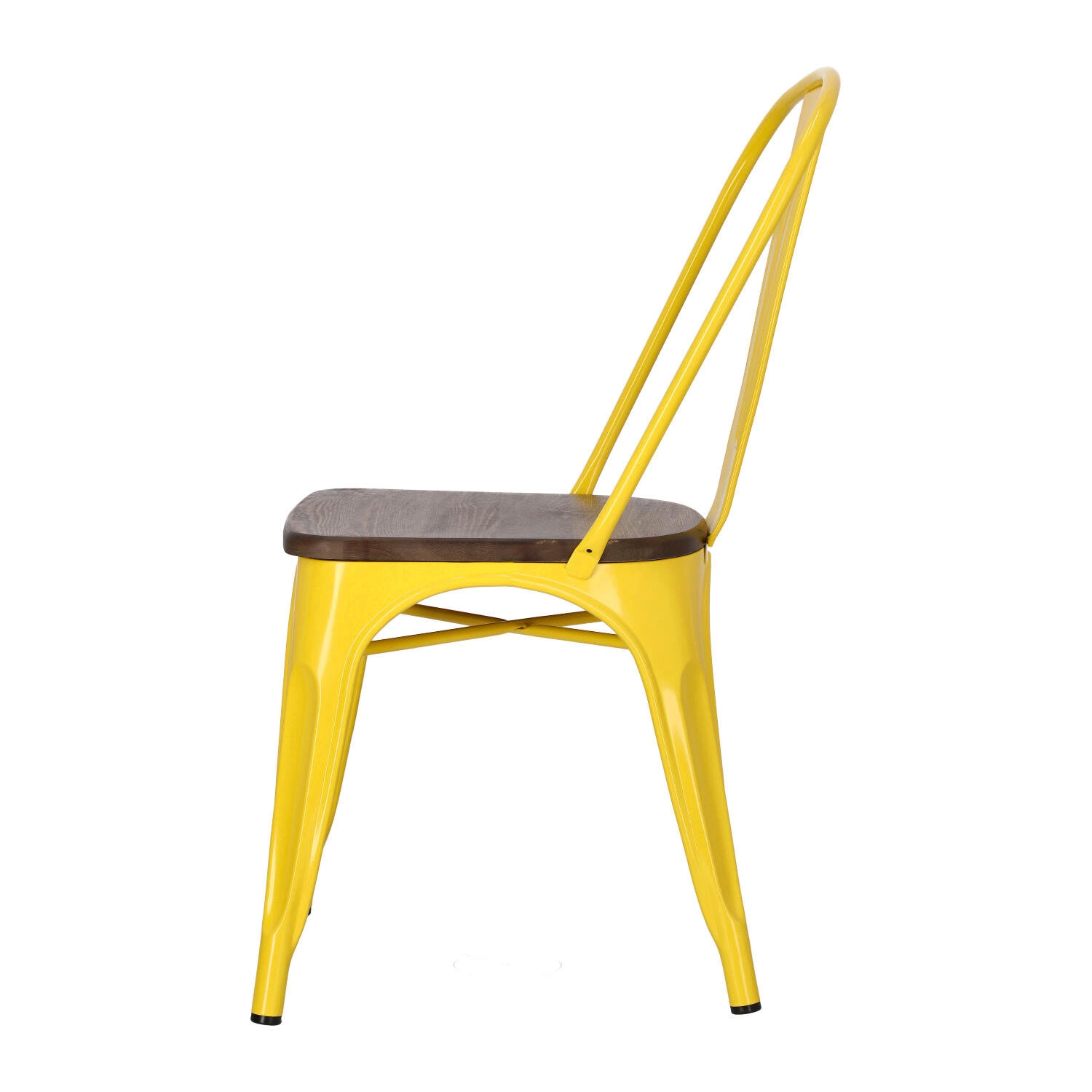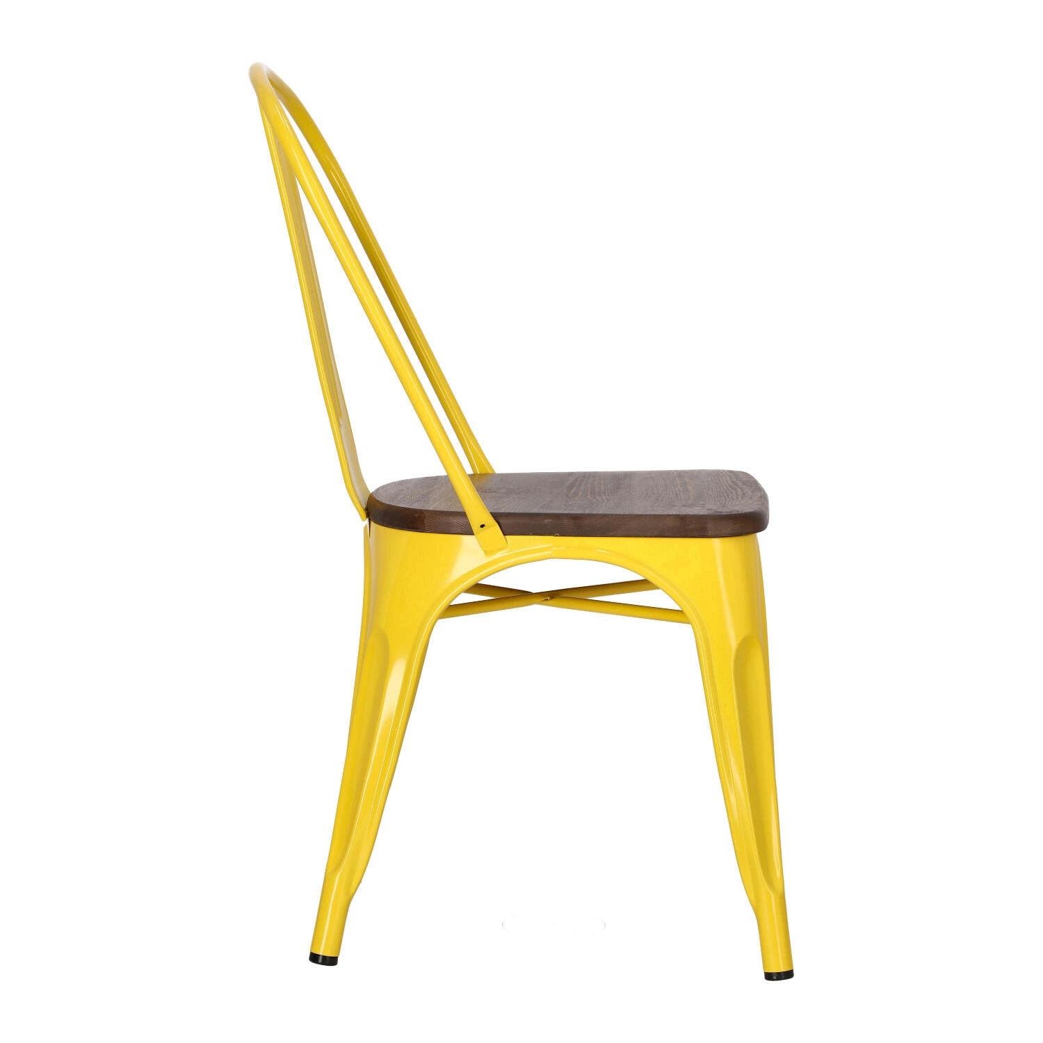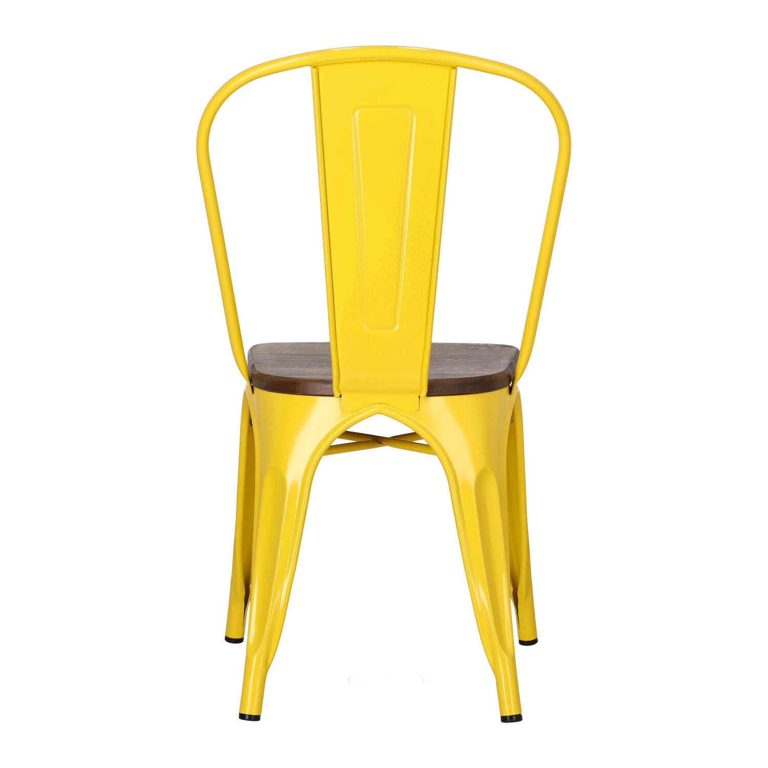 Metalowa konstrukcja, została podkreślona widocznymi elementami spawania, które od razu przynoszą na myśl dźwięki, wydobywające się z hut i starych fabryk. Nogi mebla zostały dodatkowo zabezpieczone gumowymi nakładkami, dzięki czemu pozostaje on stabilny i nie niszczy podłogi podczas przesuwania. Surowy charakter krzesła przełamuje starannie wykonane lakierowane siedzisko z lakierowanego drewna sosnowego wybarwionego na ciemny kolor. Jest ono dzięki temu gładkie i łatwe do utrzymania w czystości. Oparcie krzesła posiada charakterystyczny, niepełny kształt podtrzymywany przez cienką, metalową rurkę. Taka rama dodaje z pewnością lekkości, na pozór ciężkiemu industrialnemu meblowi. Krzesło Paris Wood wykonane jest z trwałych materiałów, odpornych na uszkodzenia oraz jest dostępne w kilku atrakcyjnych kolorach, które poszerzają możliwości aranżacyjne, gdyż można je ze sobą dowolnie łączyć i tworzyć niepowtarzalne, przyciągające uwagę kombinacje.