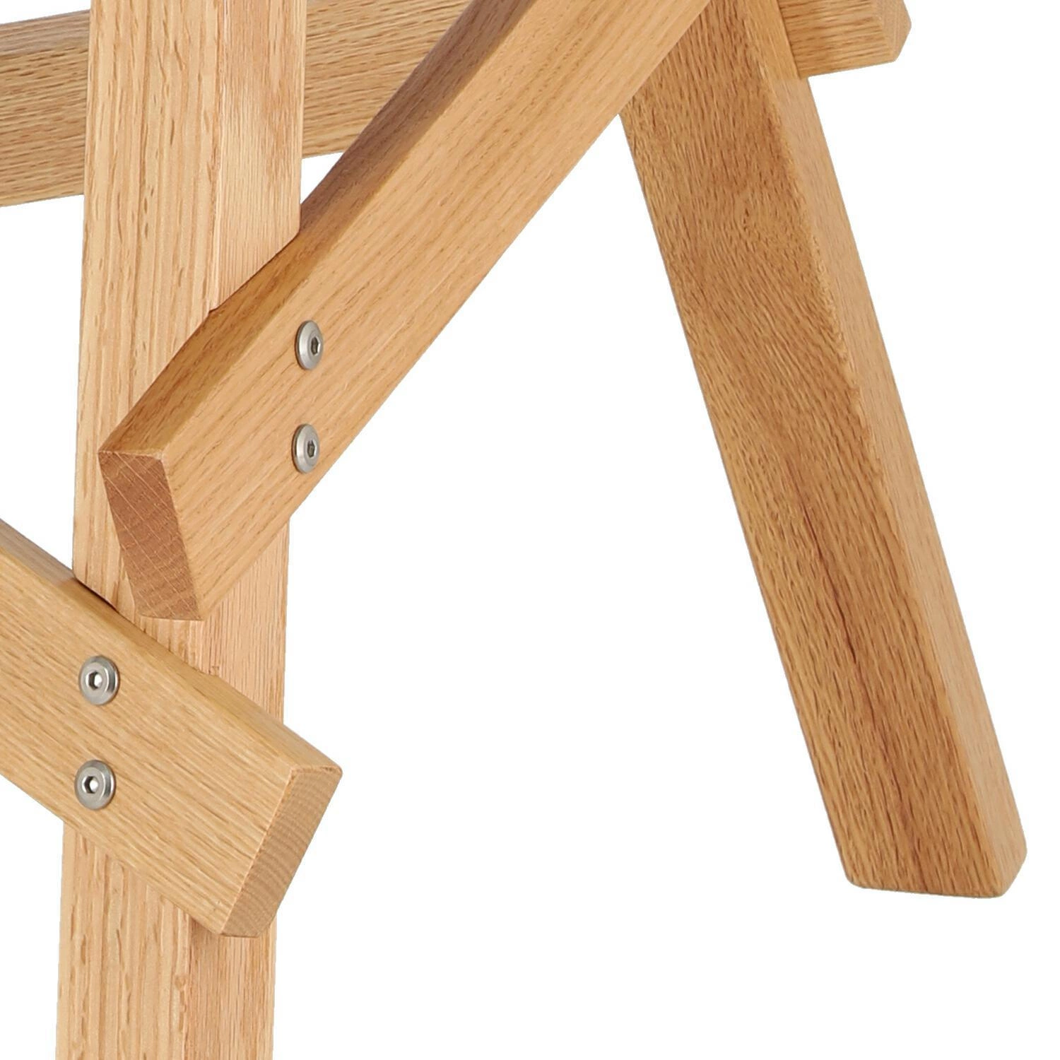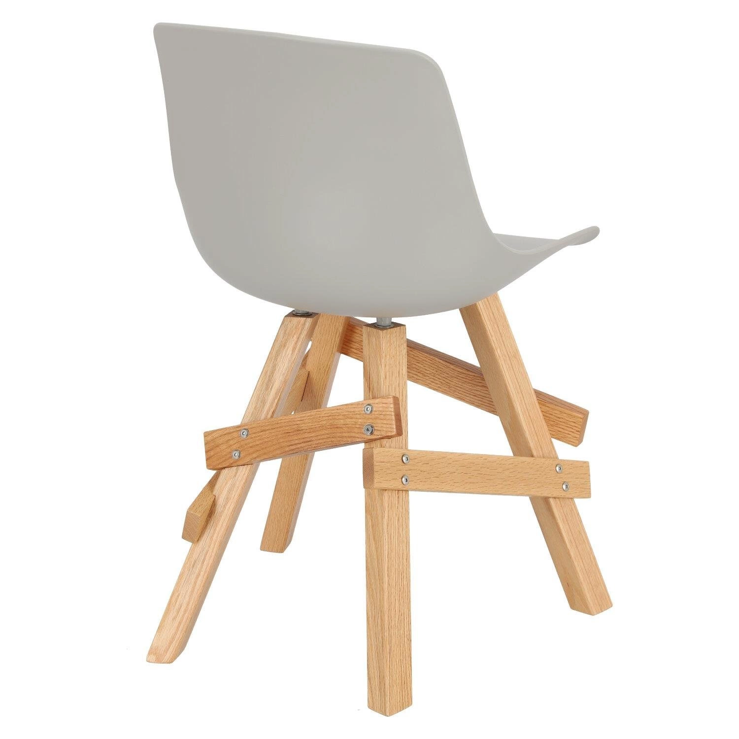Podstawę krzesła stanowią nogi z litego drewna dębowego. Ciekawym rozwiązaniem są drewniane wsporniki łączące ze sobą nogi. Drewniane listewki zostały przykręcone pod kątem.