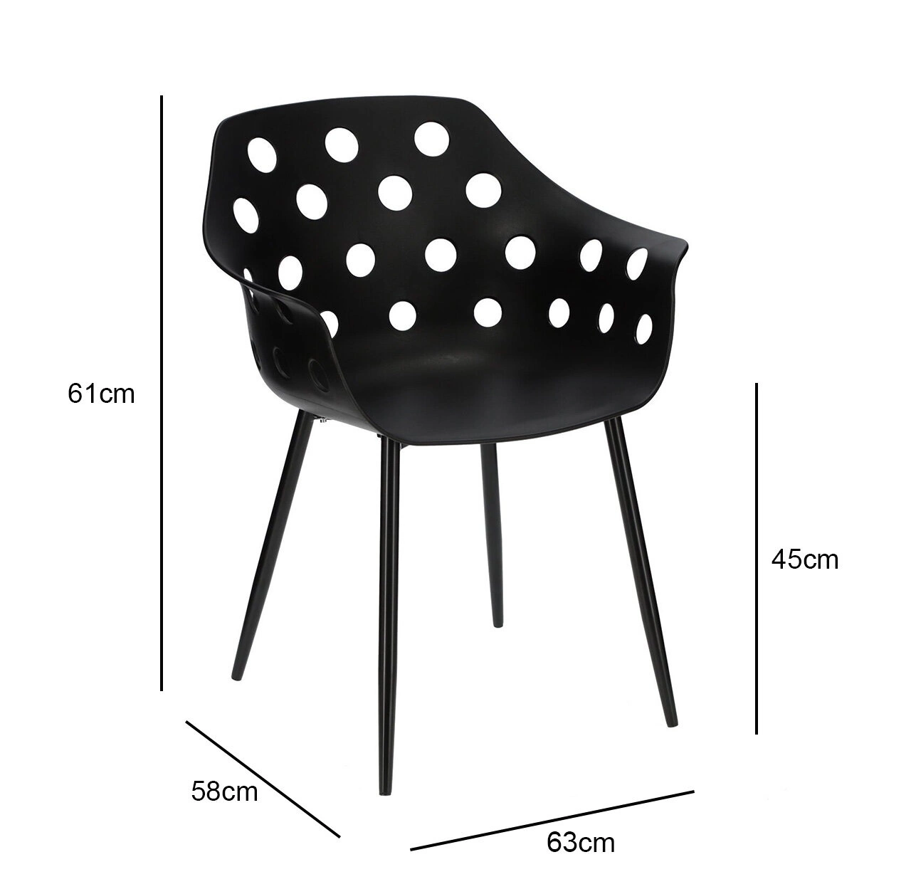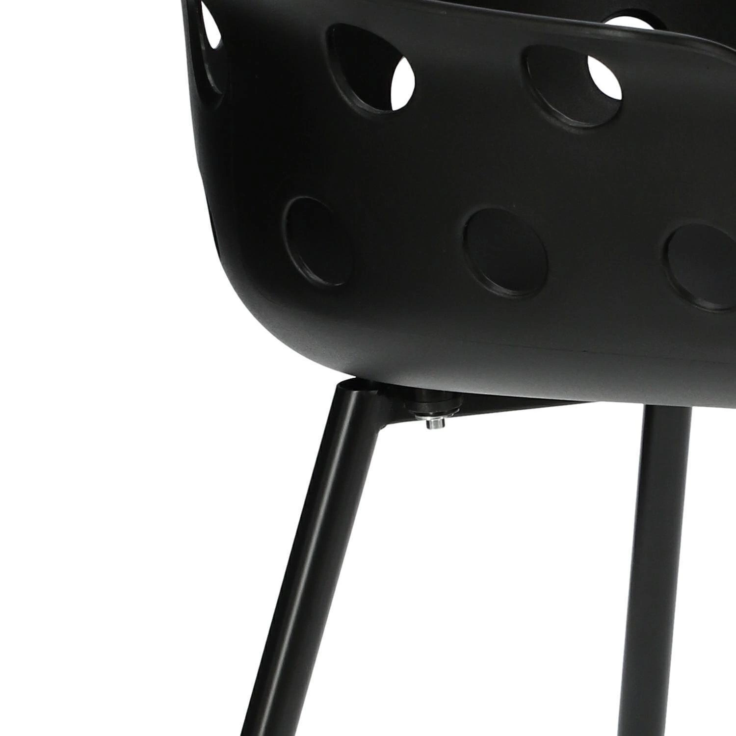 Podstawą krzesła są metalowe, malowane proszkowo nogi. Nogi również w czarnym kolorze współgrają z siedziskiem.