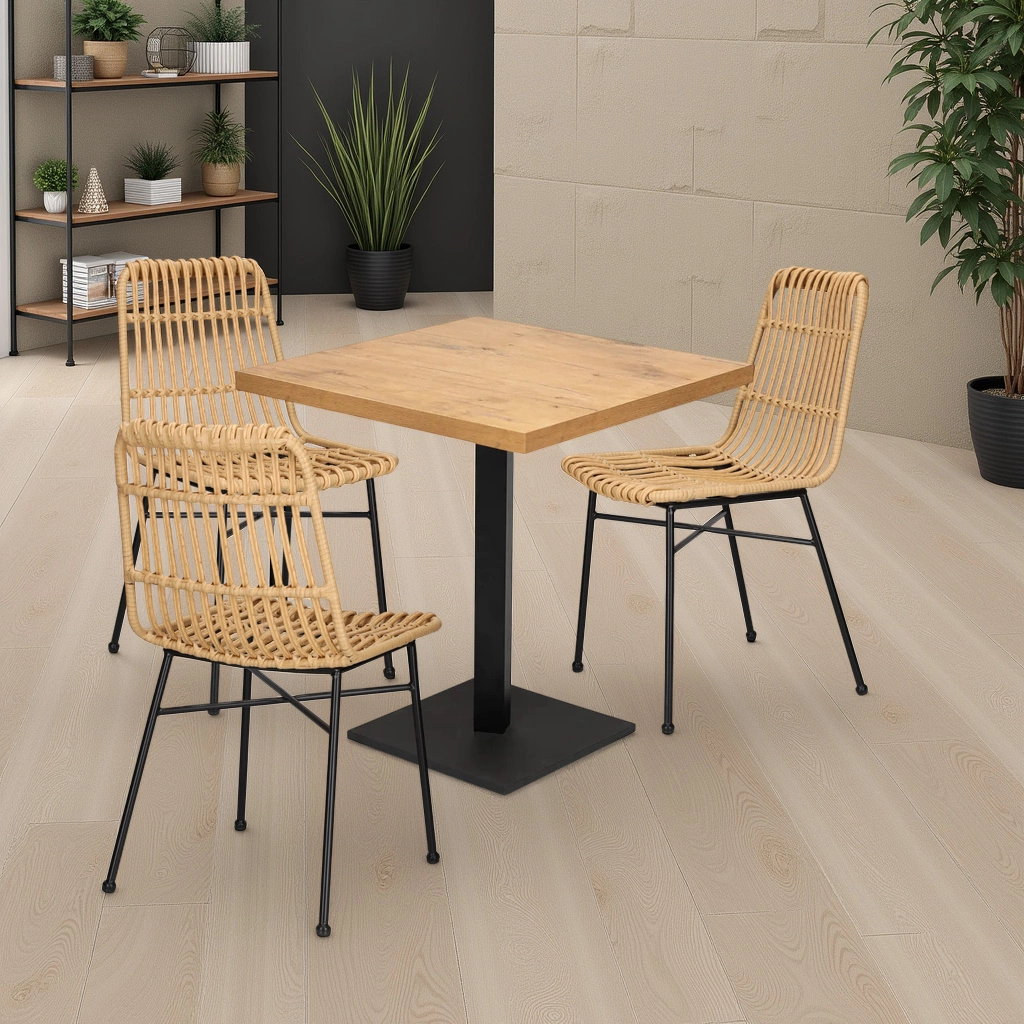Krzesło Surabaya to połączenie naturalnej barwy technorattanu i czarnej stali. To sprawia, że mebel ten jest niezwykle elegancki i pasuje do wielu wnętrz. Bez względu na to, czy postawisz go w kuchni, jadalni, kawiarni czy na tarasie, zawsze będzie prezentować się doskonale.
