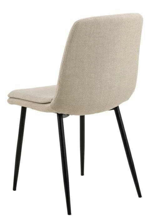 Krzesło Becca posiada solidną podstawę z czterema smukłymi nogami z metalu malowanego proszkowo na kolor czarny, co zapewnia stabilność i trwałość. Siedzisko i oparcie wypełnione są wygodną pianką tapicerską, a pokryte przyjemną w dotyku tkaniną Basel 24 w odcieniu ciepłego beżu. To połączenie materiałów gwarantuje nie tylko wygodę podczas długich spotkań czy posiłków, ale także trwałość i łatwość w utrzymaniu czystości. Minimalistyczny design pozwala na łatwe dopasowanie do różnych stylów wnętrz, od nowoczesnego po klasyczny.