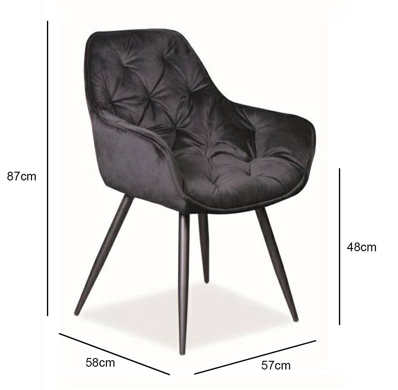 Krzesło z podłokietnikami, pikowanym siedziskiem i oparciem oraz czarnymi nogami sprawdzi się we wnętrzu nie tylko glamour. Nowoczesny salon lub jadalnia to idealne miejsce na pikowane, aksamitne krzesło tapicerowane. Miękkie, pikowane siedzisko jest wygodne do siedzenia, a cztery czarne malowane proszkowo nogi zapewniają niesamowitą stabilność.